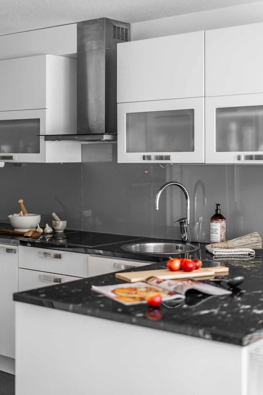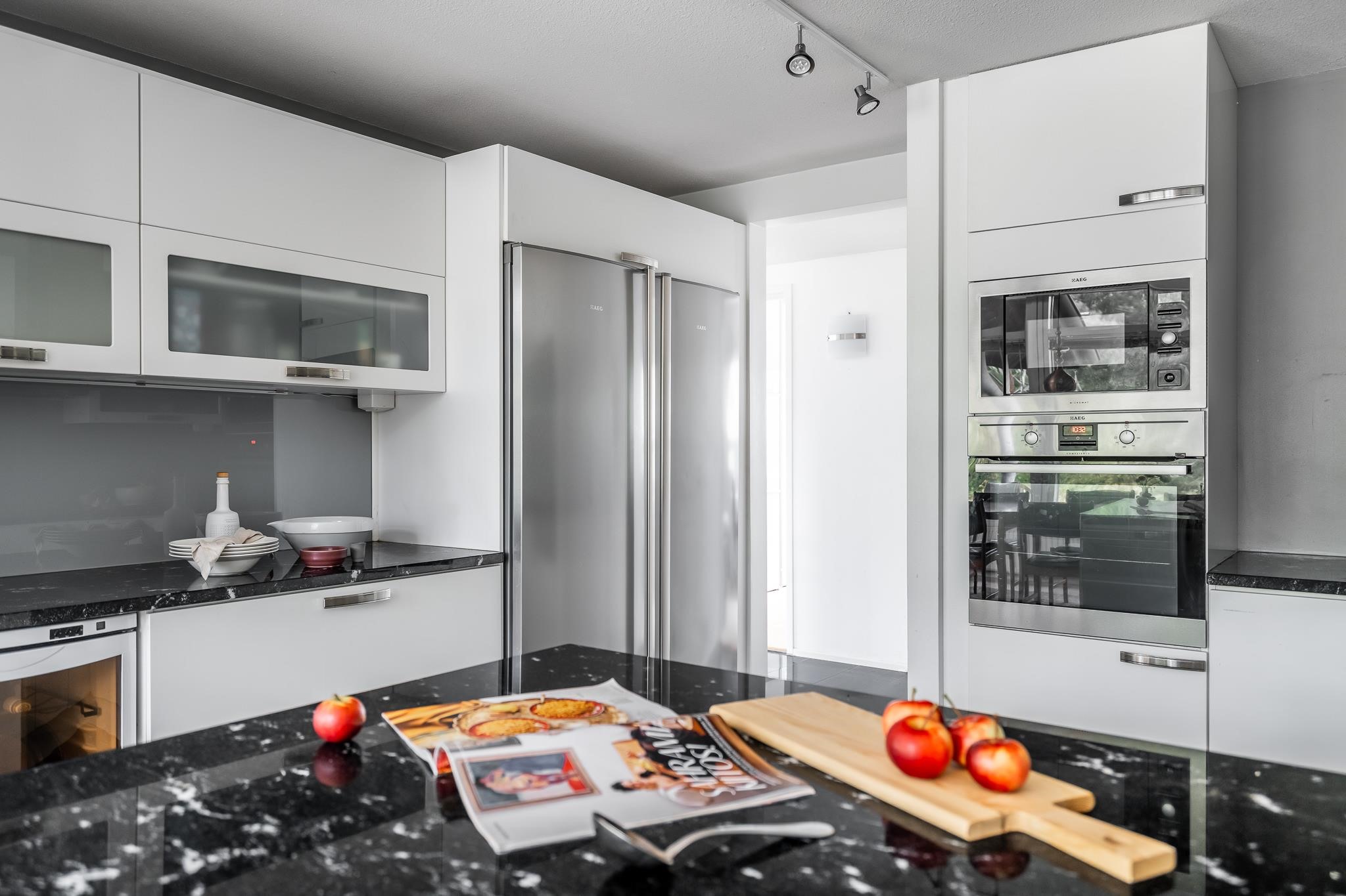 - Jääkaappi, pakastekaappi, erillisuuni, induktioliesi, liesituuletin, mikroaaltouuni, astianpesukone, kaapistot, viinikaappi, kiinteät valaisimet.
