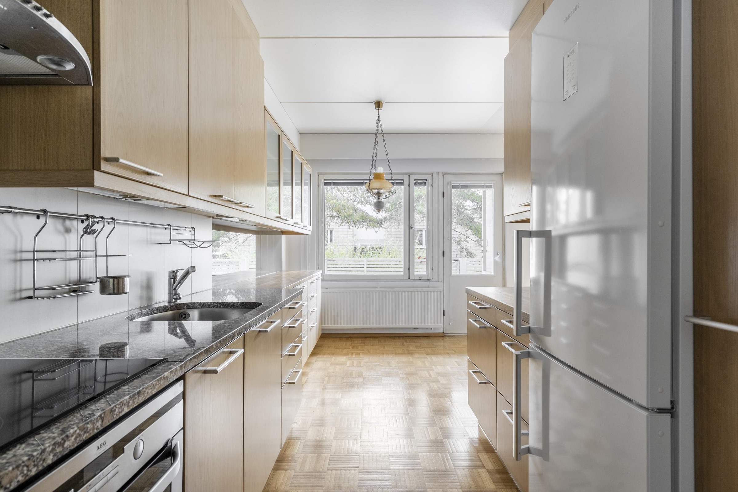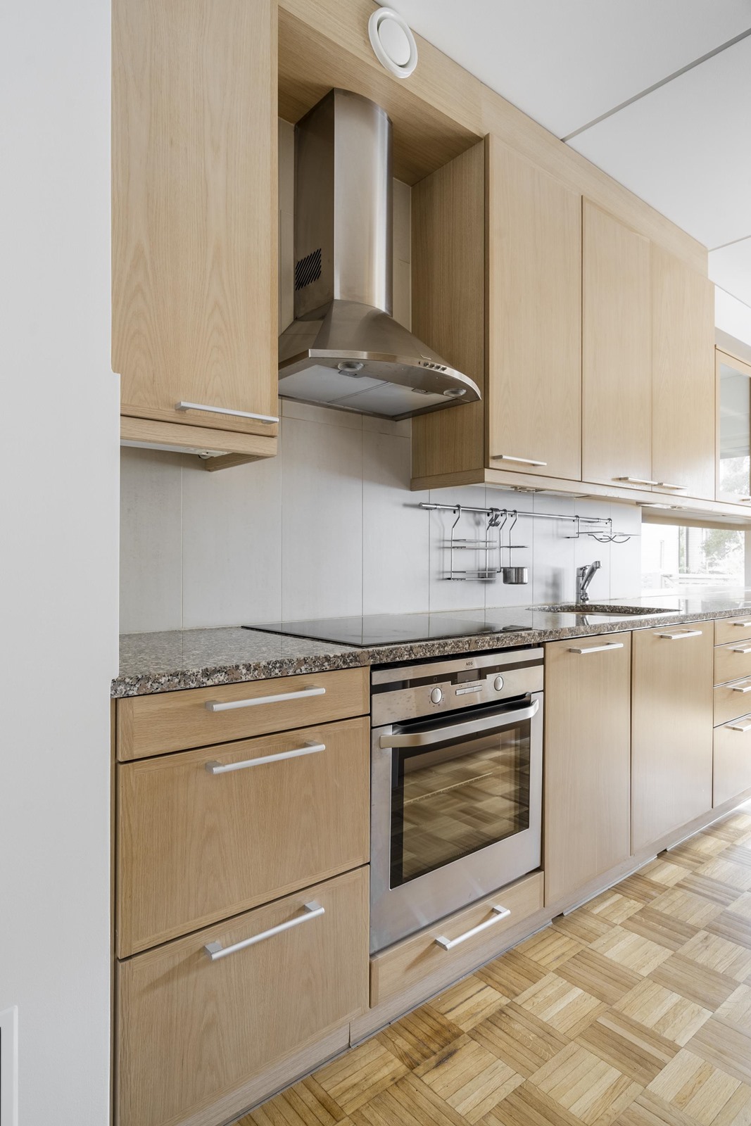 - Jääkaappipakastin, erillisuuni, induktioliesi, liesituuletin aktiivihiilisuodattimella, integroitu astianpesukone, kaapistot. 2006, lisäksi uusittu kaapistoja, Puustellin keittiö
