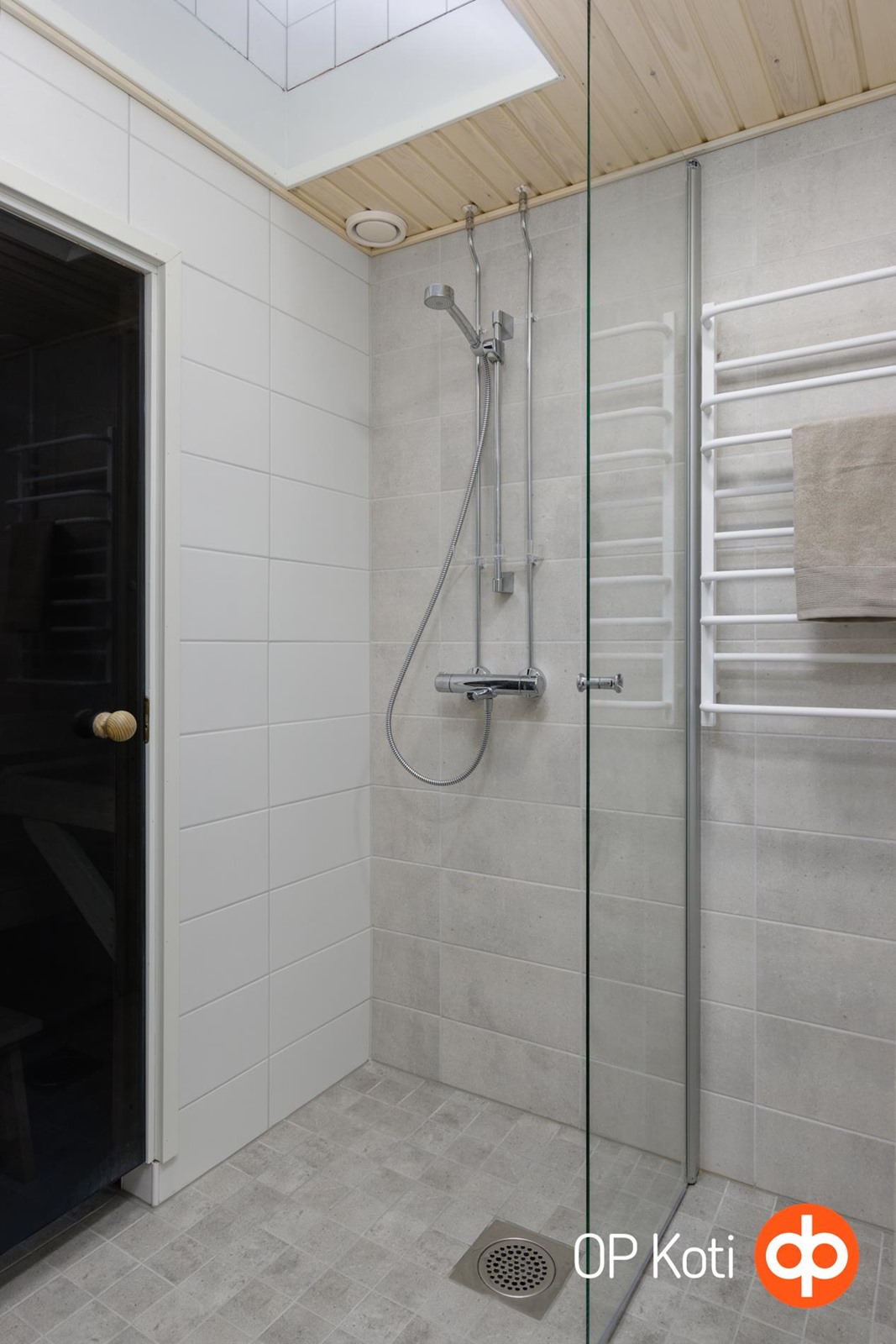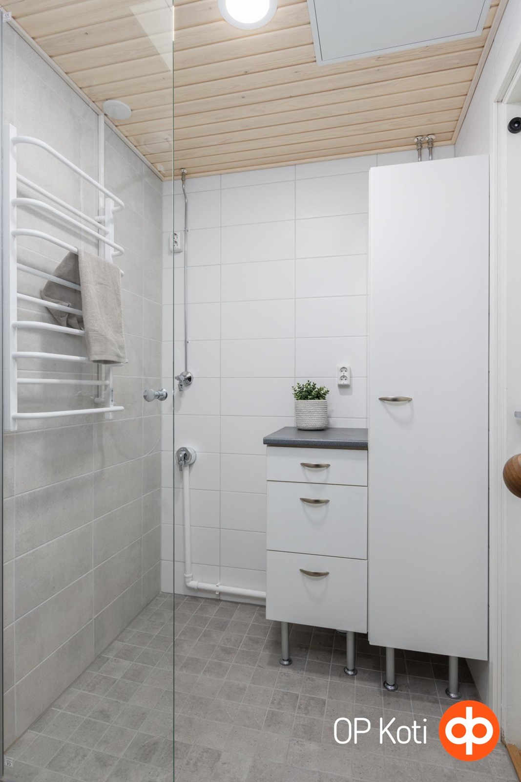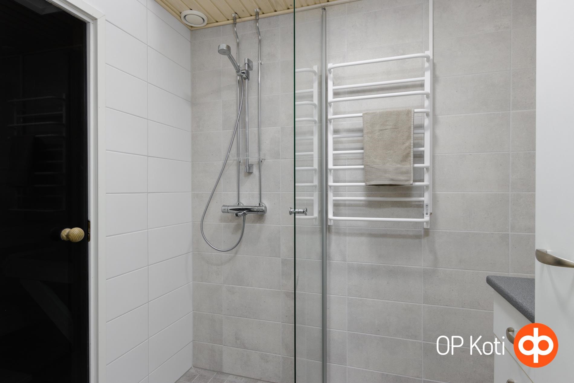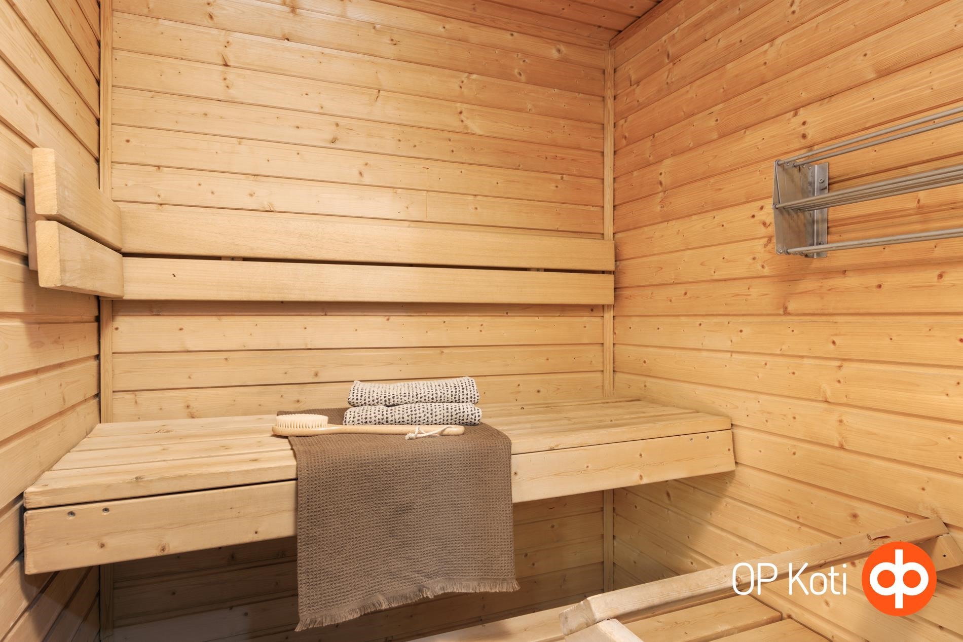 - Sauna, sähkökiuas, kylpyhuone, erillinen wc, suihku, suihkuseinä, peilikaappi, kaapit, allaskaappi, pesukoneliitäntä kylpyhuone, lattialämmitys, kiinteät valaisimet. Remontoitu LVIS remontin yhteydessä