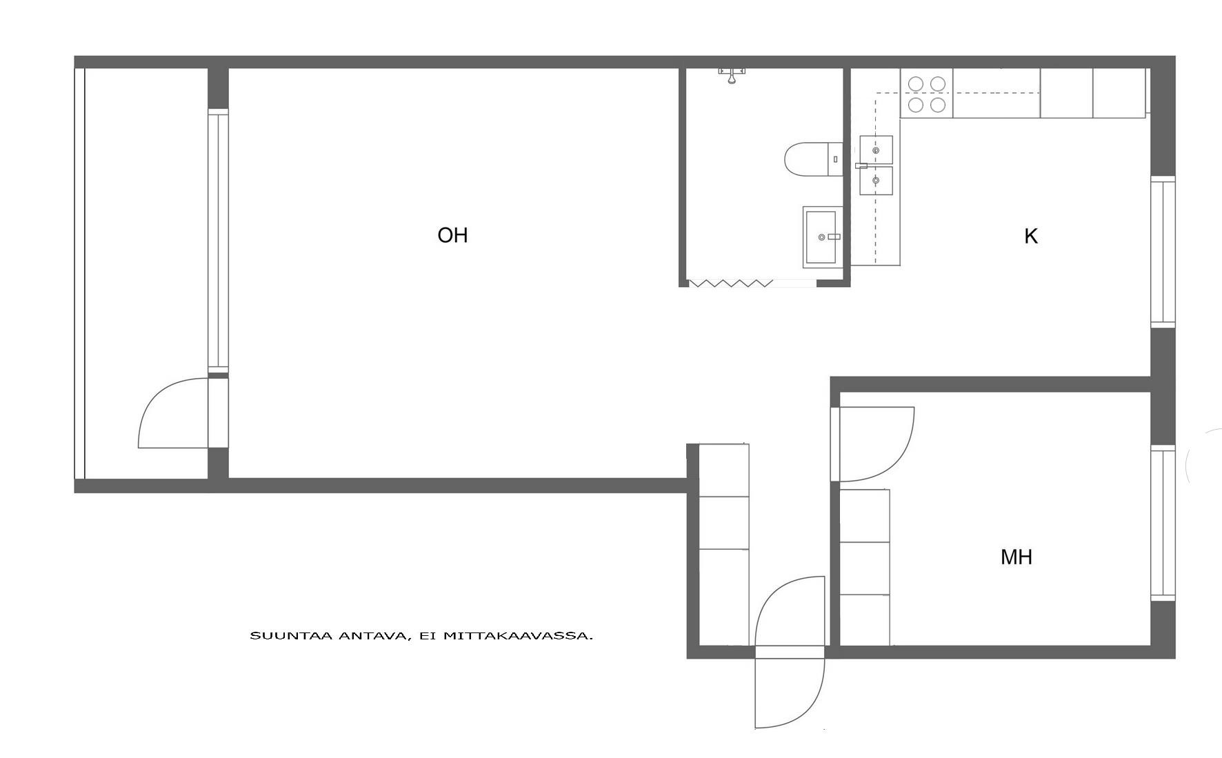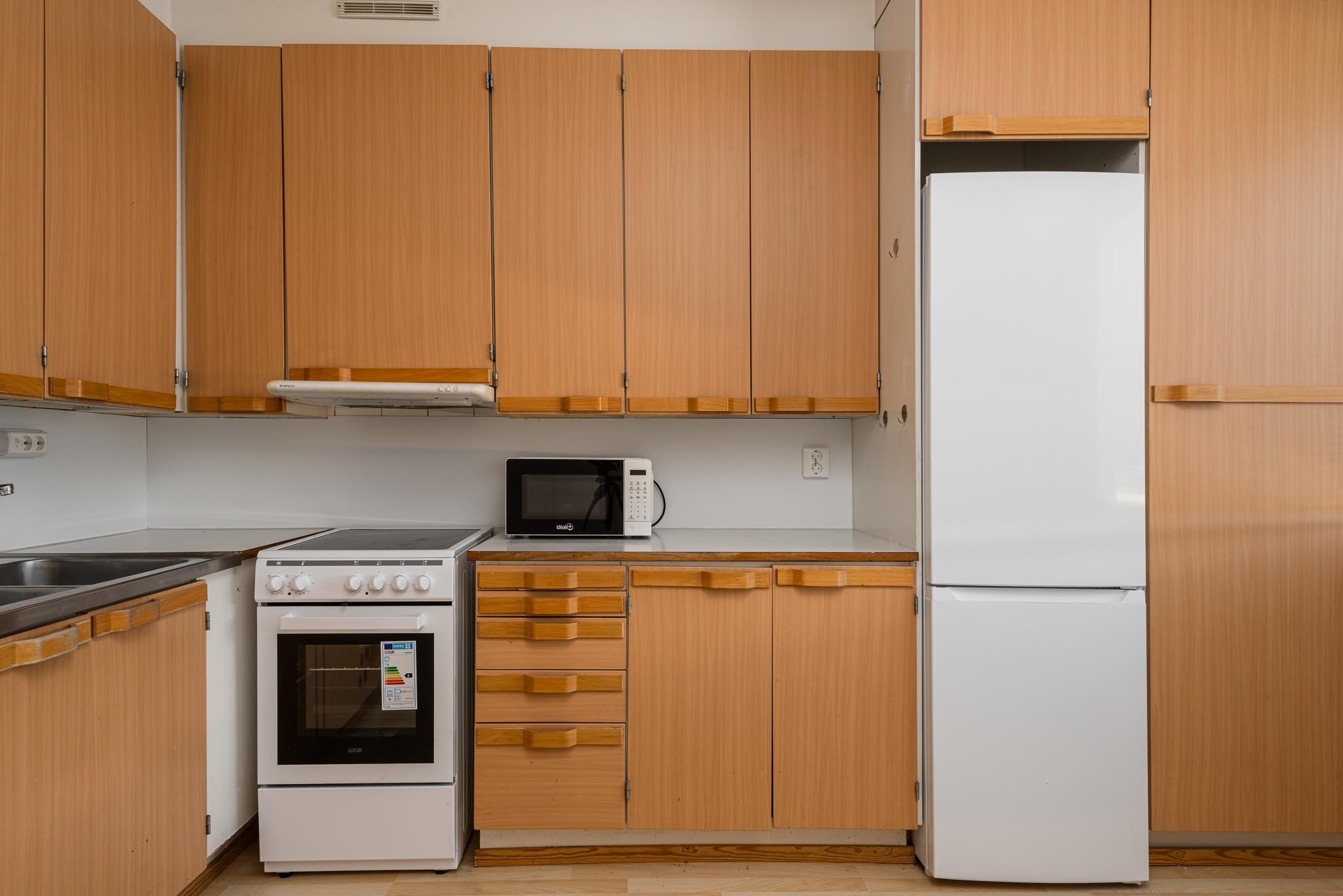 - Jääkaappipakastin, keraaminen liesi, liesituuletin, mikroaaltouuni, astianpesukone, kaapistot, kiinteät valaisimet. Laitteet uusittu v.2025, ei käytetty, liesituuletin vanha