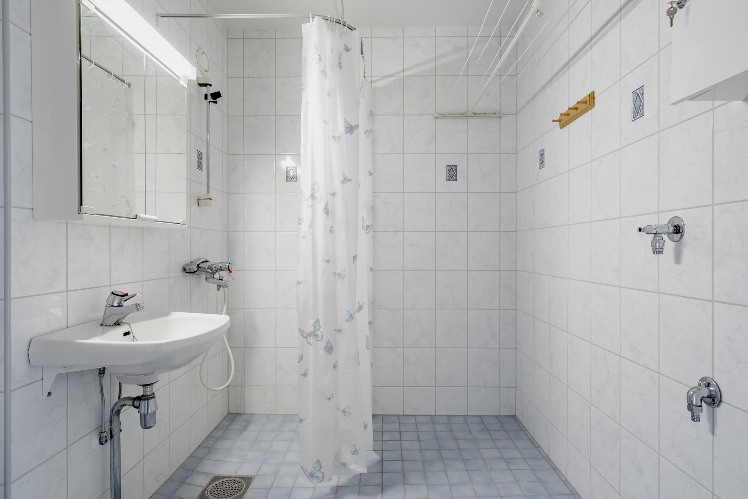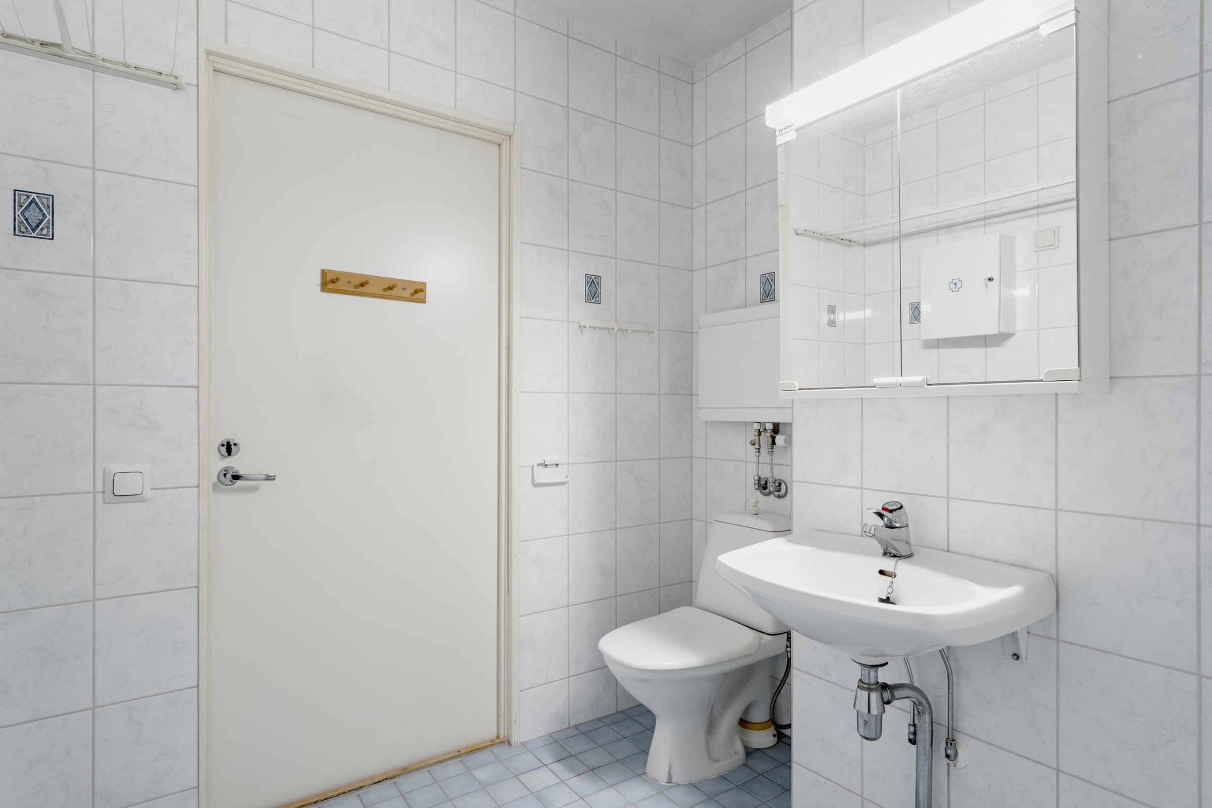 - Kylpyhuone, suihku, suihkuverho, peilikaappi, pesukoneliitäntä. Alkuperäiskuntoinen ja siisti
