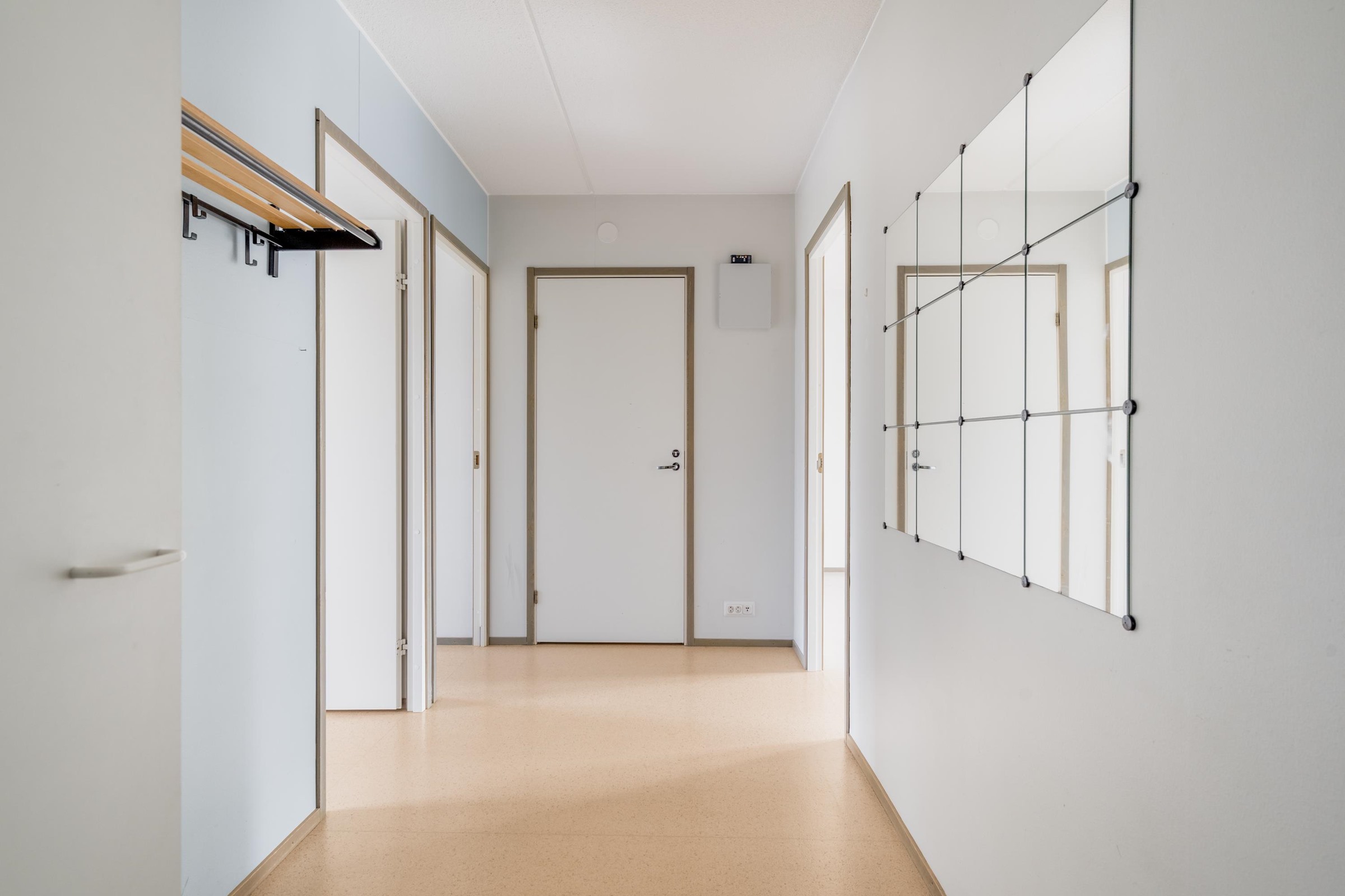 Keittiö: Muovimatto, seinät maali. Olohuone: Muovimatto, seinät maali. Makuuhuone 1: Muovimatto, seinät maali. Kylpyhuone: Laatta. Eteinen: Muovimatto, seinät maali.