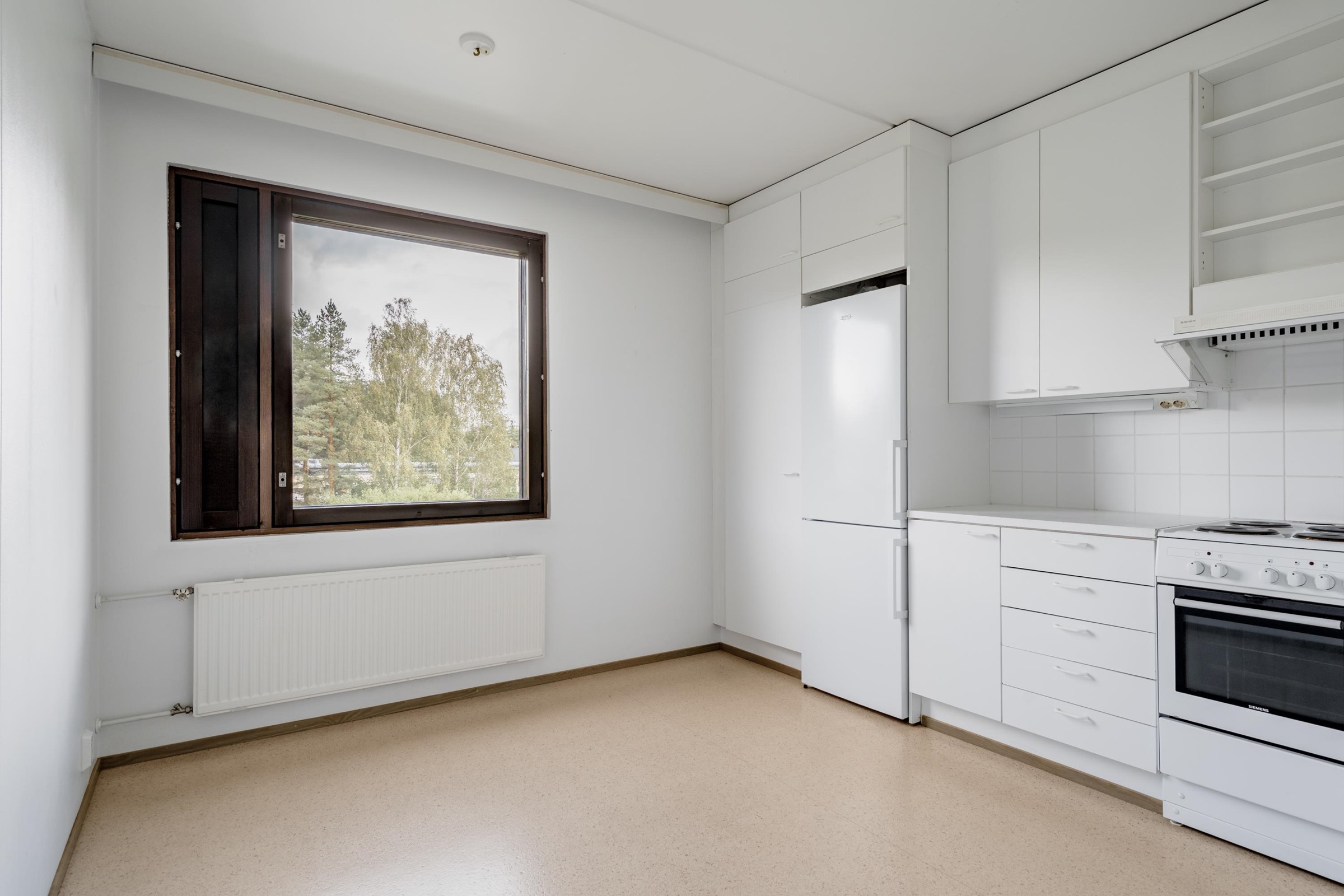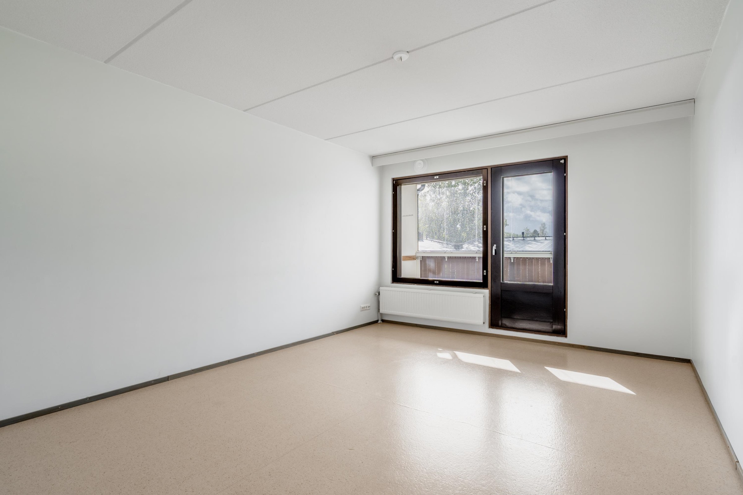 Keravan keskustan kupeessa siistikuntoinen kaksio Tämä heti vapaana oleva kaksio sijaitsee talon ylimmässä kolmannessa kerroksessa, oikein mainioilla näköaloilla. Tällä korkeudella pihan puut tuovat mukavaa tunnelmaa, läpitalon asuntoon tulee hienosti valoa. Olohuoneen jatkeena on valmiiksi lasitettu parveke. Täällä on reilun kokoiset huoneet, olohuoneeseen mahtuu hyvin kaikki tarvittava ja vaikka työpistekin. Keittiöön mahtuu hyvin ruokapöytä, kaappi- ja laskutilaa on riittävästi. Keittiöön saat täydennystä mainiosta K-Market Parilasta muutaman sadan metrin päästä, muutoinkin tästä kodista on lyhyt kävelymatka kaikkiin Keravan palveluihin. Terveyskeskus, urheilukenttä, jäähalli ja tenniskenttäkin aivan vierellä. Velaton taloyhtiö ja matala vastike joten asumiskustannukset ovat maltilliset. Autopaikat saa jonottamalla, viime aikoina ollut vapaana muutamia paikkoja. Taloyhtiöstä löytyy siisti peruskorjattu sauna, pesutupa, kuivaushuone ja pyörävarasto.