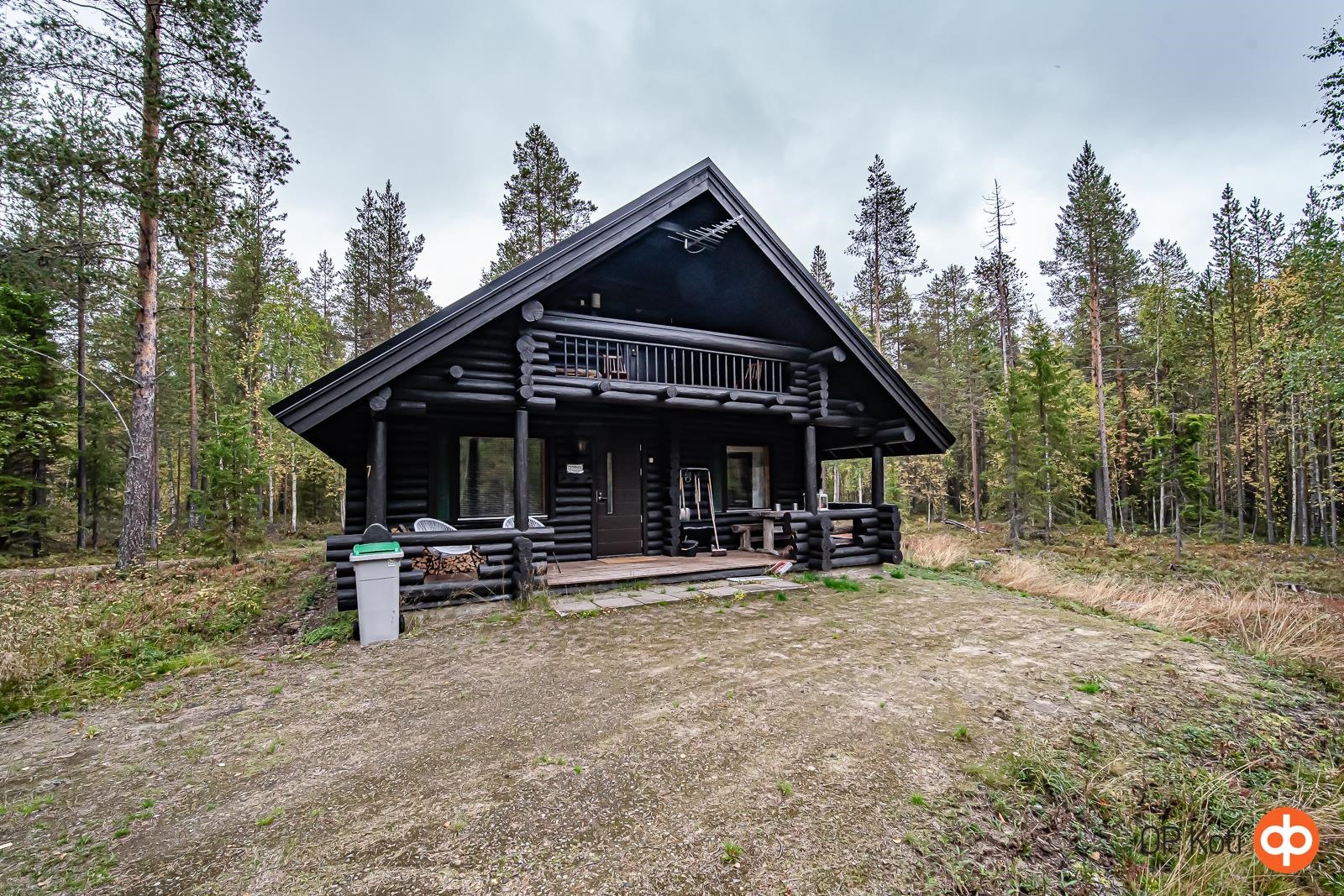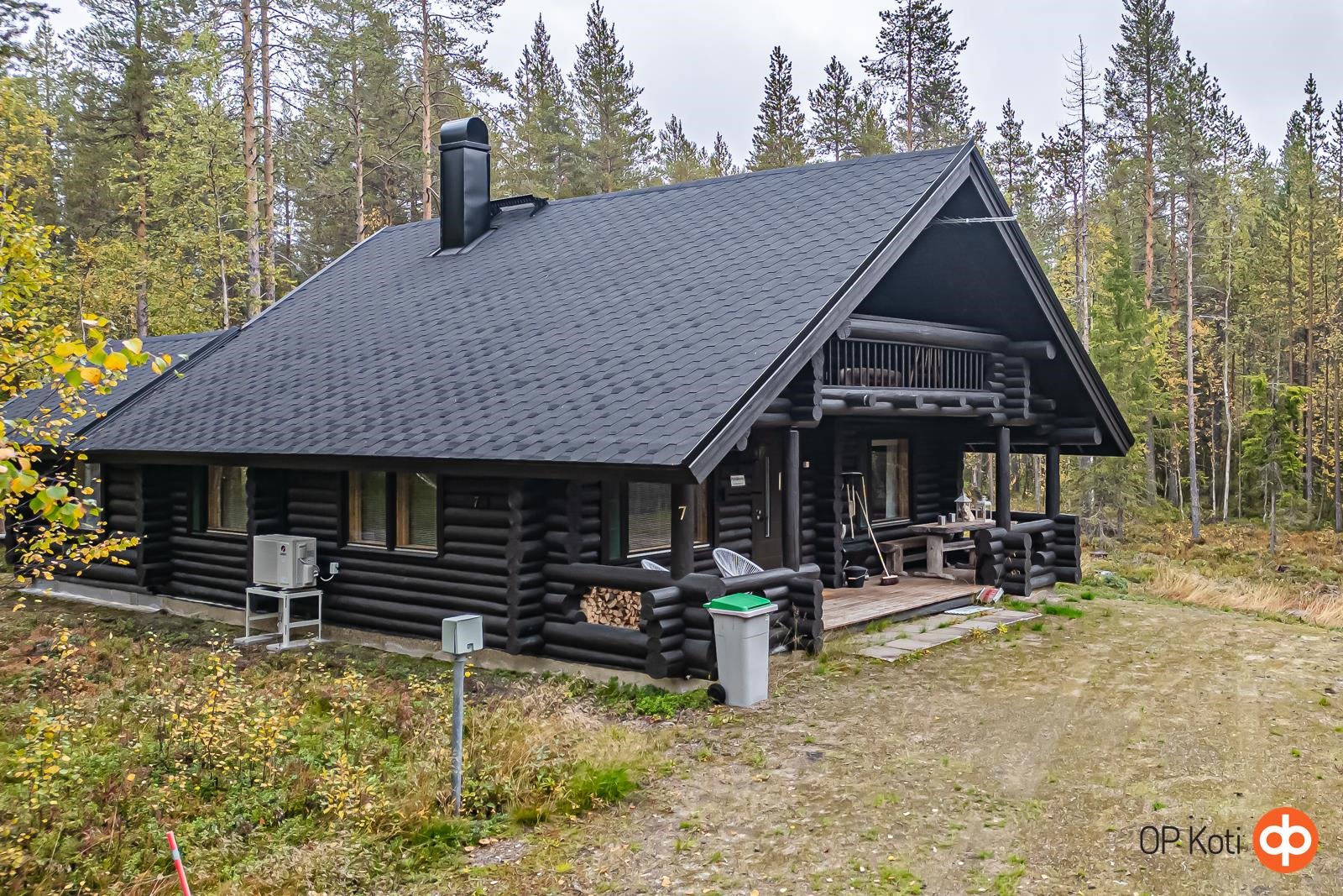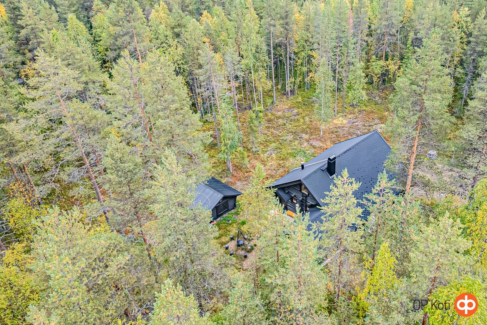 Käsinveistetystä hirrestä rakennettu lomahuvila vain noin 7,5 km Pyhätunturin hisseiltä. Oma 5170 m² tila rauhallisella sijainnilla.