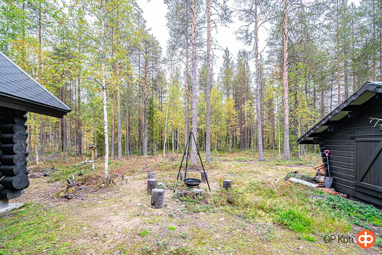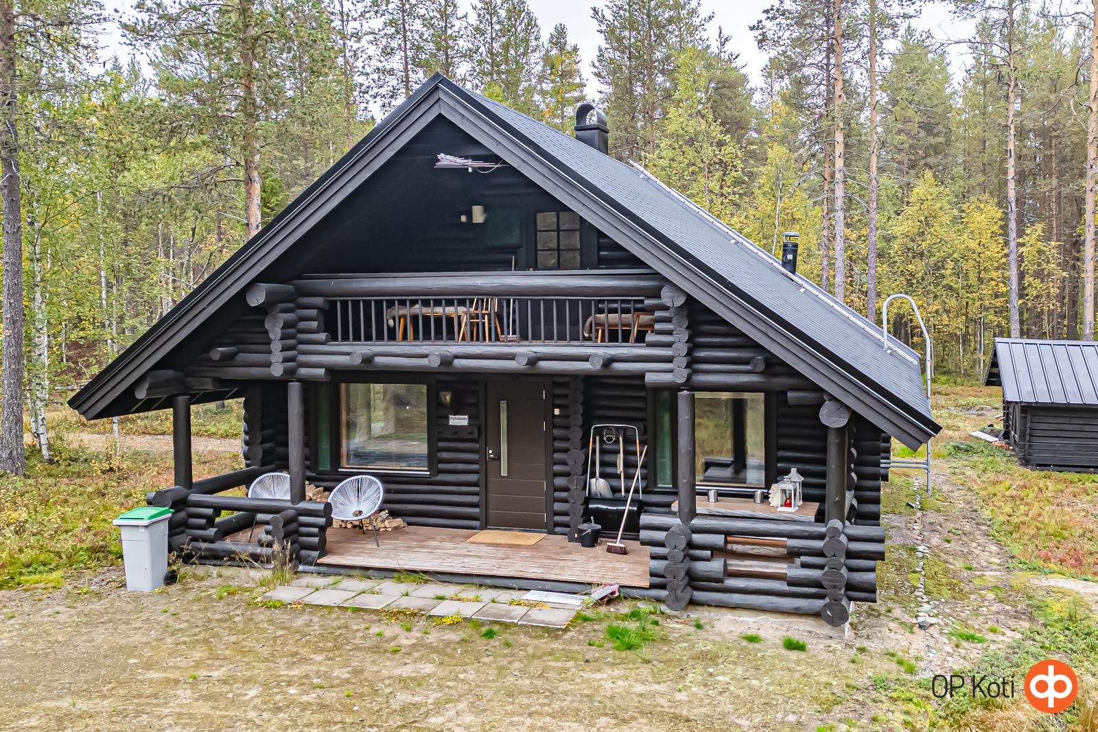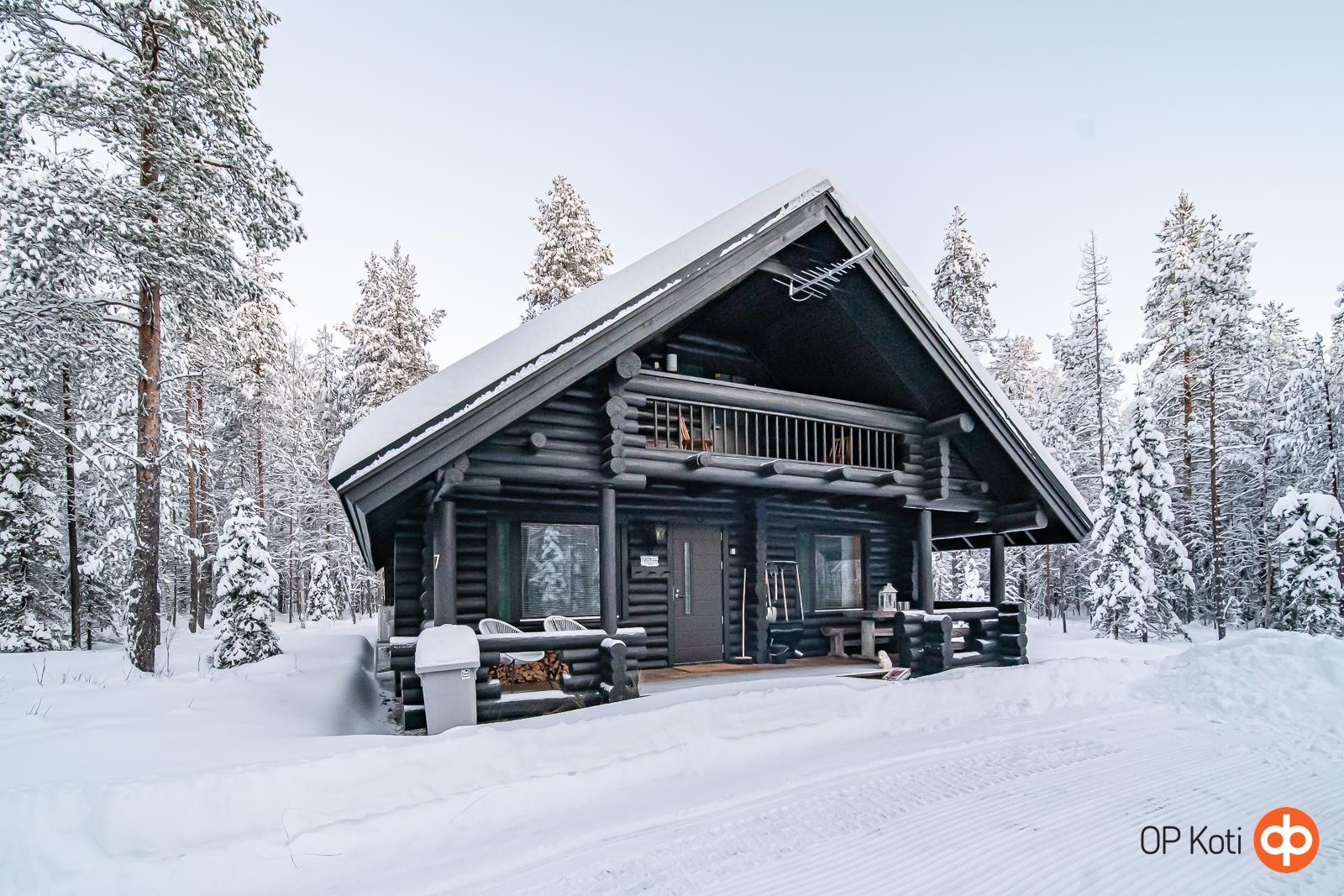 Käsinveistetystä hirrestä rakennettu lomahuvila vain noin 7,5 km Pyhätunturin hisseiltä. Oma 5170 m² tila rauhallisella sijainnilla.