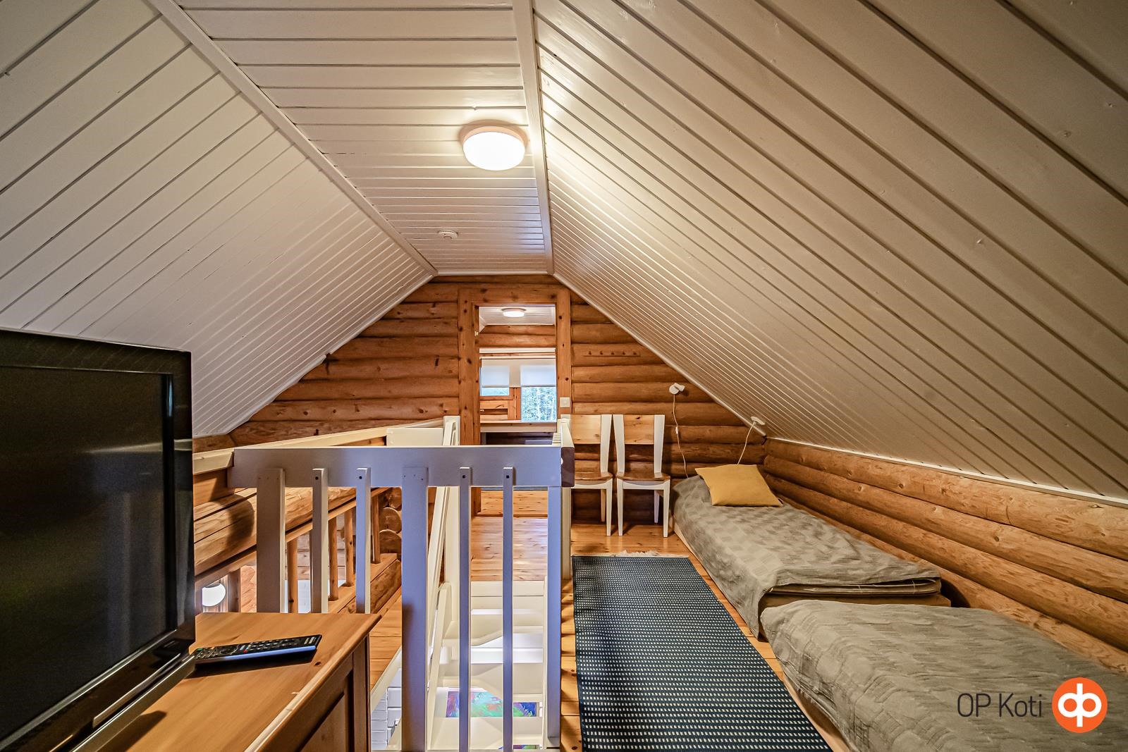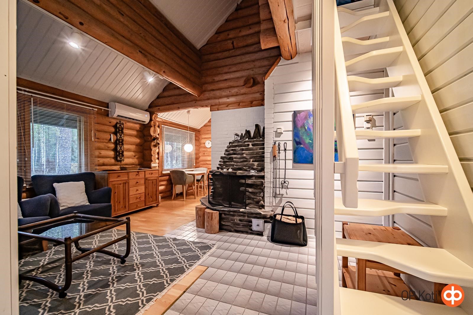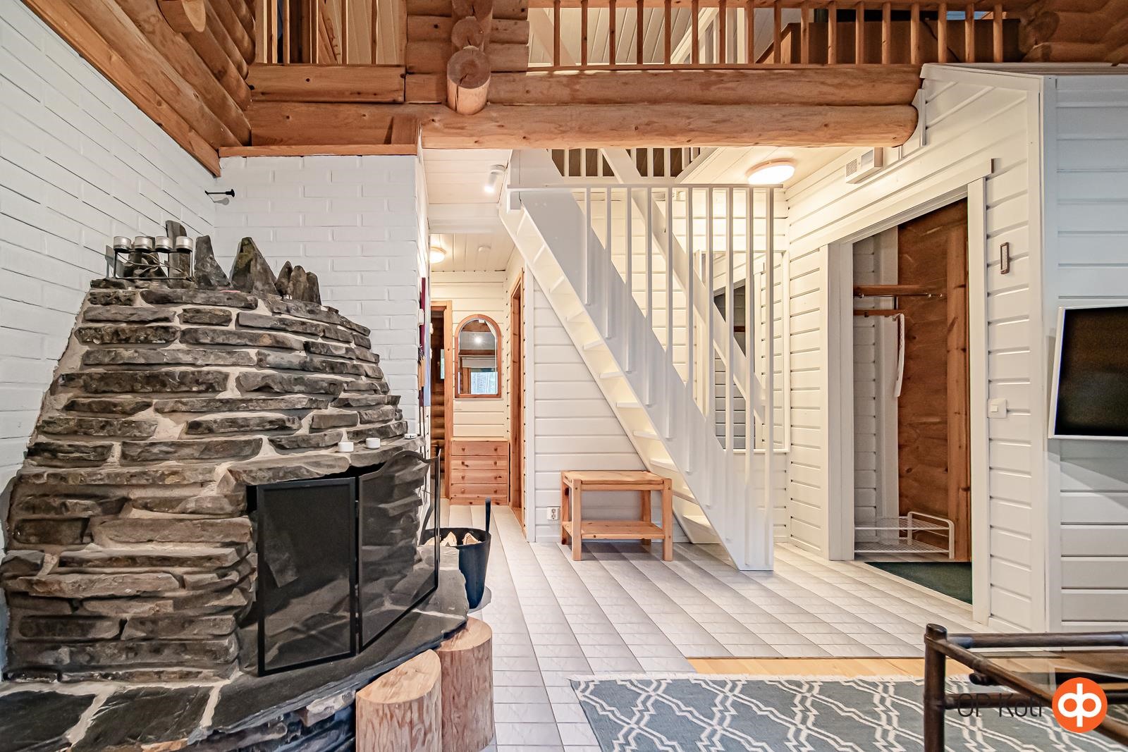 Tämä viehättävä hirsimökki tarjoaa täydellisen pakopaikan arjen kiireistä. Alakerran tupakeittiö kutsuu rentoutumaan komean vuolukivitakan ääreen, ja tunnelmallinen erillinen ruokailutila tarjoaa paikan mukaviin yhteisiin hetkiin perheen tai ystävien kesken. Alakerrassa on yksi makuuhuone, jonka lisäksi yläkerrassa sijaitsevat tilat muuntuvat petipaikoiksi tarpeen mukaan. Yläkerran parveke avaa näkymiä ympäröivään luontoon. Talon takaa löytyy myös pieni terassi, jolla voit istuskella nauttimassa puhtaasta ulkoilmasta.