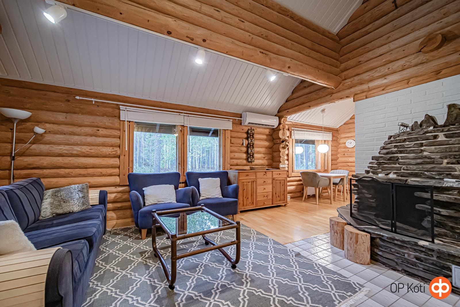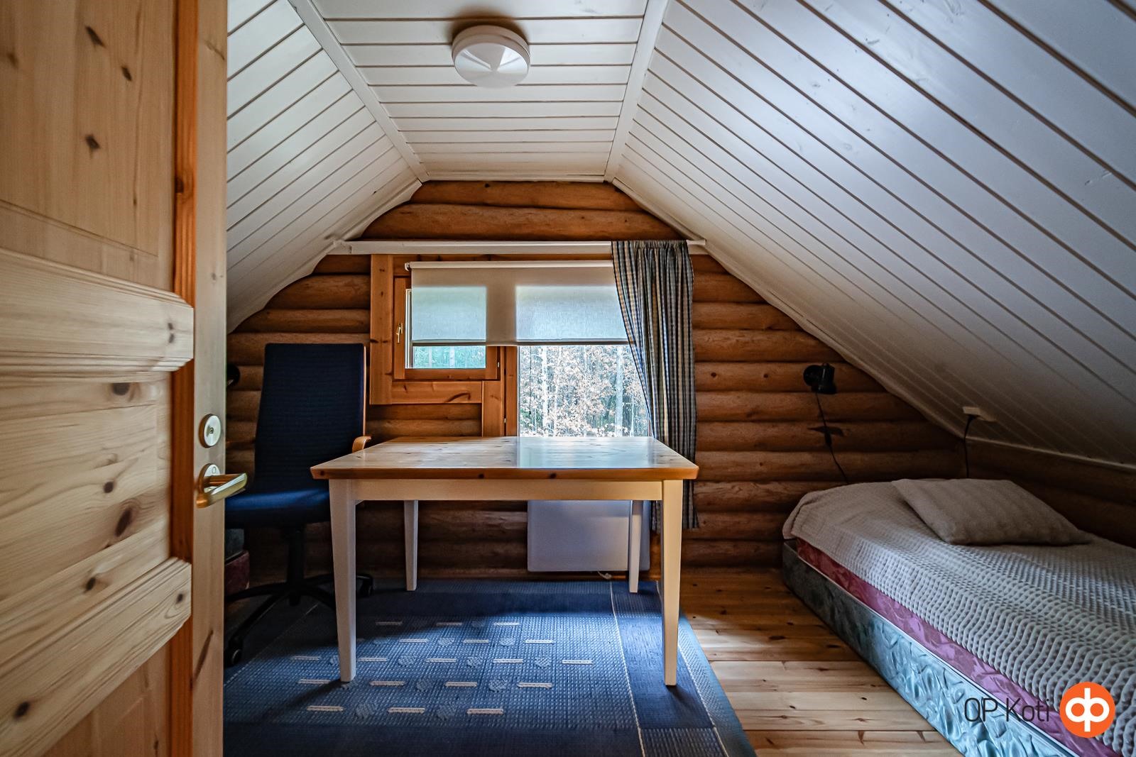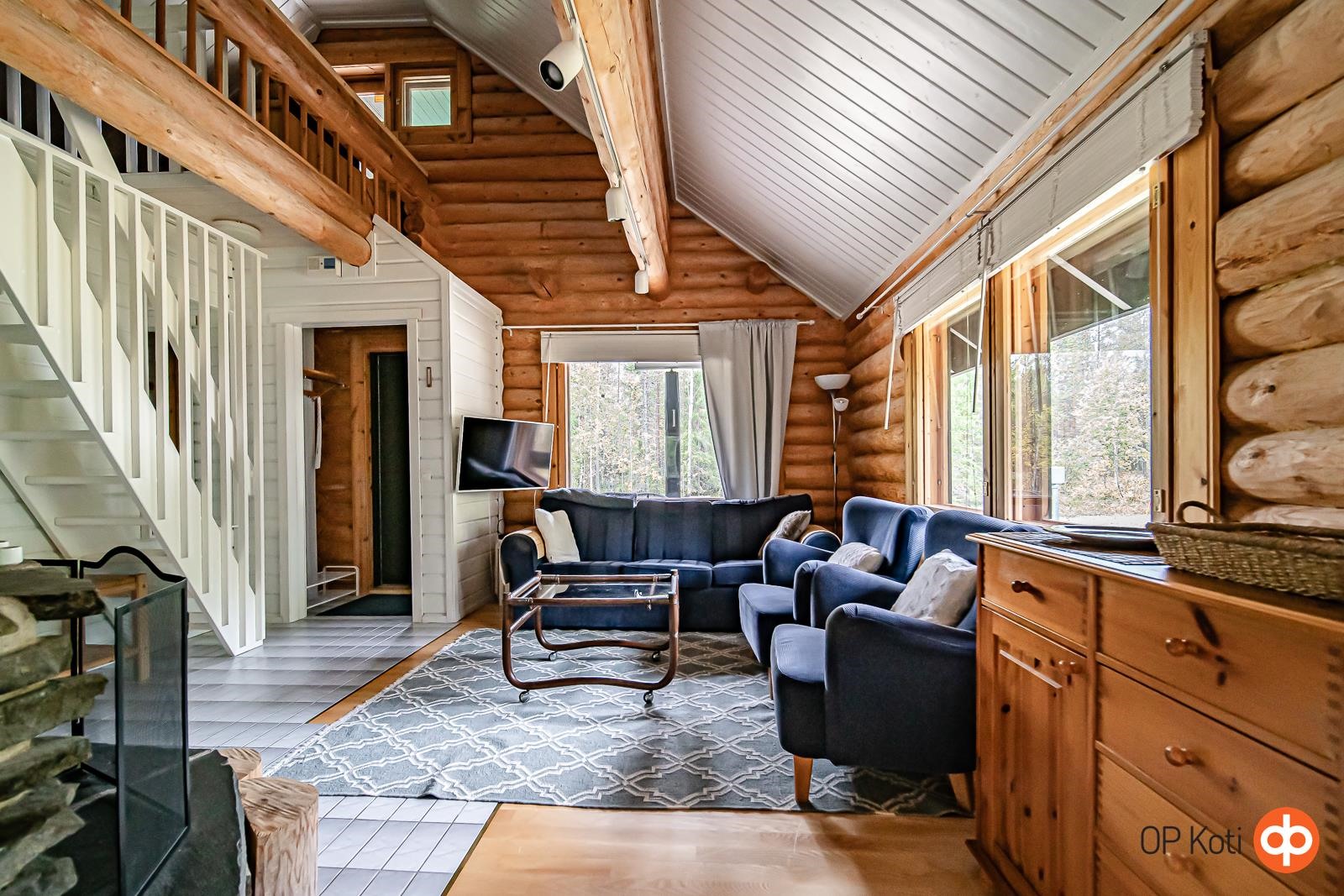 Tämä viehättävä hirsimökki tarjoaa täydellisen pakopaikan arjen kiireistä. Alakerran tupakeittiö kutsuu rentoutumaan komean vuolukivitakan ääreen, ja tunnelmallinen erillinen ruokailutila tarjoaa paikan mukaviin yhteisiin hetkiin perheen tai ystävien kesken. Alakerrassa on yksi makuuhuone, jonka lisäksi yläkerrassa sijaitsevat tilat muuntuvat petipaikoiksi tarpeen mukaan. Yläkerran parveke avaa näkymiä ympäröivään luontoon. Talon takaa löytyy myös pieni terassi, jolla voit istuskella nauttimassa puhtaasta ulkoilmasta.