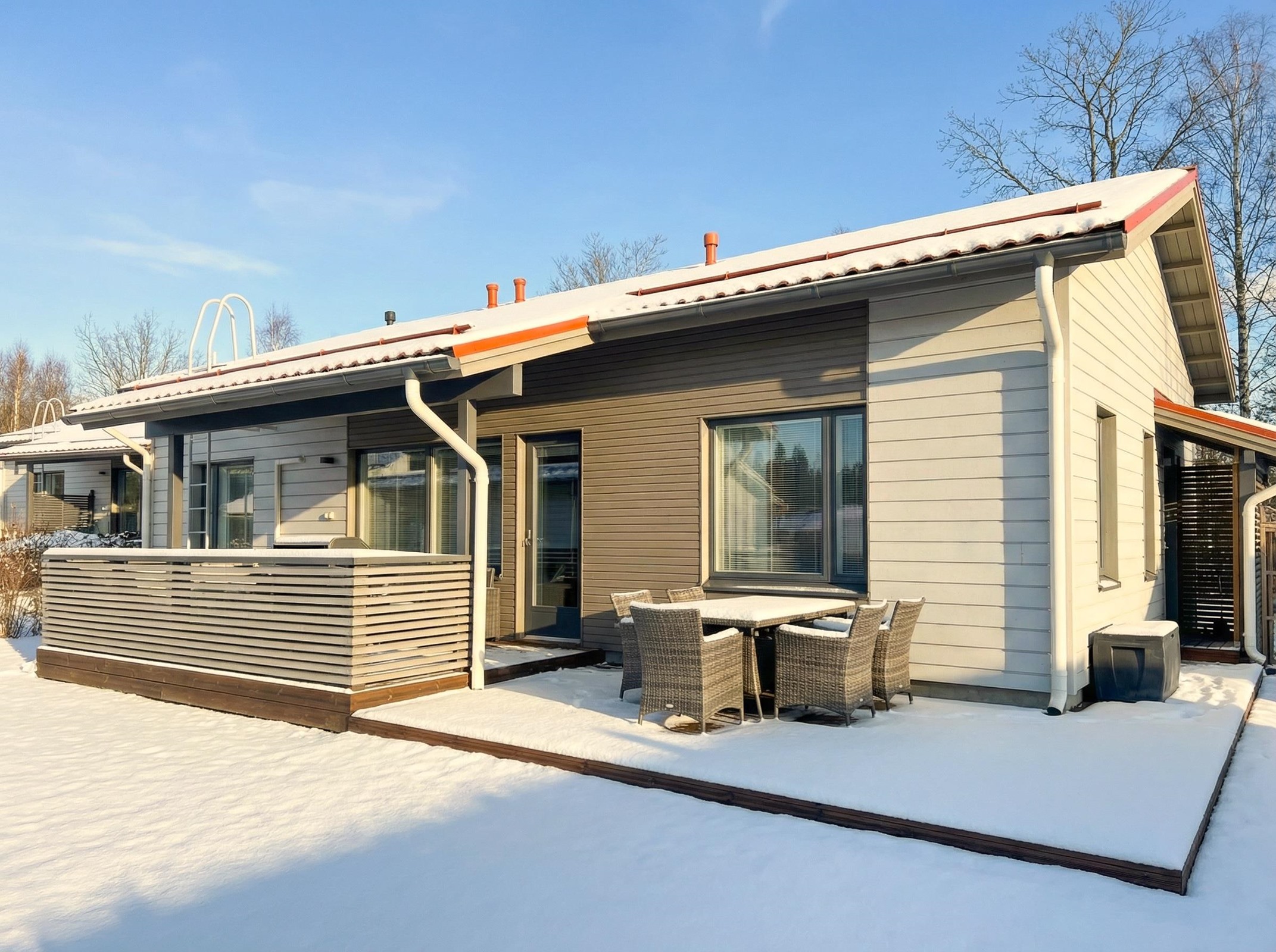 - Olohuoneen ja kahden makuuhuoneen ikkunat. etelään. Keittiön ja yhden makuuhuoneen ja saunan ikkunat pohjoiseen.