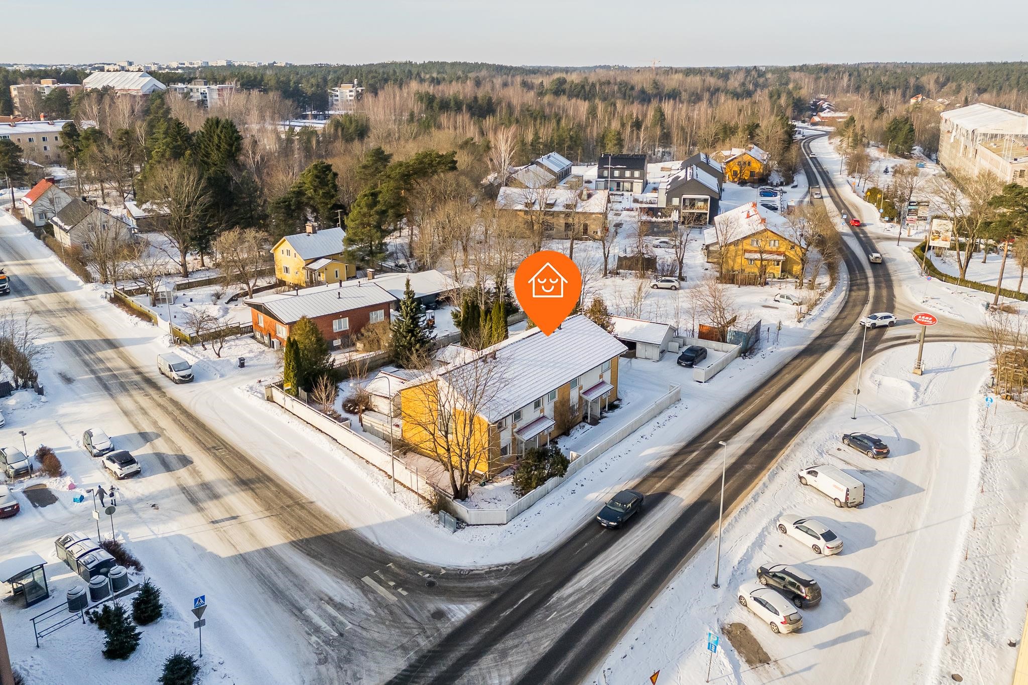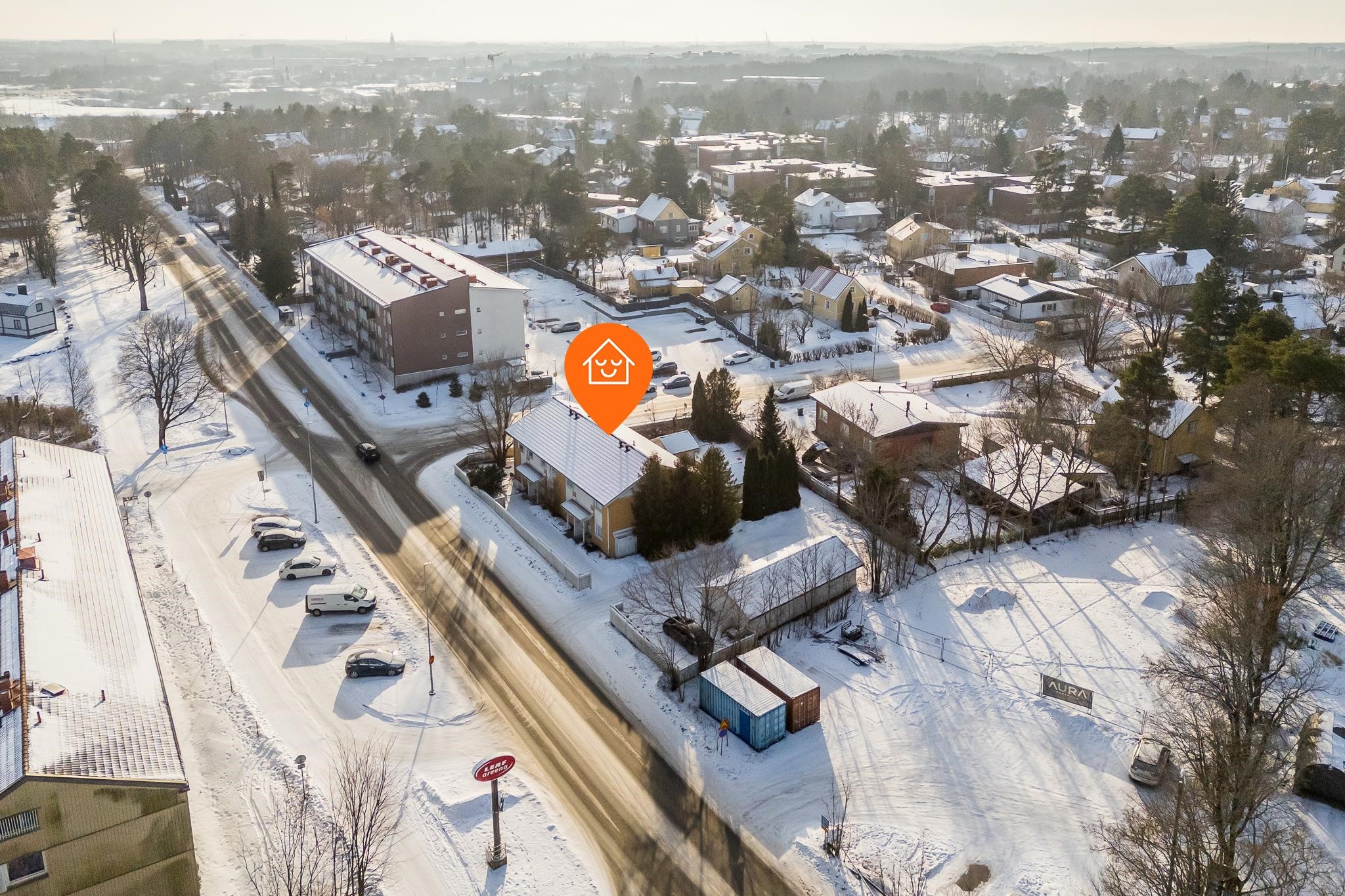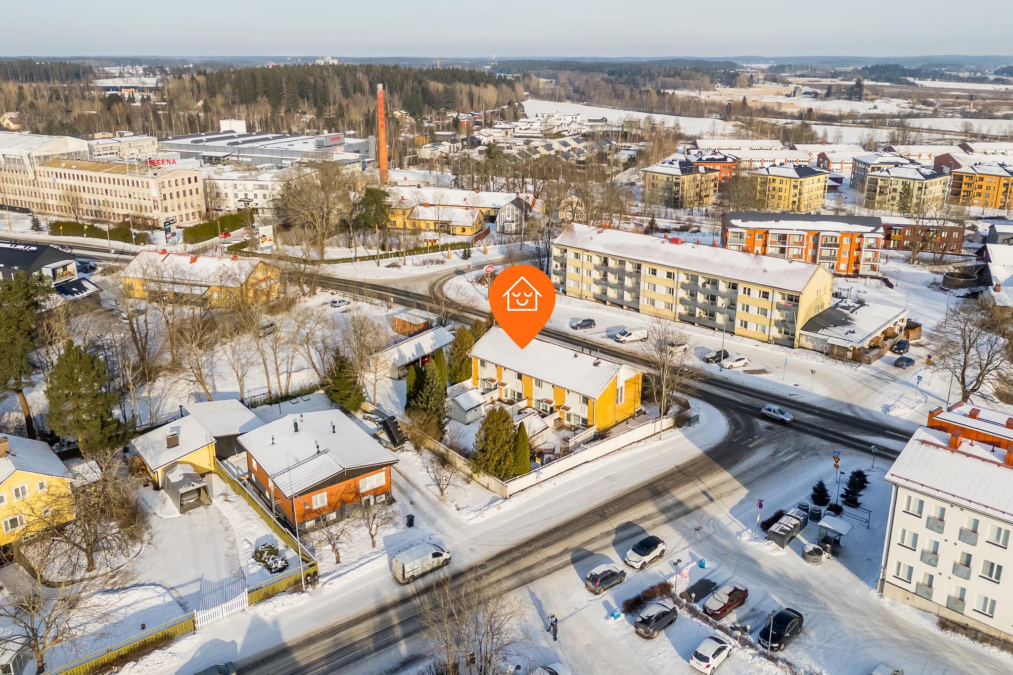Loistava sijainti rauhallisella alueella, kuitenkin lähellä palveluita ja kulkuyhteyksiä.