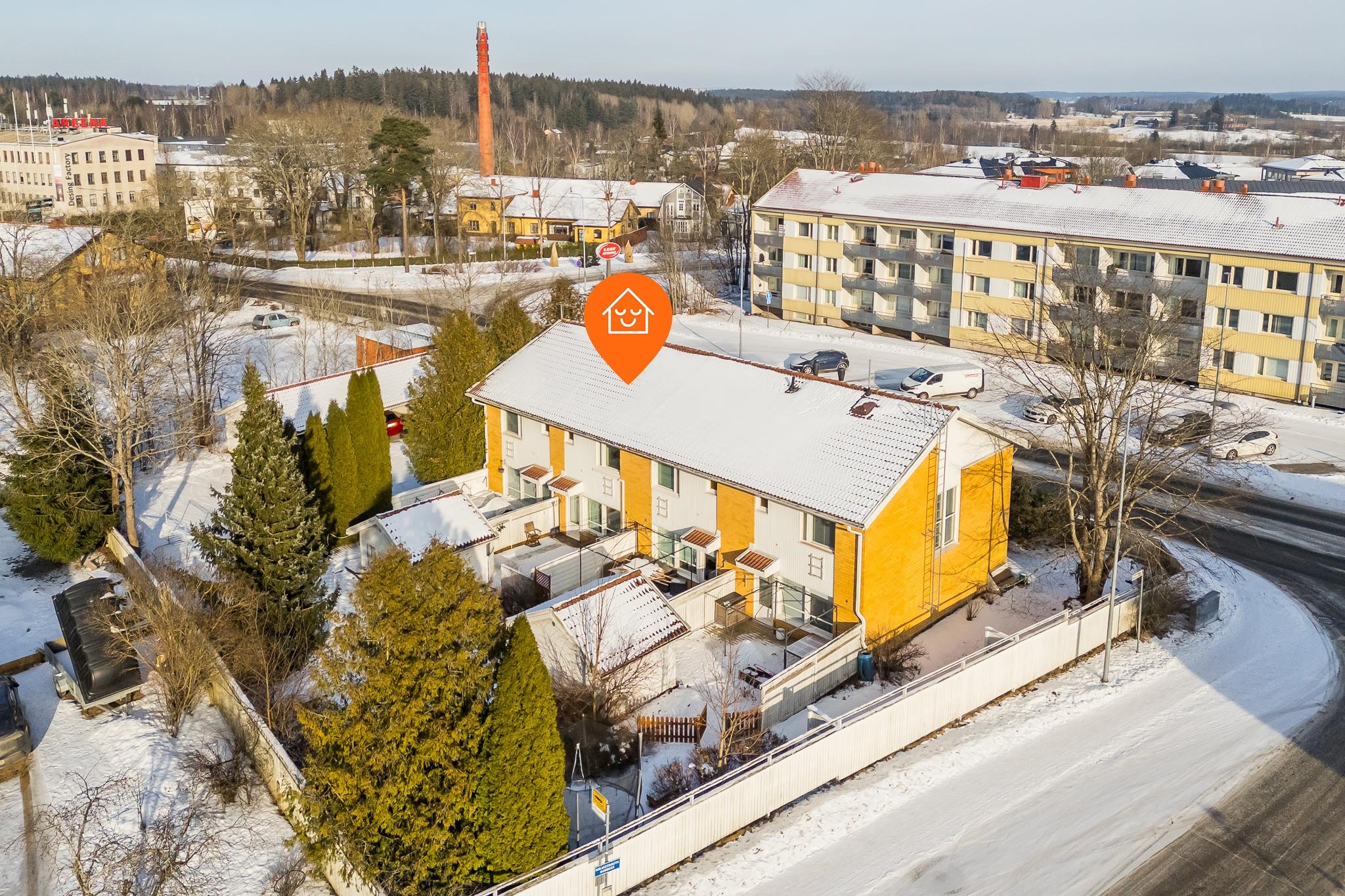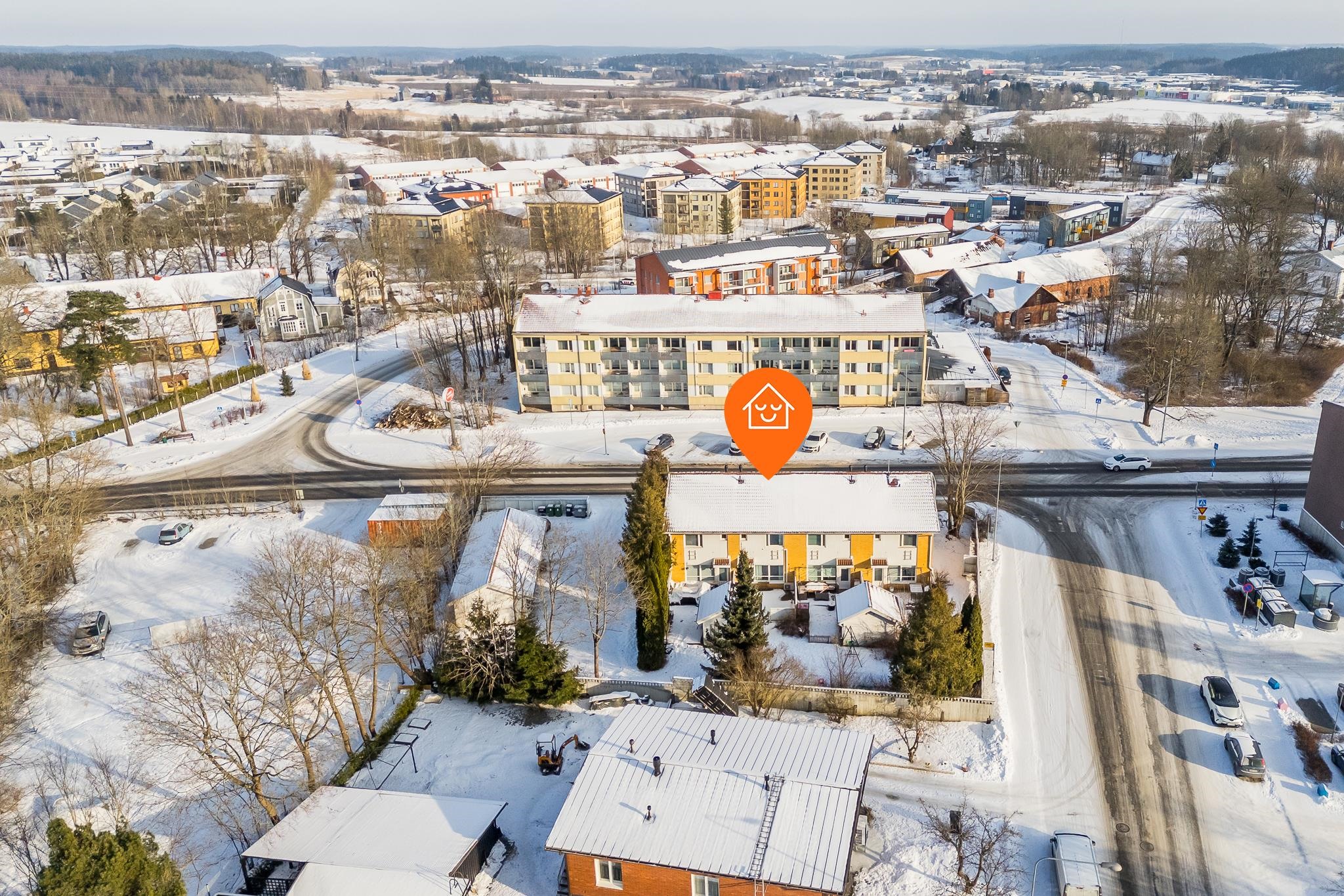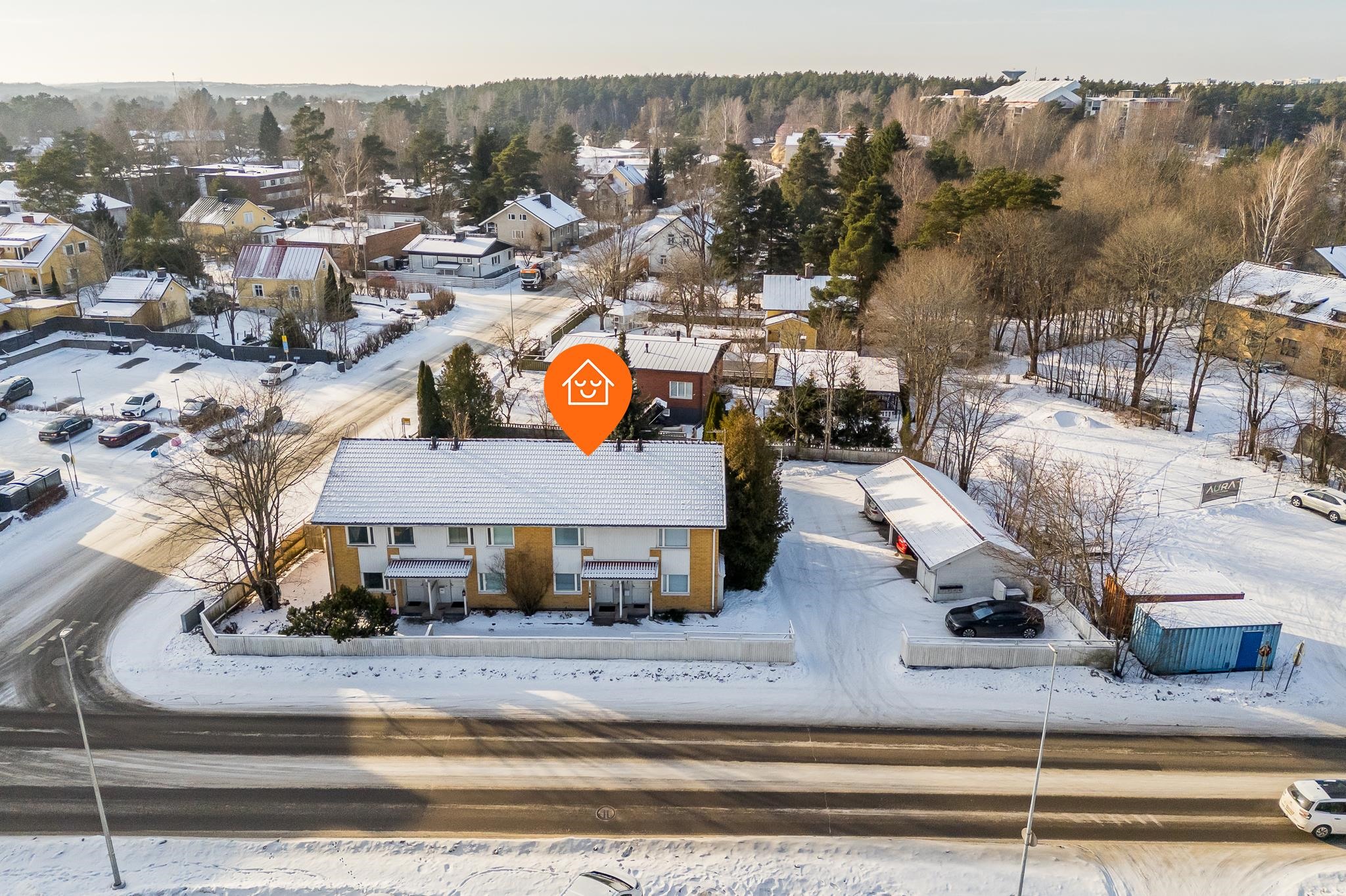 Loistava sijainti rauhallisella alueella, kuitenkin lähellä palveluita ja kulkuyhteyksiä.