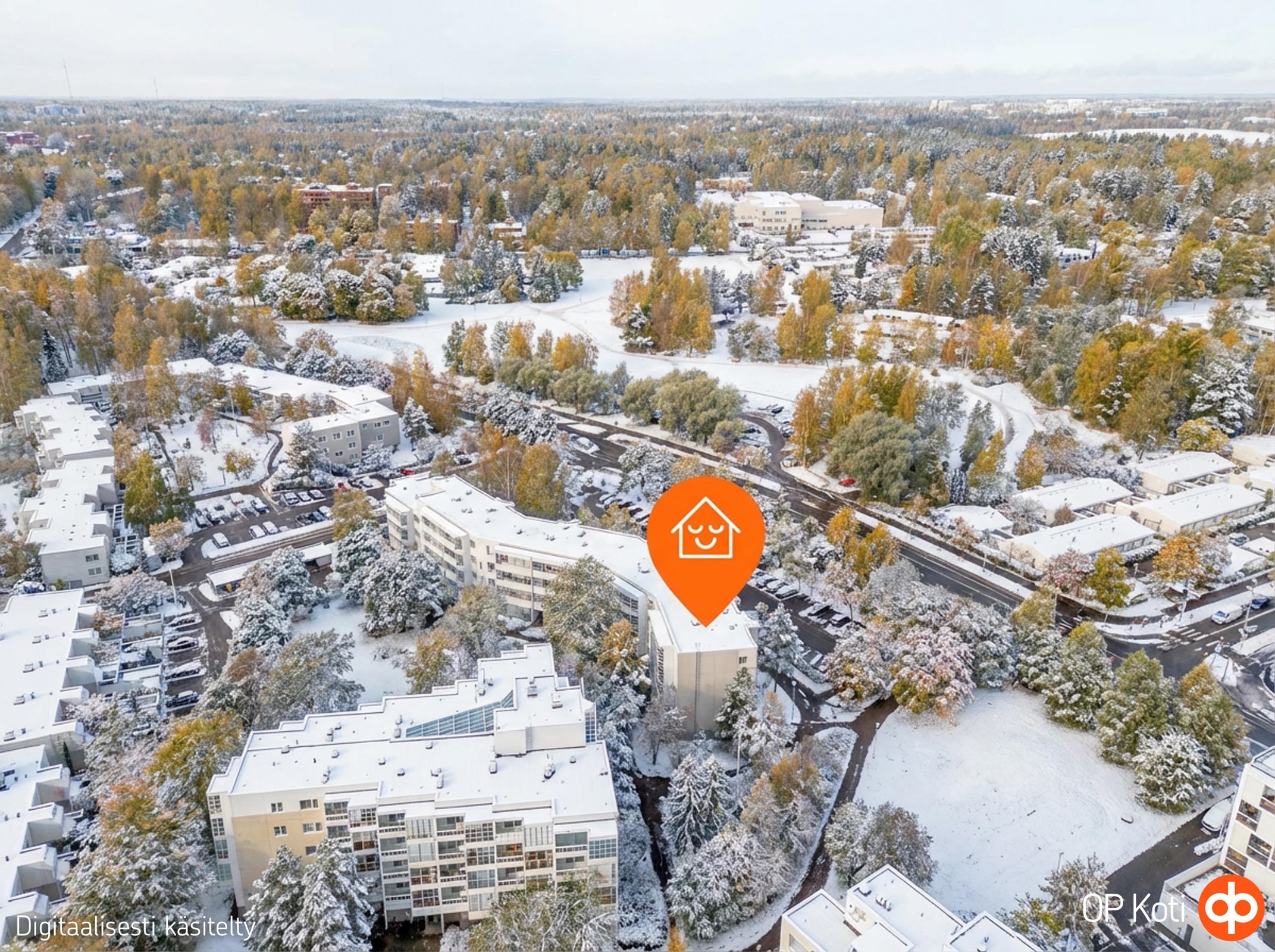 Palvelut: Lähin ruokakauppa on S-market (auki 24/7) noin 200m. Tapiolan keskustaan kävellen noin 1 km. Pohjois-Tapiolassa, Ainoassa ja Mankkaalla lisää ruokakauppoja ja palveluita. Liikenneyhteydet: Hyvät, bussipysäkki noin 100m. Metro ja ratikka on kävely etäisyydellä.