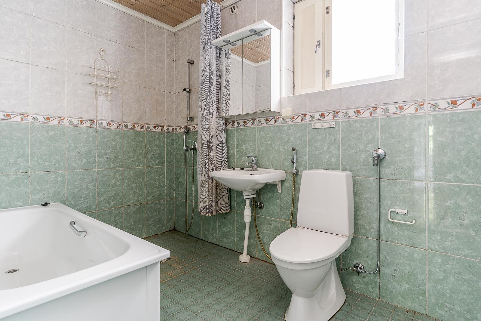 - Kylpyhuone, erillinen wc, suihku, amme, peilit, pesukoneliitäntä, lattialämmitys, kiinteät valaisimet.