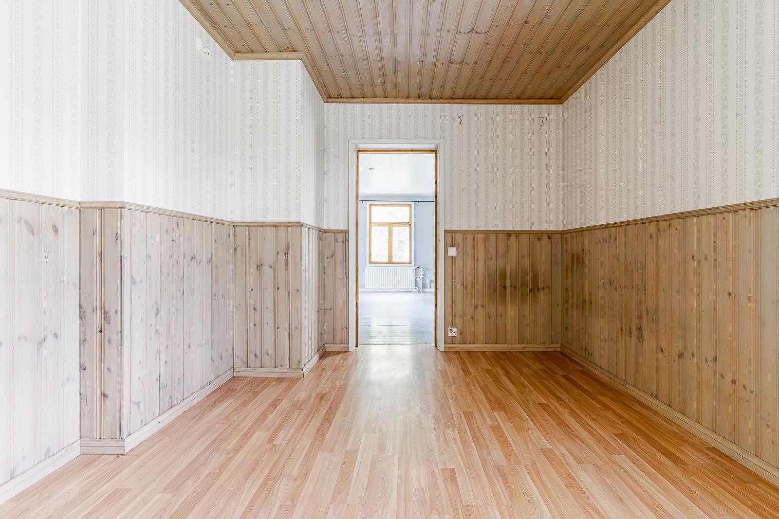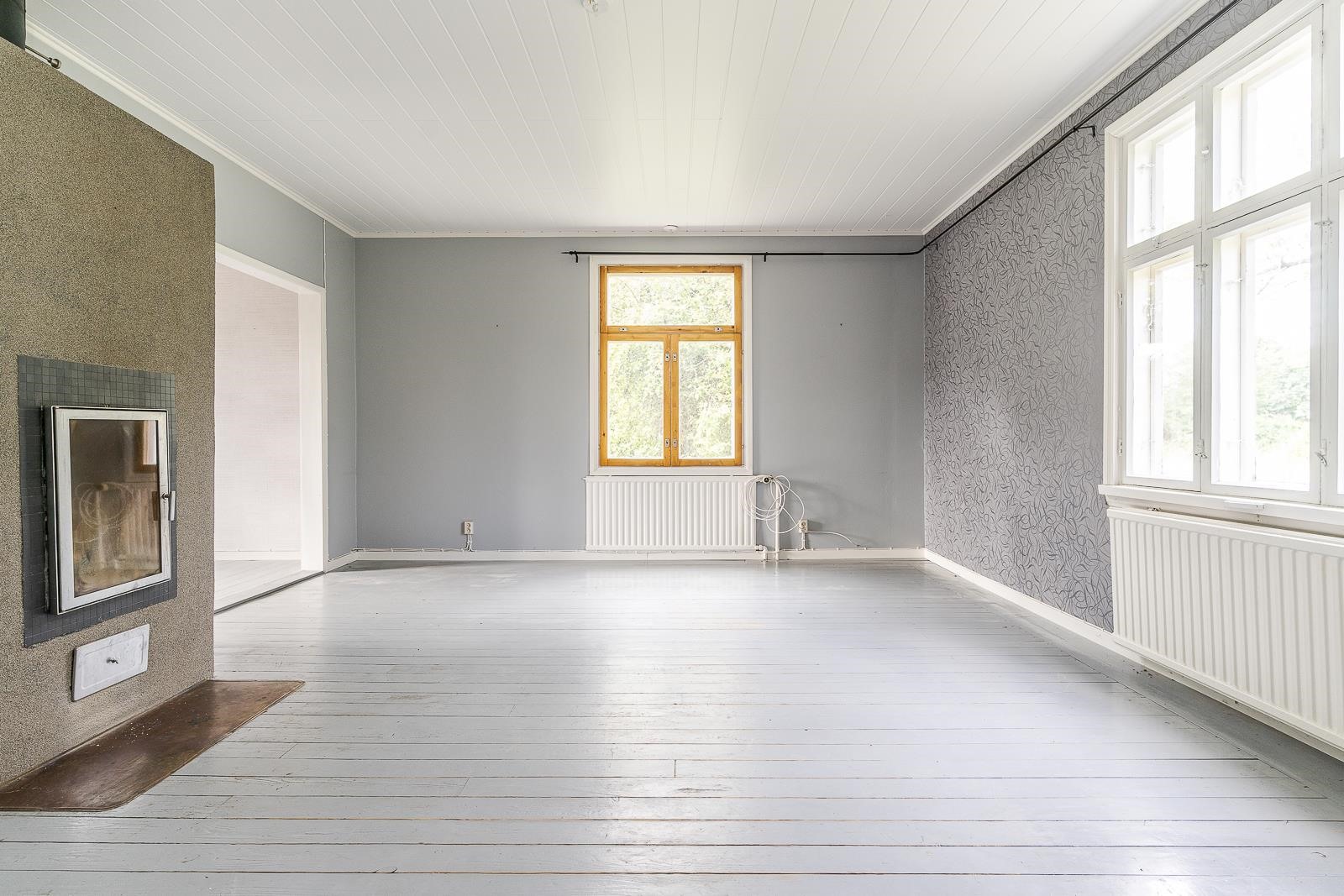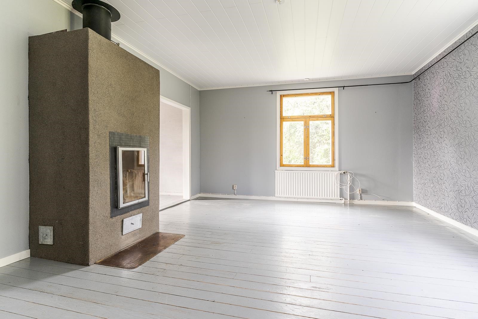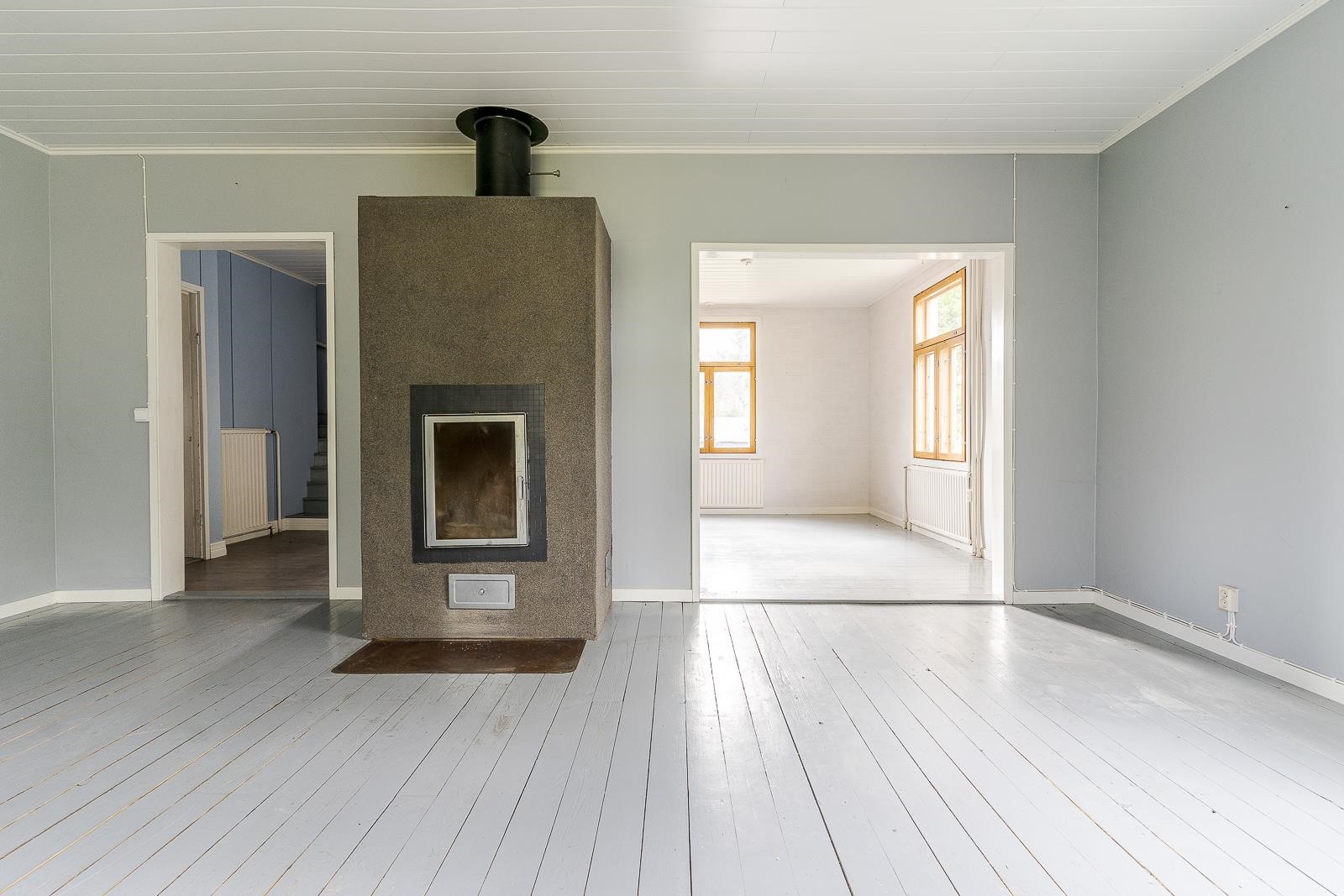 Iso omakotitalo jossa iso keittiö, olohuone ja ruokailutila, makuuhuone ja kylpyhuone ensimmäsellä kerroksella ja toisella kerroksella neljä makuuhuonetta, eteinen ja wc. Säilytystilaa löytyy ullakolla ja kellarissa. Varaava takka olohuoneessa, yläkerran eteisessä ja keittiössä puuhella.