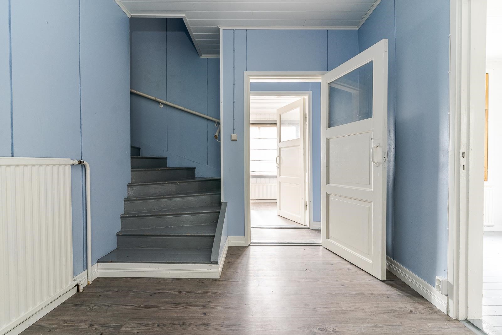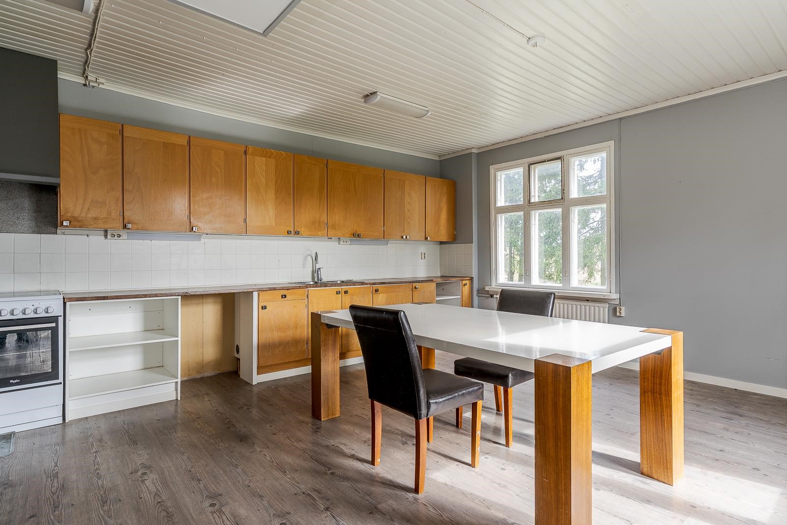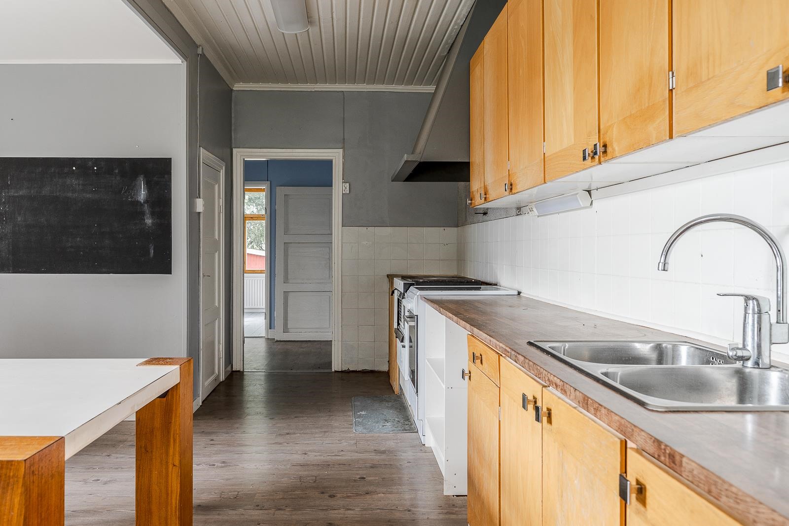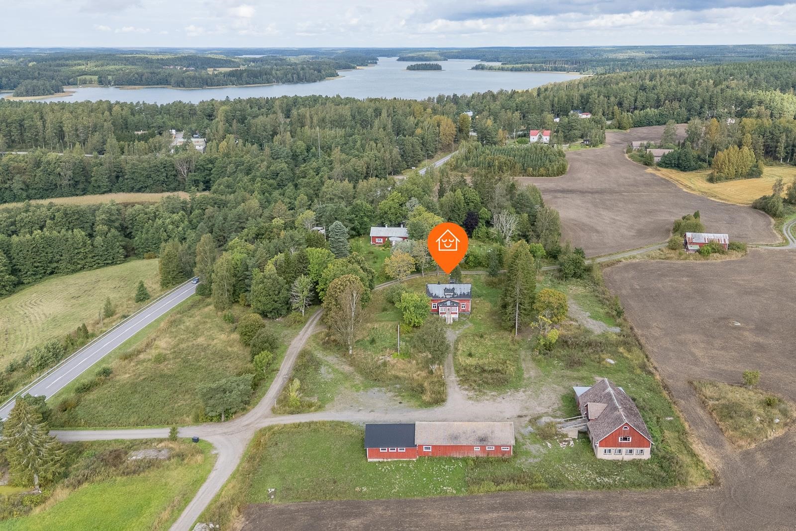 Iso omakotitalo jossa iso keittiö, olohuone ja ruokailutila, makuuhuone ja kylpyhuone ensimmäsellä kerroksella ja toisella kerroksella neljä makuuhuonetta, eteinen ja wc. Säilytystilaa löytyy ullakolla ja kellarissa. Varaava takka olohuoneessa, yläkerran eteisessä ja keittiössä puuhella.