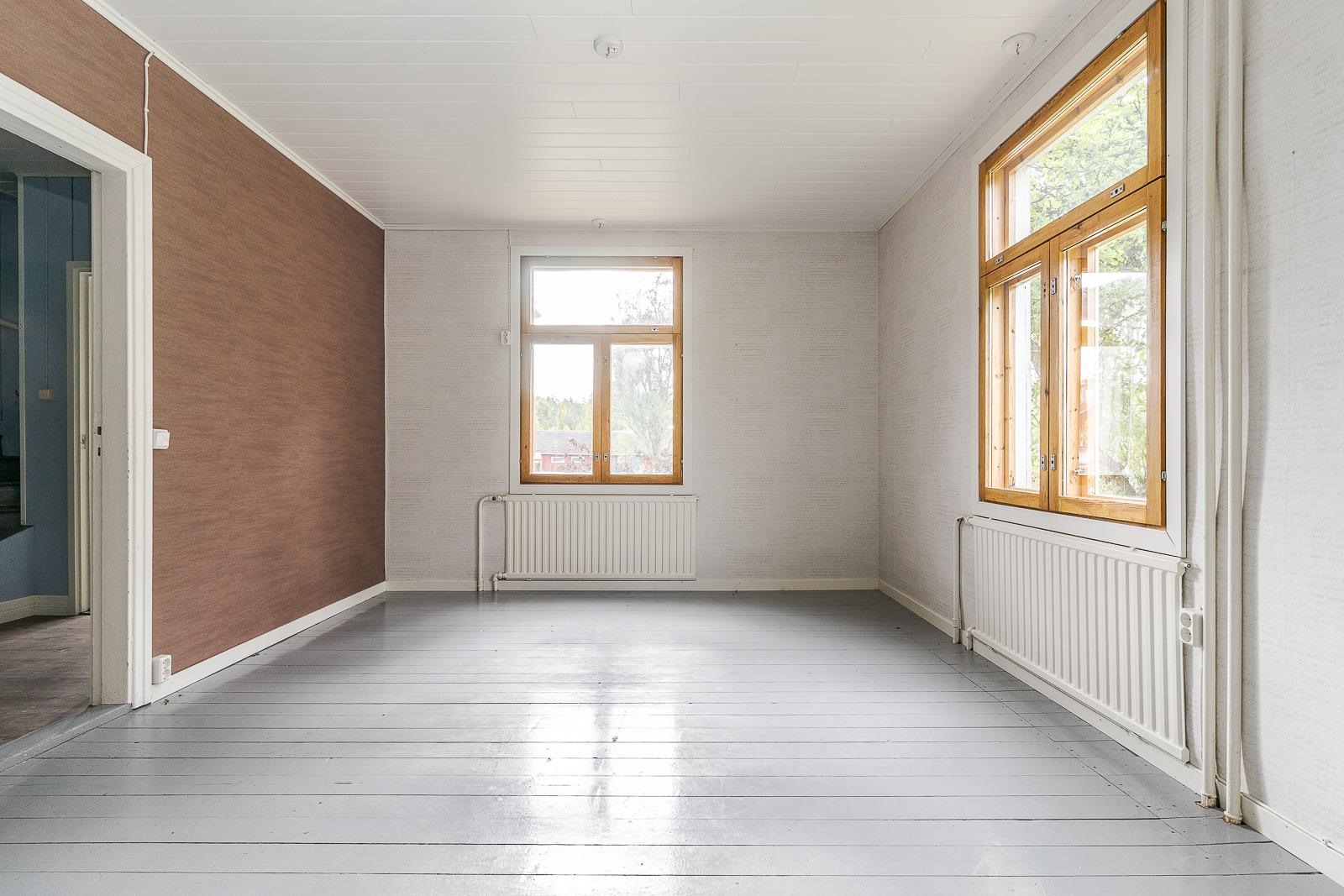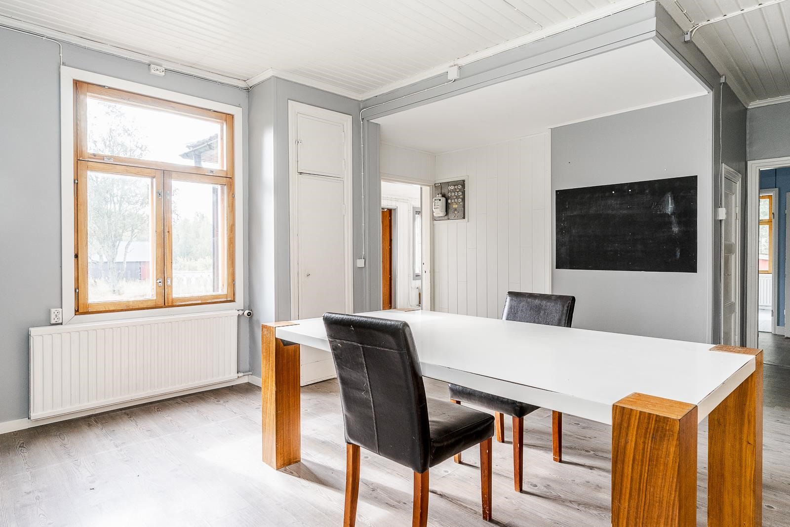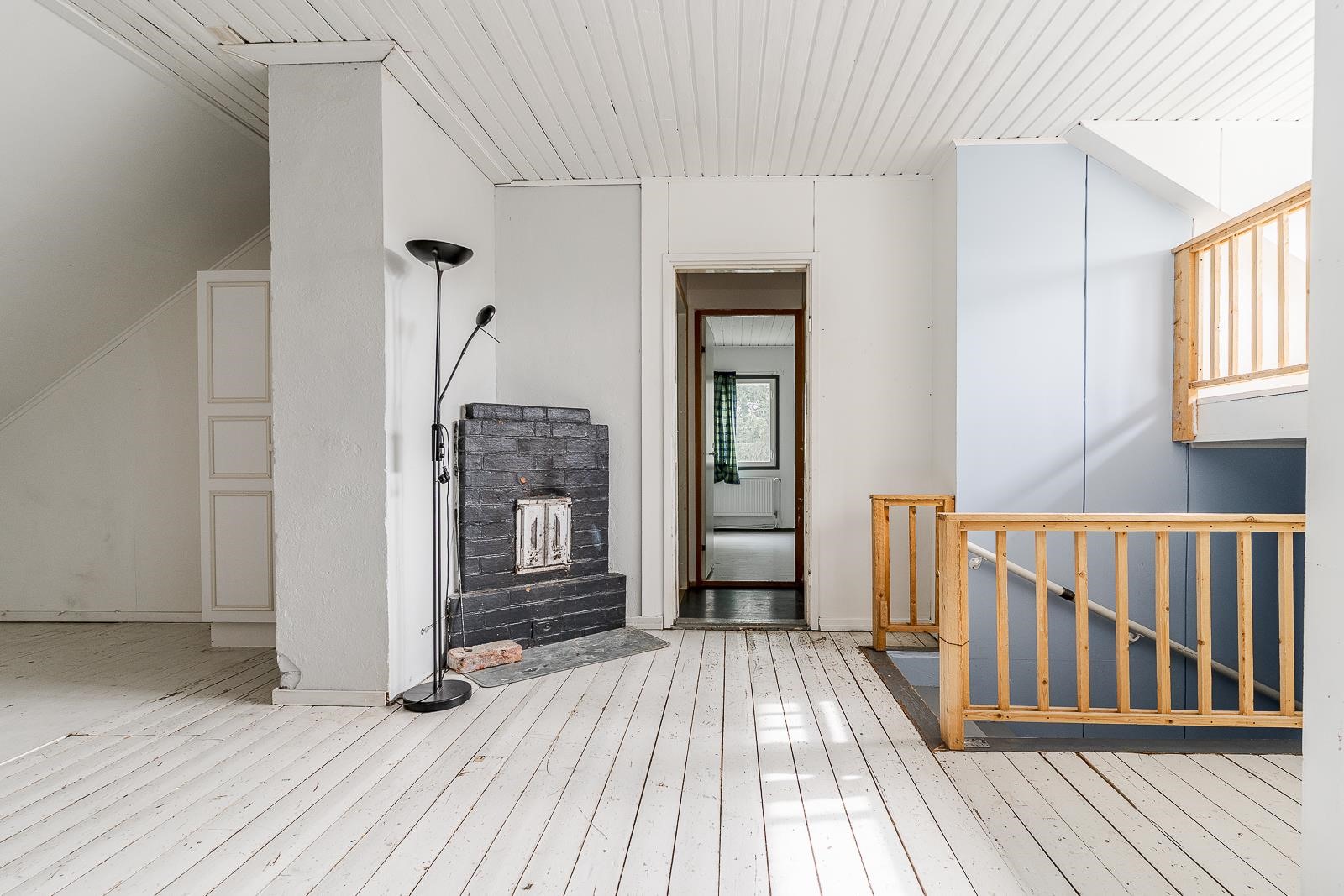 Stort egnahemshus med rymligt kök, vardagsrum och matsal, sovrum och badrum på första våningen. På andra våningen finns fyra sovrum, hall och toalett. Förvaringsutrymmen finns både på vinden och i källaren. Värmelagrande eldstad i vardagsrummet, vedspis i köket och ytterligare en eldstad i hallen på övre våningen.