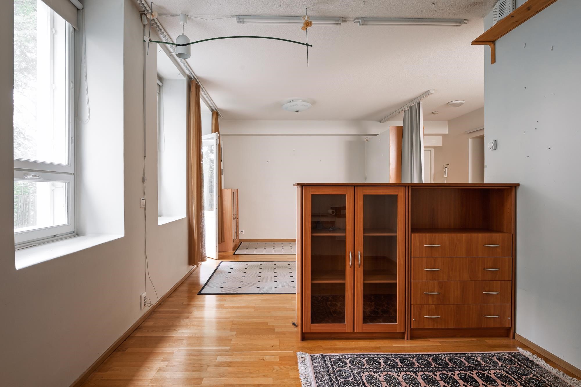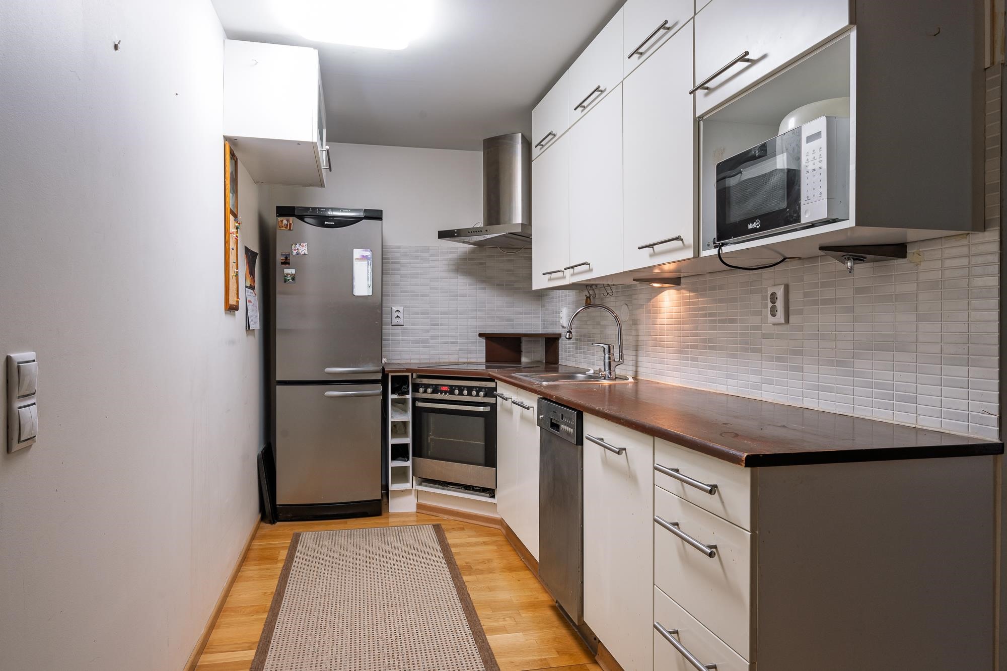 - Jääkaappipakastin, erillisuuni, liesitaso, keraaminen liesi, liesituuletin, astianpesukone kapea, rikki, kaapistot, kiinteät valaisimet.