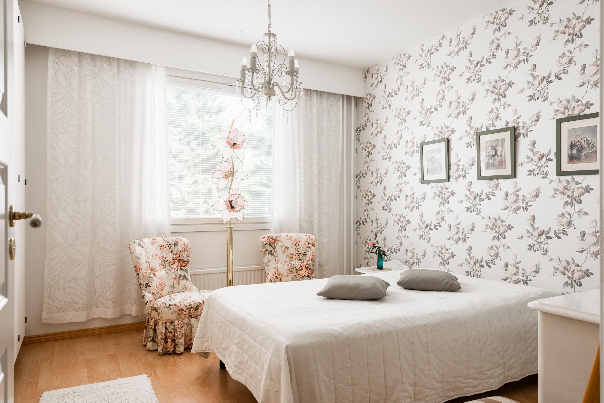 - Keittiö: Laminaatti, maali. Olohuone: Laminaatti, tapetti. Makuuhuone 1: Laminaatti, tapetti. Eteinen: Laminaatti, tapetti. Wc: Muovimatto.