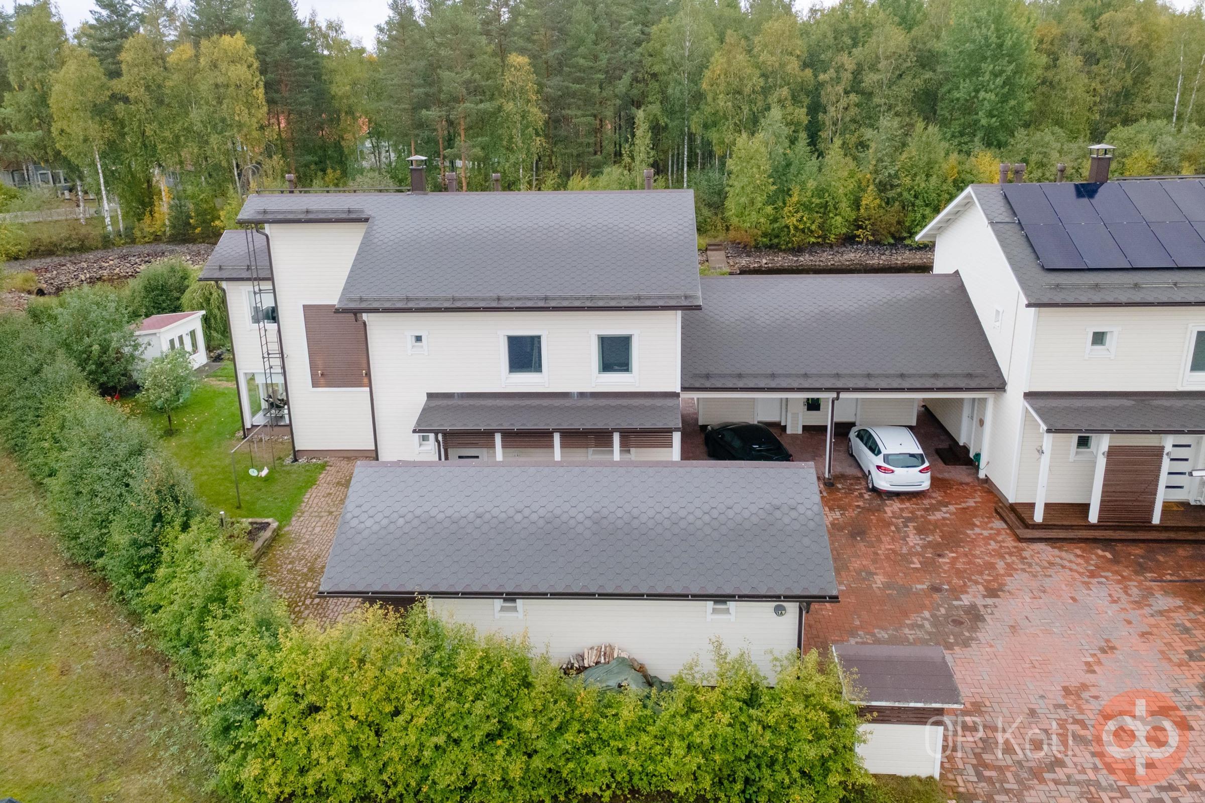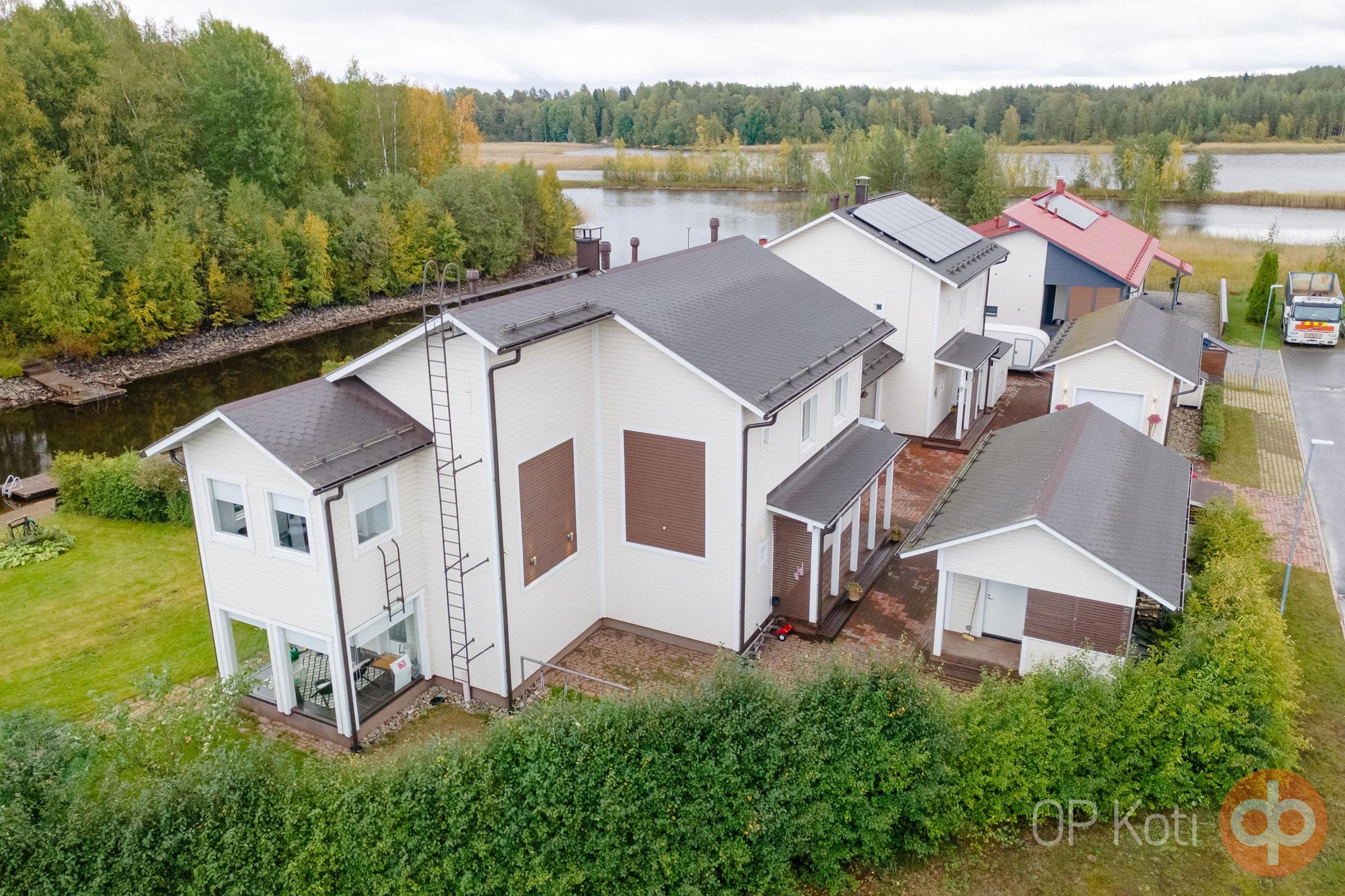 Unelmakoti odottaa Marjalan kauniissa saaressa! Tämä upea paritalo tarjoaa ainutlaatuisen mahdollisuuden elää rauhallisessa ympäristössä Marjalan kanavan rannalla, josta pääsee omalta laiturilta suoraan Pyhäselälle nauttimaan vesistöjen kauneudesta. Tämä moderni koti on varusteltu nykyaikaisin ja laadukkain pintamateriaalein, jotka tuovat asumiseen tyylikkyyttä ja mukavuutta. Avarat ja valoisat tilat luovat harmonisen ilmapiirin, jossa viihtyvät niin perheenjäsenet kuin vieraatkin. Rentoutuminen on taattu ulkoporeammeessa, jossa voit nauttia omasta rauhasta ja tähtitaivaan alla kylpemisestä. Viihde-elämykset ovat myös taattuja, sillä kodin elokuvahuone on varustettu elokuvateatterilaitteistolla, joka jää uudelle omistajalle, täydellinen paikka leffailtoihin perheen ja ystävien kesken. Asunnon käytännöllinen arkieteinen sisäänkäynnin yhteydessä tekee arjesta sujuvaa ja järjestelmällistä, sillä se tarjoaa tilaa ulkovaatteille ja -kengille sekä muille kodin tavaroille. Kotiin kuuluu myös oma autotalli, autokatos sekä lämmin varasto, jotka takaavat riittävästi säilytystilaa ja suojaa ajoneuvoille. Lopuksi, pihalta löytyy vielä leikkimökki/varasto, joka tarjoaa lisää säilytystilaa tai vaihtoehtoisesti perheen pienimmille ihanan leikkipaikan. Marjalan saari tarjoaa rauhallisen ja luonnonläheisen ympäristön, jossa voit nauttia ulkoilusta, veneilystä ja kauniista maisemista ympäri vuoden. Sijainti yhdistää kätevästi luonnon rauhan ja tarvittavien palveluiden läheisyyden, kaikki tärkeät arjen palvelut ovat lyhyen matkan päässä. Kutsu tämä upea koti omaksesi ja astu unelma-asumiseen, jossa yhdistyvät nykyajan mukavuudet ja luonnonläheisyys! Varaa oma esittelyaikasi ja tule ihastumaan tähän ainutlaatuiseen paritaloon, joka täyttää kaikki toiveesi ja tarpeesi. Tässä on koti, jossa jokainen päivä on kuin lomaa!
