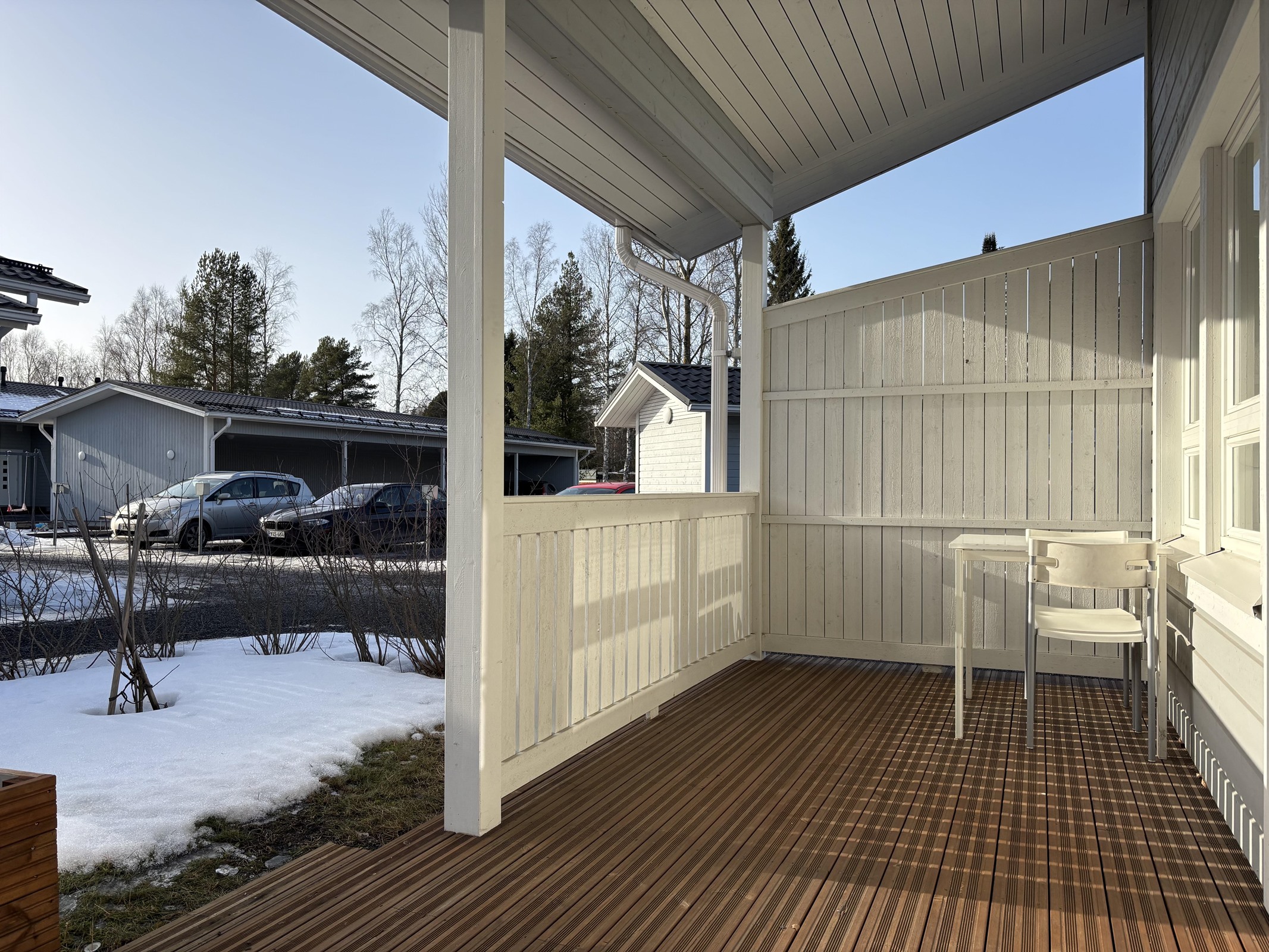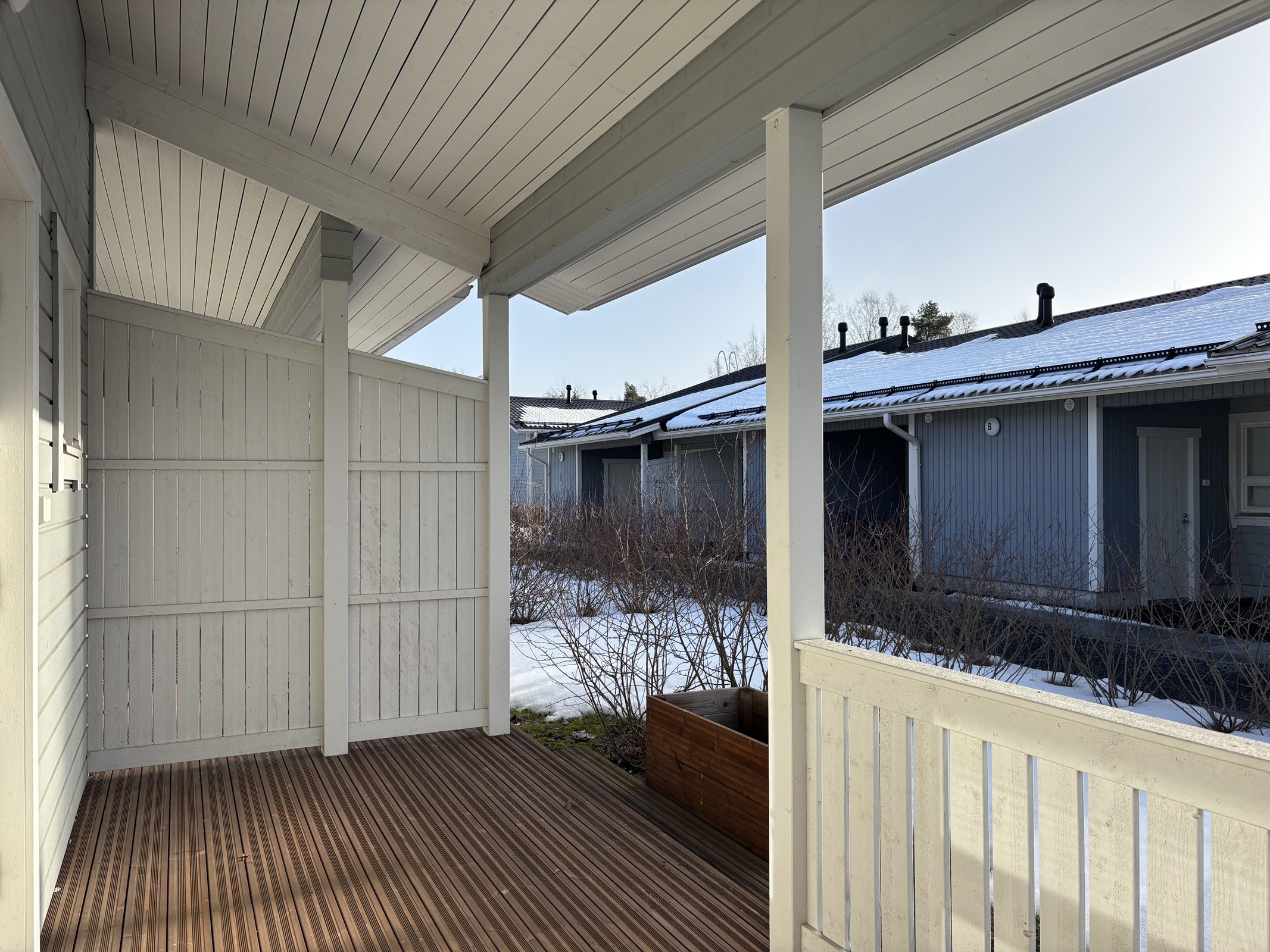 Myyntiin siiskuntoinen, vuonna 2015 valmistunut saunallinen rivitalon päätykaksio. Sijainti on rauhallinen ja kulkuyhteydet ovat sujuvat moneen eri suuntaan. Pinnat ovat hyvässä kunnossa ja pohjaratkaisu on onnistunut. Olohuoneesta käynti terassille, jonka yhteydessä mukava oma piha-alue. Sisäänkäynnin yhteydessä on huoneistokohtainen varastotila, jossa on hyvä säilyttää mm. kausivarusteita.