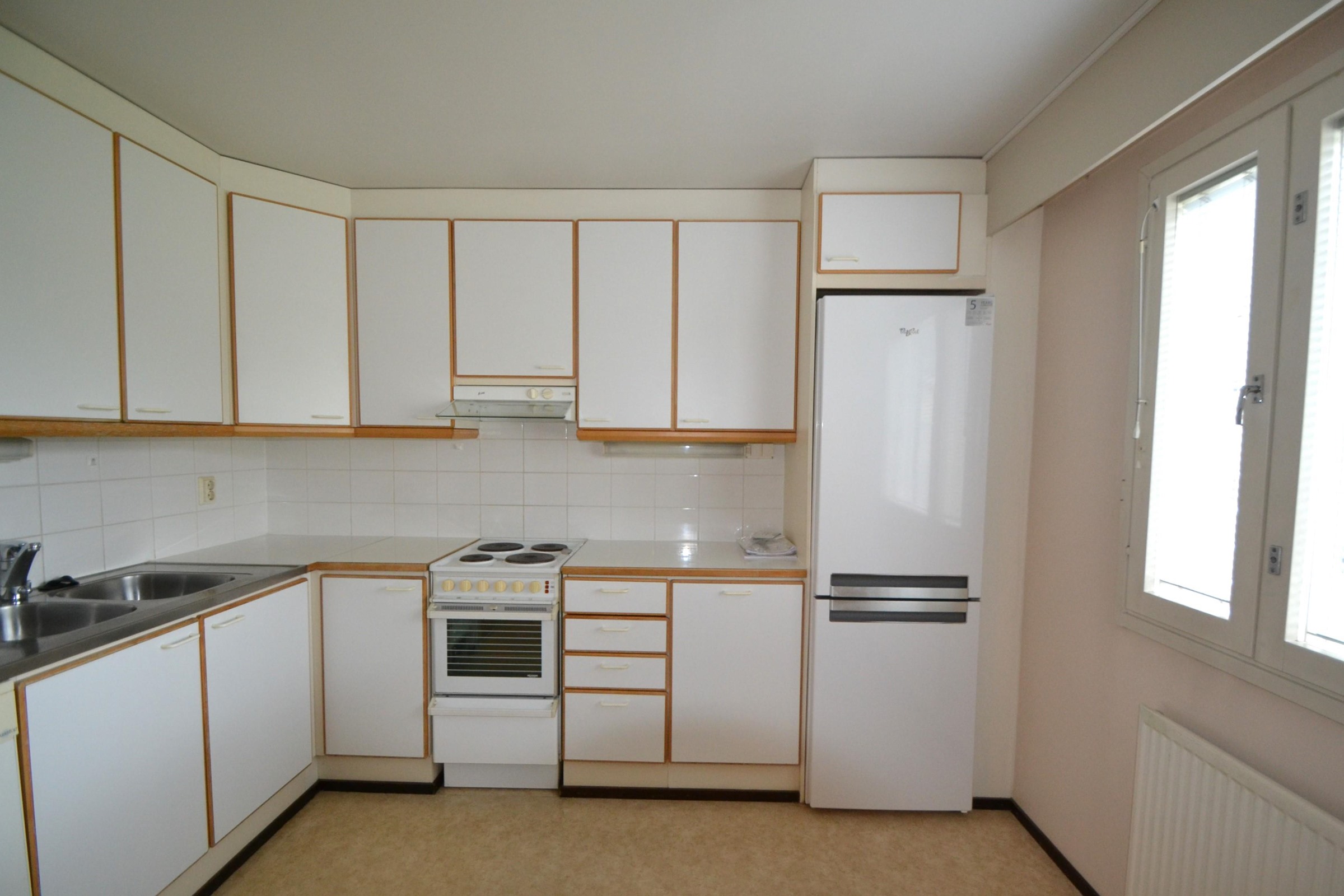 - Jääkaappipakastin, sähköliesi, kaapistot.