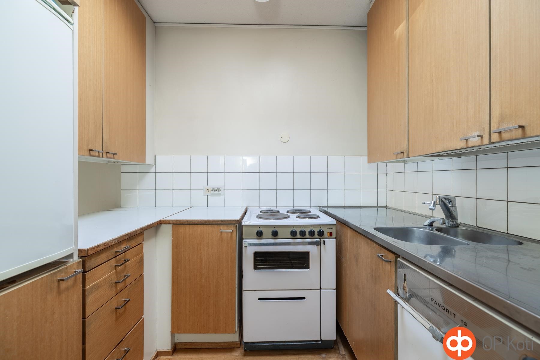 - Jääkaappi, sähköliesi, astianpesukone Rikki, kaapistot.