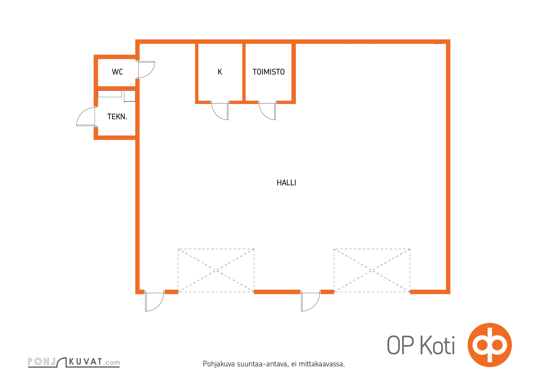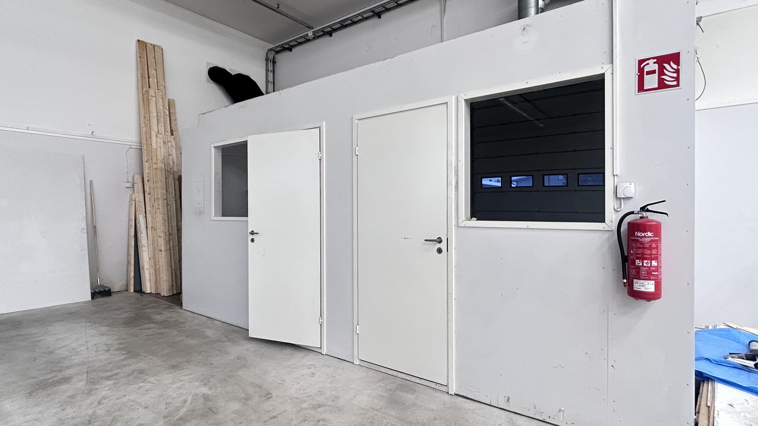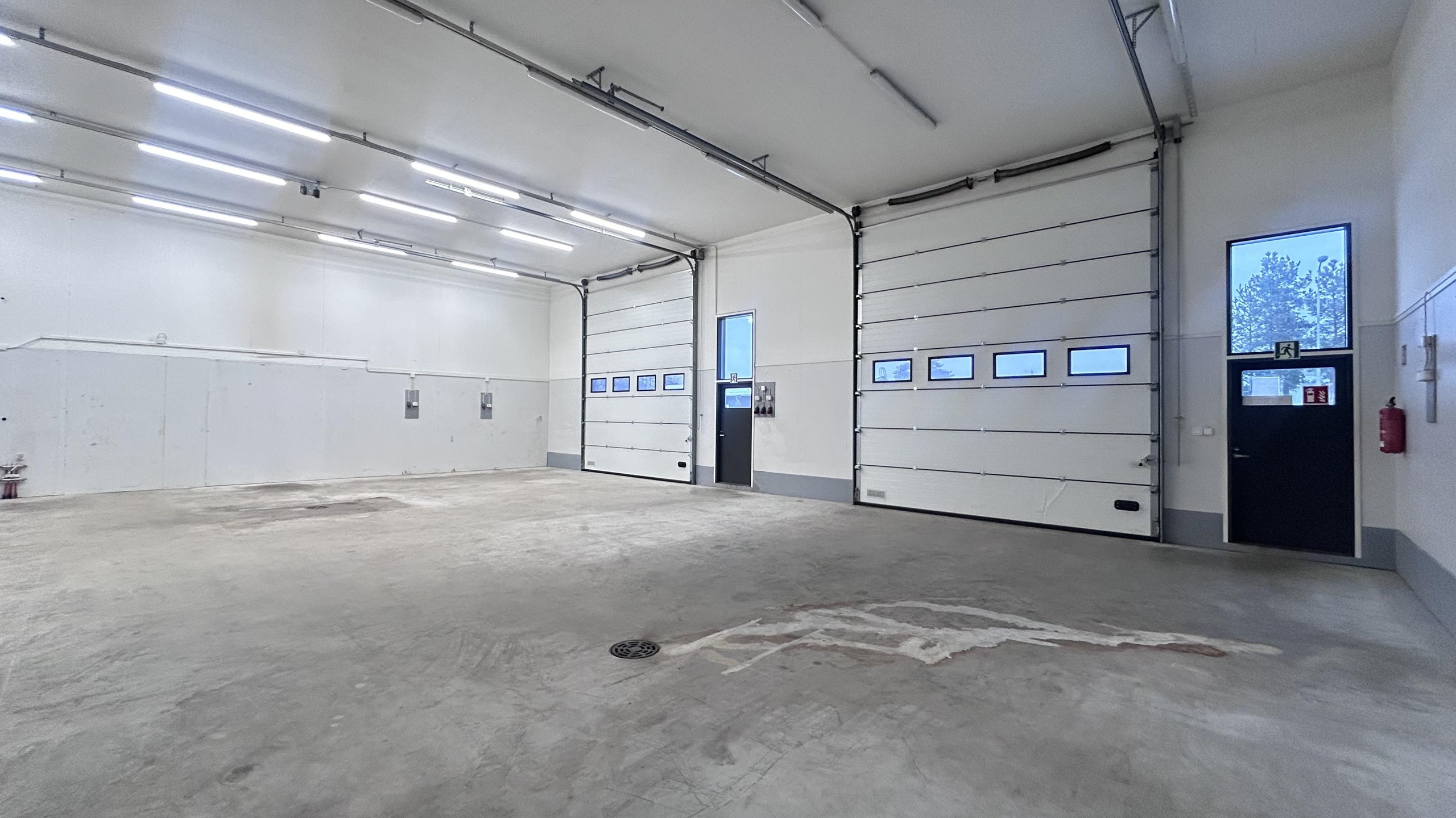 Kaksi hallitilaa yhdistettynä ( 100m2+ 97m2), mahdollista jakaa myös 100/97m2. Kohteen sijainti keskeinen yrityksille näkyvällä paikalla! Korkeata hallitilaa isoilla nosto-ovilla. Lämmityksenä edullinen maalämpö, piha-alue asfaltoitu.Tiloissa viimeistellyt pinnat, wc- sekä vesipisteet, lisäksi taukotila, toimisto ja erillistyötila esim. maalaamo. Vuokrataan ensisijaisesti yrityksille, vuokra alv0%.