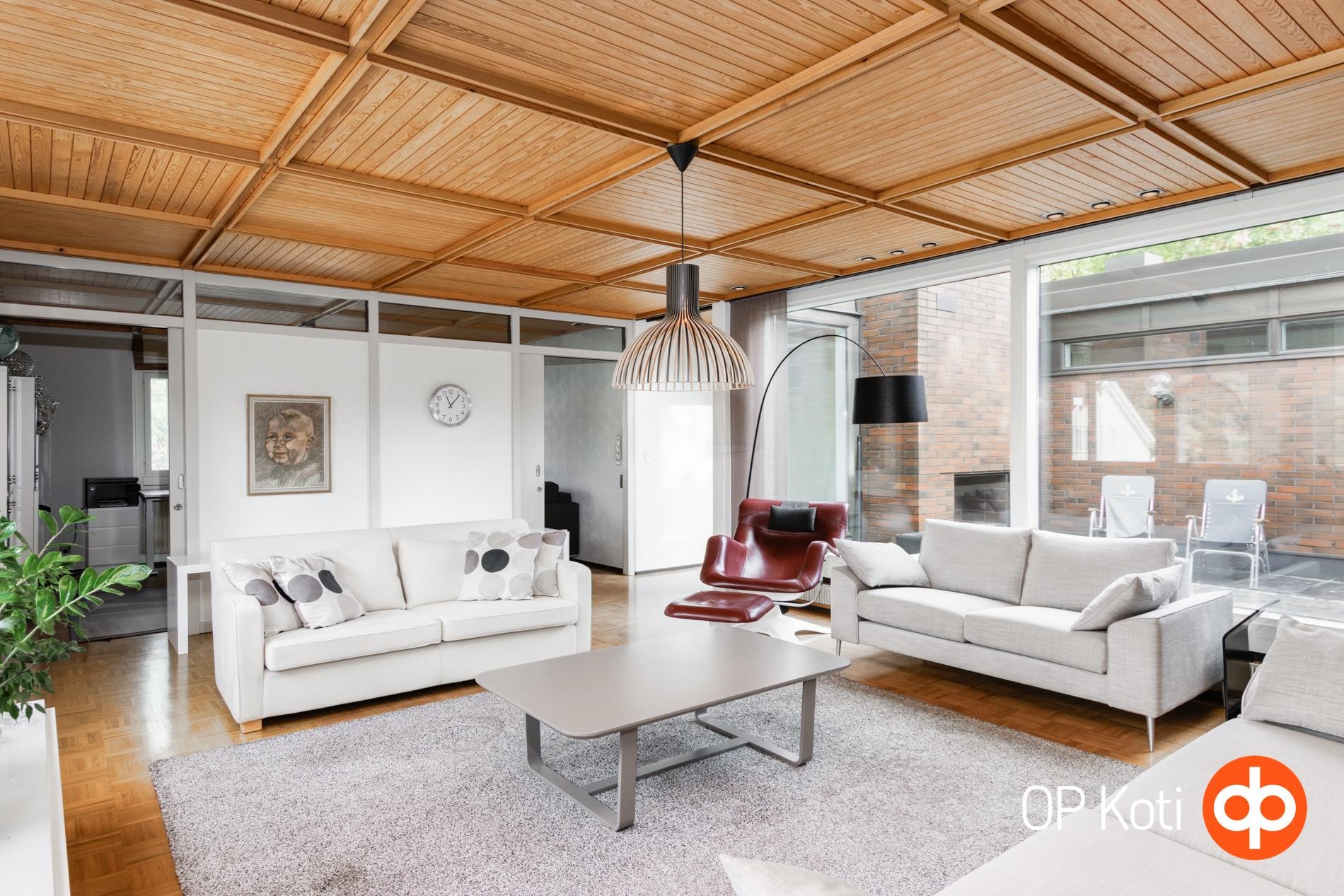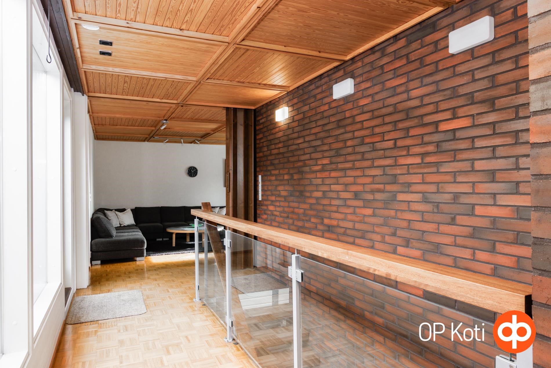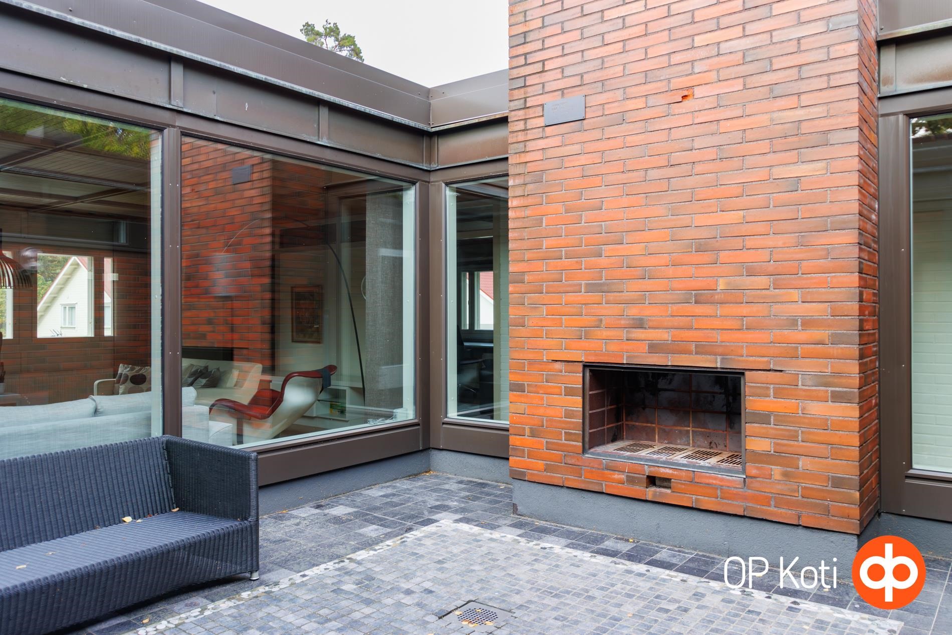 Kodin sydän on näyttävä sisäpihan ulkopatio, jossa tunnelmaa luo kaunis takka. Täydellinen paikka rentoutumiselle tai illanvietoille ystävien kesken. Tilat on suunniteltu huolella, ja talosta löytyy poikkeuksellisen suuret oleskelutilat sekä eriytettävissä oleva alakerta, jossa voi halutessaan joku perheenjäsen asua kuin omassa yksiössään.