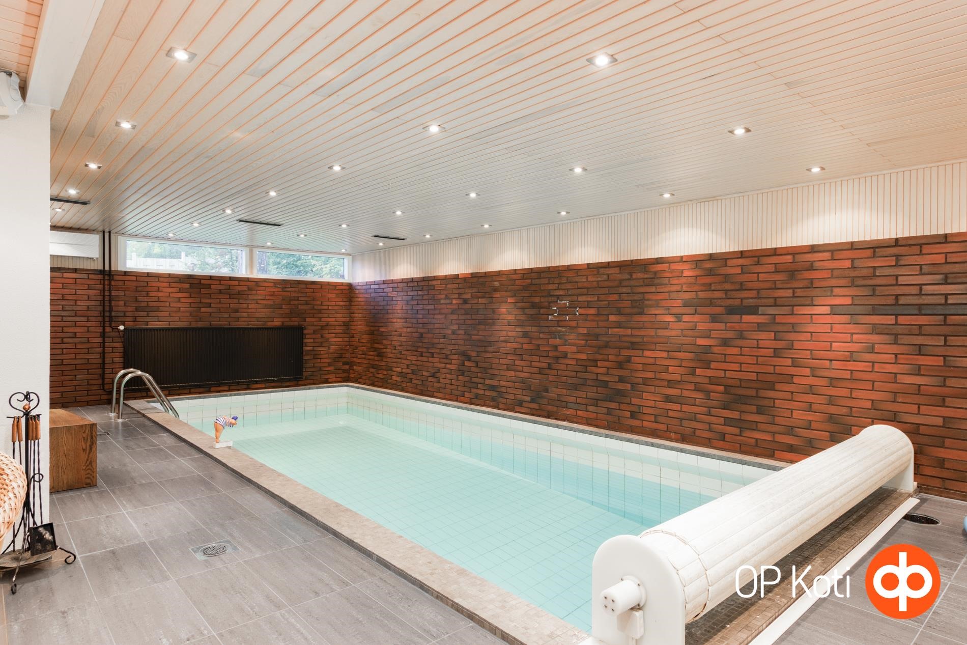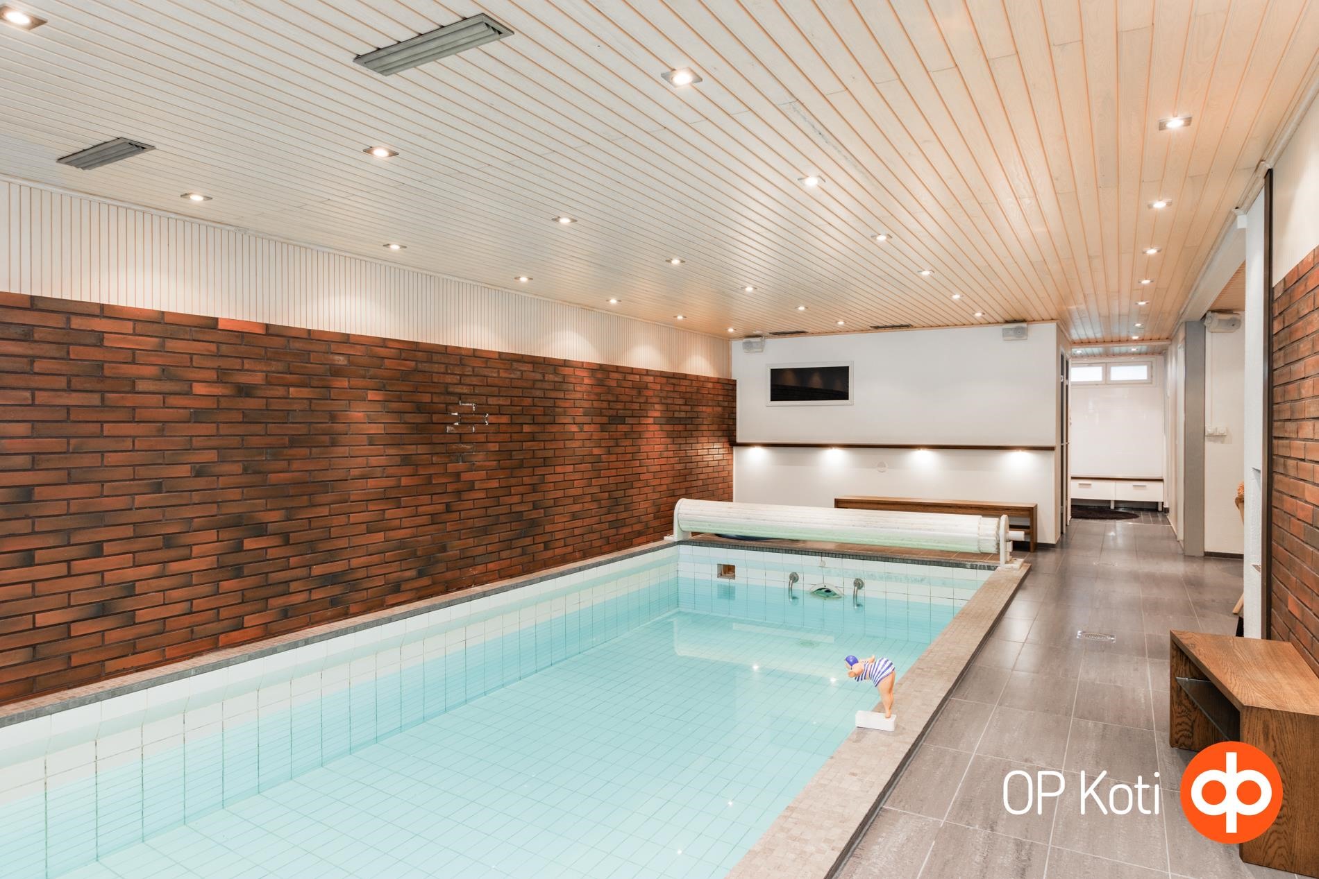 Spa-tunnelmaa ja arjen luksusta tarjoaa kodin tyylikäs uima-allasosasto takkahuoneineen. Täysin uudistettu alakerta pitää sisällään spa-tilat, laadukkaat materiaalivalinnat ja runsaasti säilytystilaa, suuret varastotilat ja kellarikerros tarjoavat monipuolisia mahdollisuuksia.