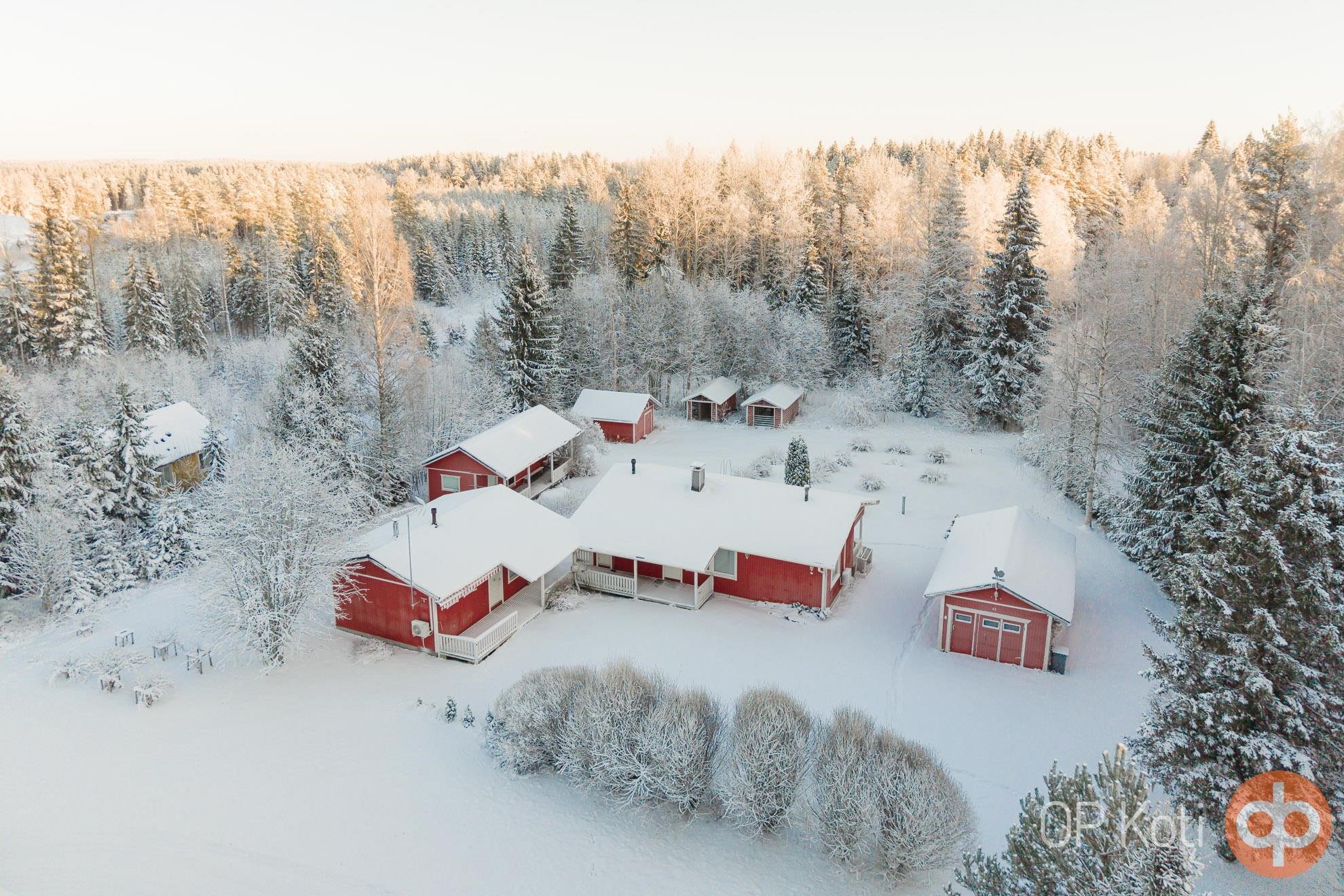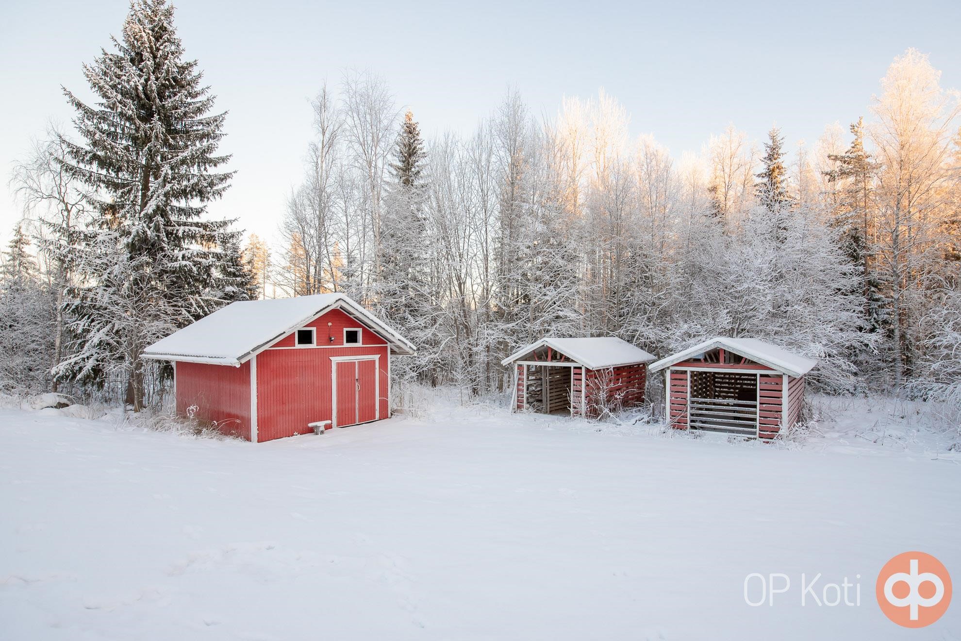Talousrakennuksina toimii autotalli, aittarakennus, työkaluvaja ja 2 kpl liitereitä.