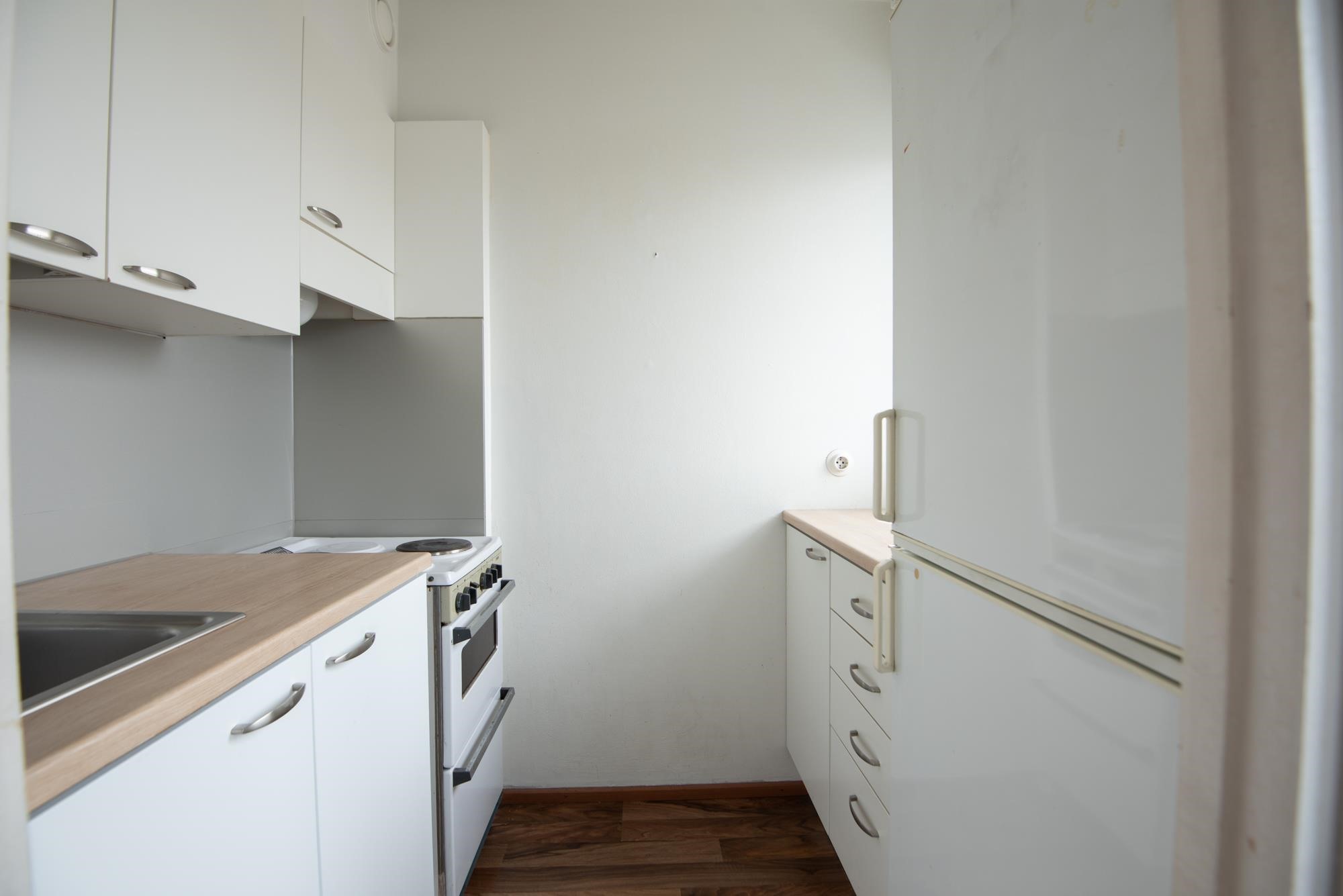 - Jääkaappipakastin, lattialiesi, kaapistot.