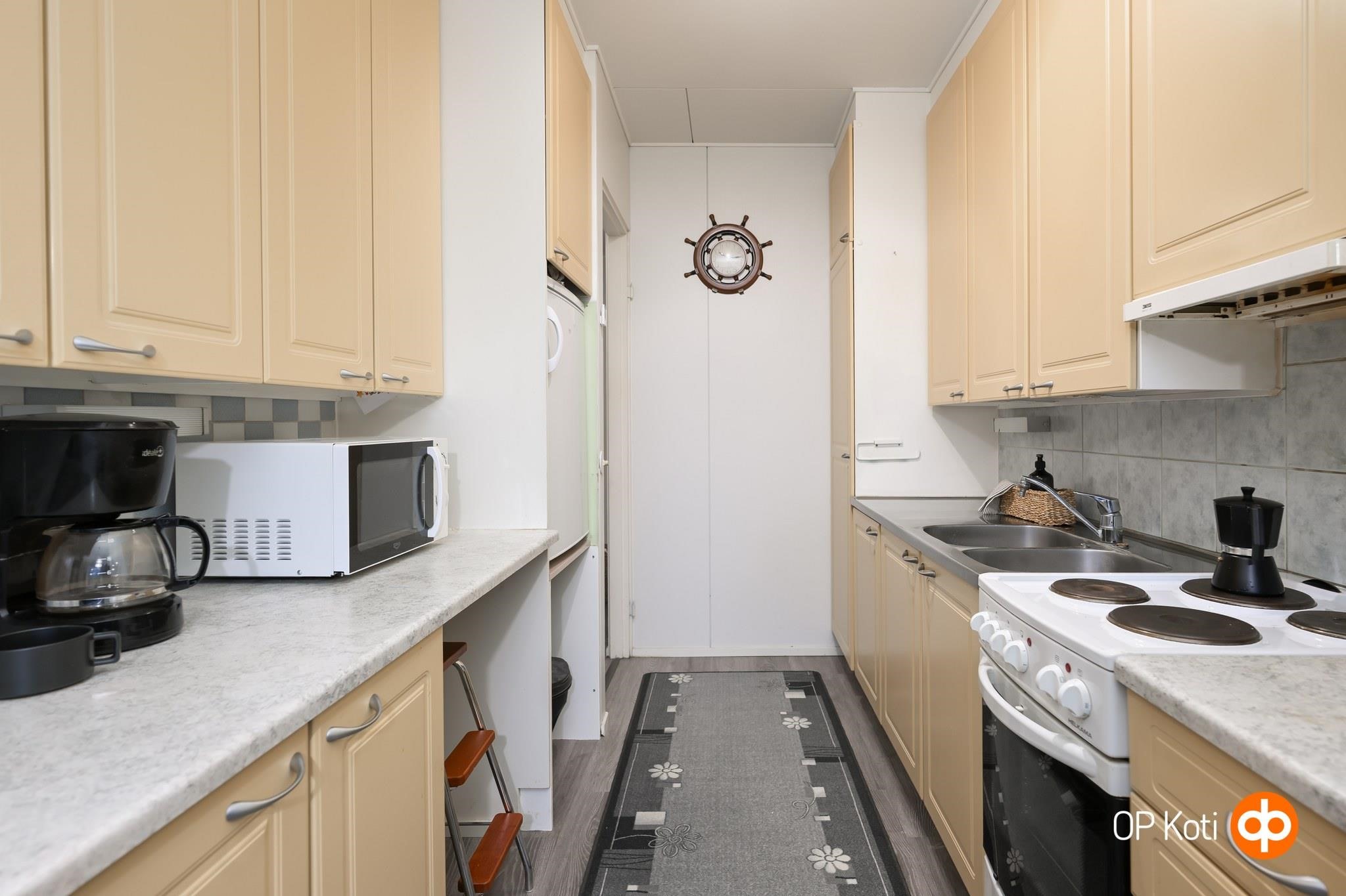 - Jääkaappi, sähköliesi, liesituuletin, kaapistot, kiinteät valaisimet.