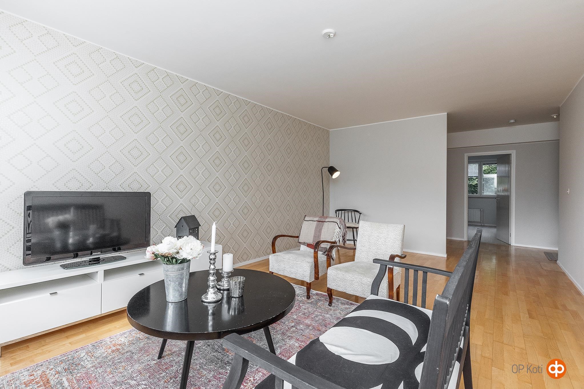 Tilava ja valoisa läpitalon huoneisto hissitalon toisessa kerroksessa. Asunnon seinäpinnat, makuuhuoneen ja keittiön lattiat sekä kylpyhuone ja keittiö remontoitu 2025.Yhtiön 0-kerroksessa liiketiloja. Kodissa reilunkokoinen olohuone ja parveke sisäpihan suuntaan. Keittiön ja makuuhuoneen ikkunat Torikadulle. Talo tasaisella helppokulkuisella tontilla.