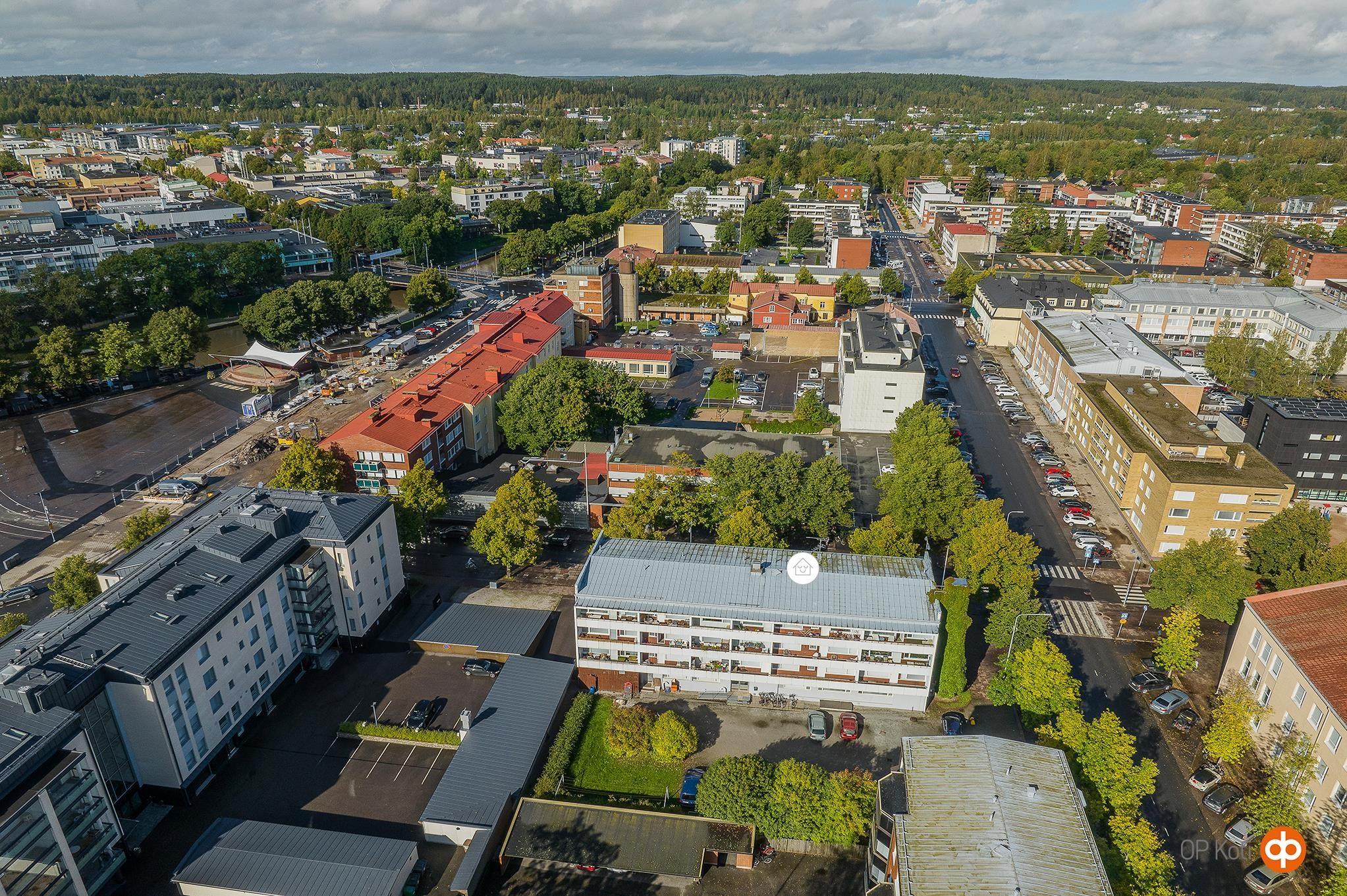 Valoisa läpitalon huoneisto, jossa olohuone ja parveke etelän suuntaan. Keittiön ja makuuhuoneen ikkunoista näkymät elävälle Torikadulle. Asunnossa toimiva pohjaratkaisu reilunkokoisella olohuoneella ja tilavalla makuuhuoneella. Juuri uusittu keittiö omana tilanaan erillään olohuoneesta. Keittiössä hyvin tilaa kaapistoille kodinkoneineen ja arkiruokapöydälle. Olohuoneessa paikka suuremmallekin vieras ruokapöydälle. Hyvällä maulla remontoitu toiminnallinen kylpyhuone. Kodin sähköstä ja vedestä maksetaan kulutuksen mukaan.