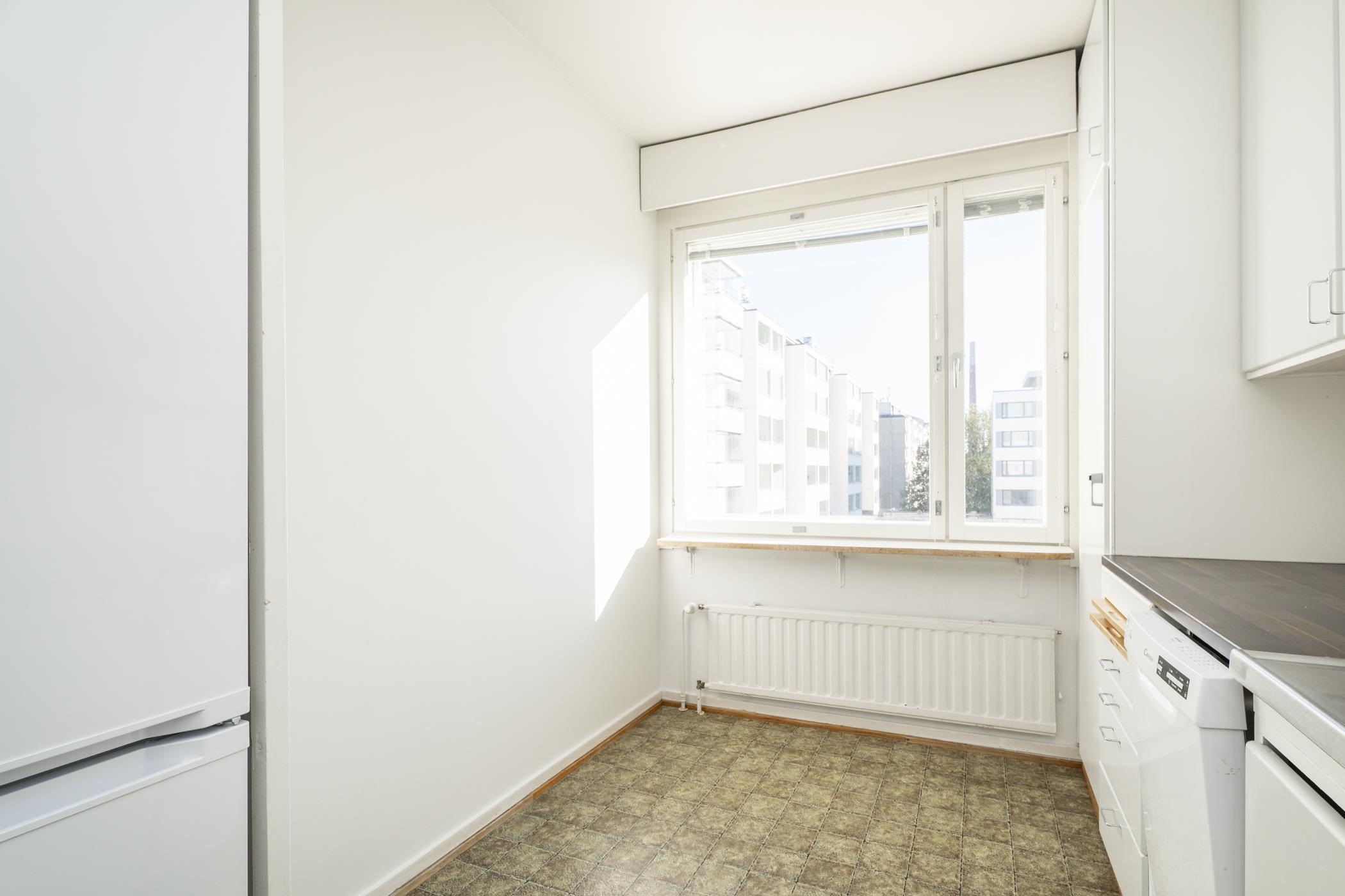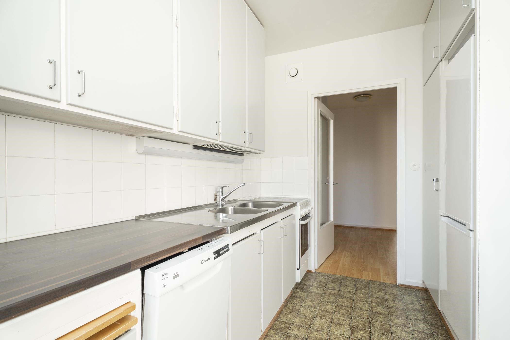 - Keittiön varusteluun kuuluu jääkaappipakastin, lattialiesi, astianpesukone, kaapistot.