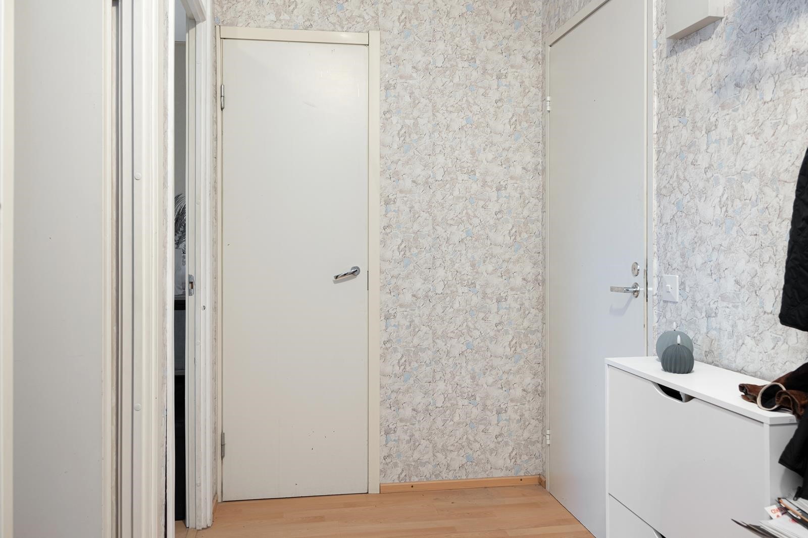 Keittiö: Muovimatto, seinät tapettia. Olohuone: Laminaattilattia, seinät tapettia. Makuuhuone 1: Laminaattilattia, seinät tapettia. Kylpyhuone: Laatoitettu.