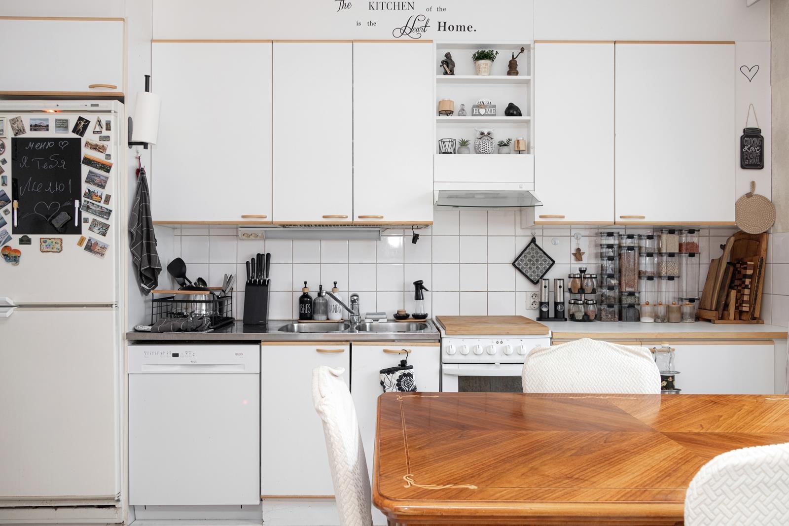 - Jääkaappipakastin, lattialiesi, sähköliesi, liesituuletin, astianpesukone Rikki, kaapistot, kiinteät valaisimet.
