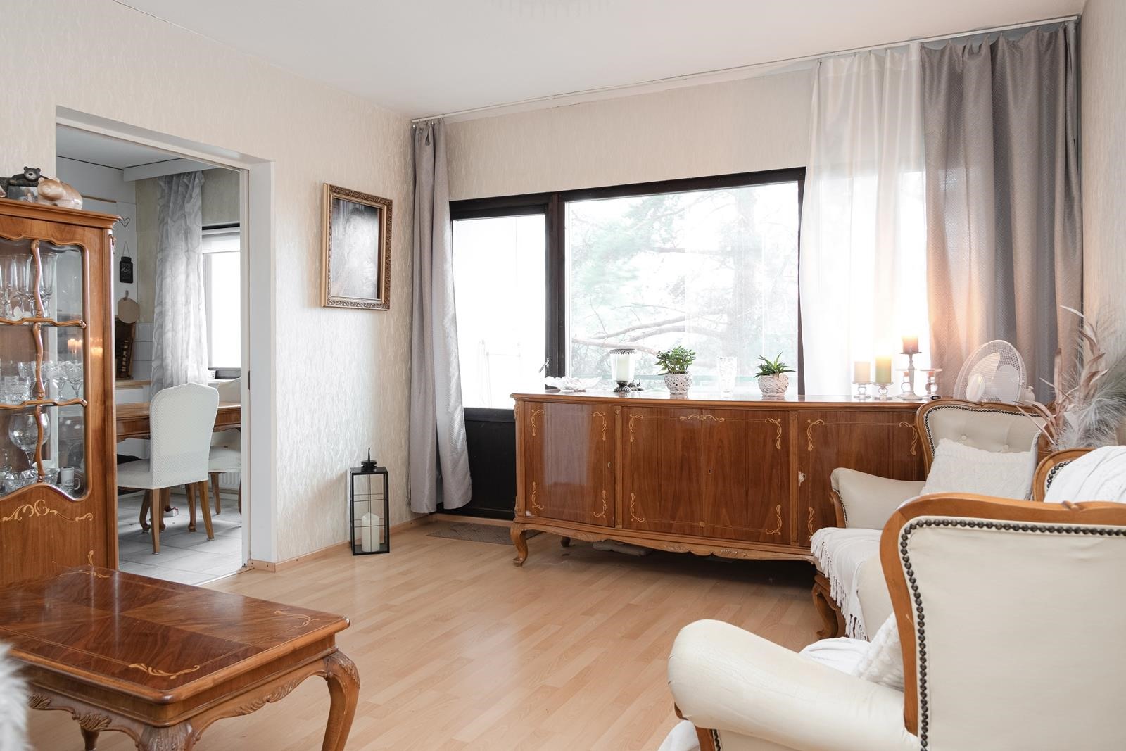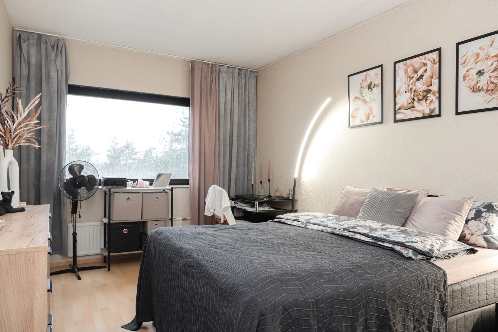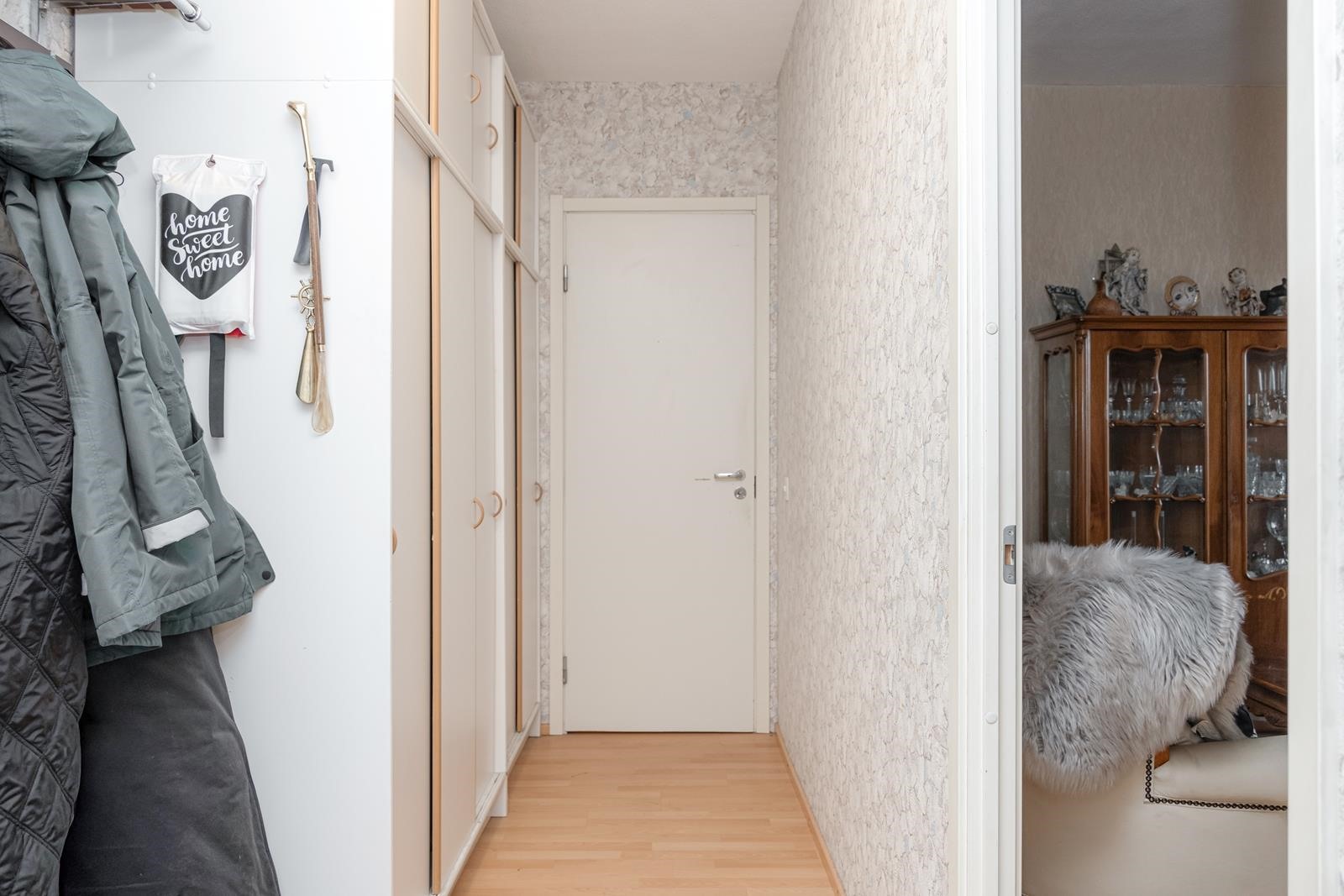 Asunnon 59,5 m2 on jaettu niin, että arki sujuu vaivattomasti. Olohuone on avara ja jatkuu lasitetulle parvekkeelle, joka tuo lisää tilaa ja mahdollisuuden nauttia ulkoilmasta ympäri vuoden. Keittiö on erillinen, mikä tekee arjesta käytännöllistä, ja vaatehuone tuo kaivattua säilytystilaa.