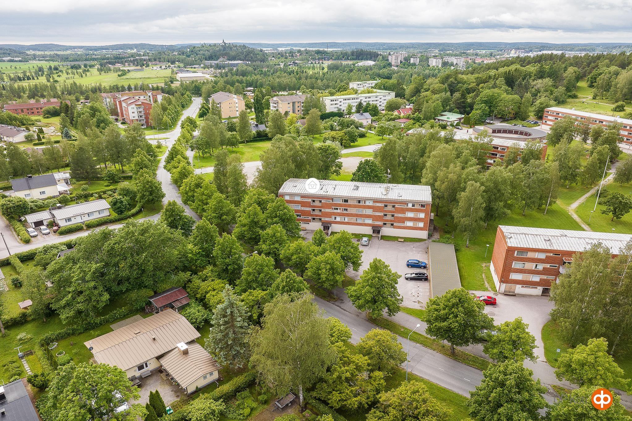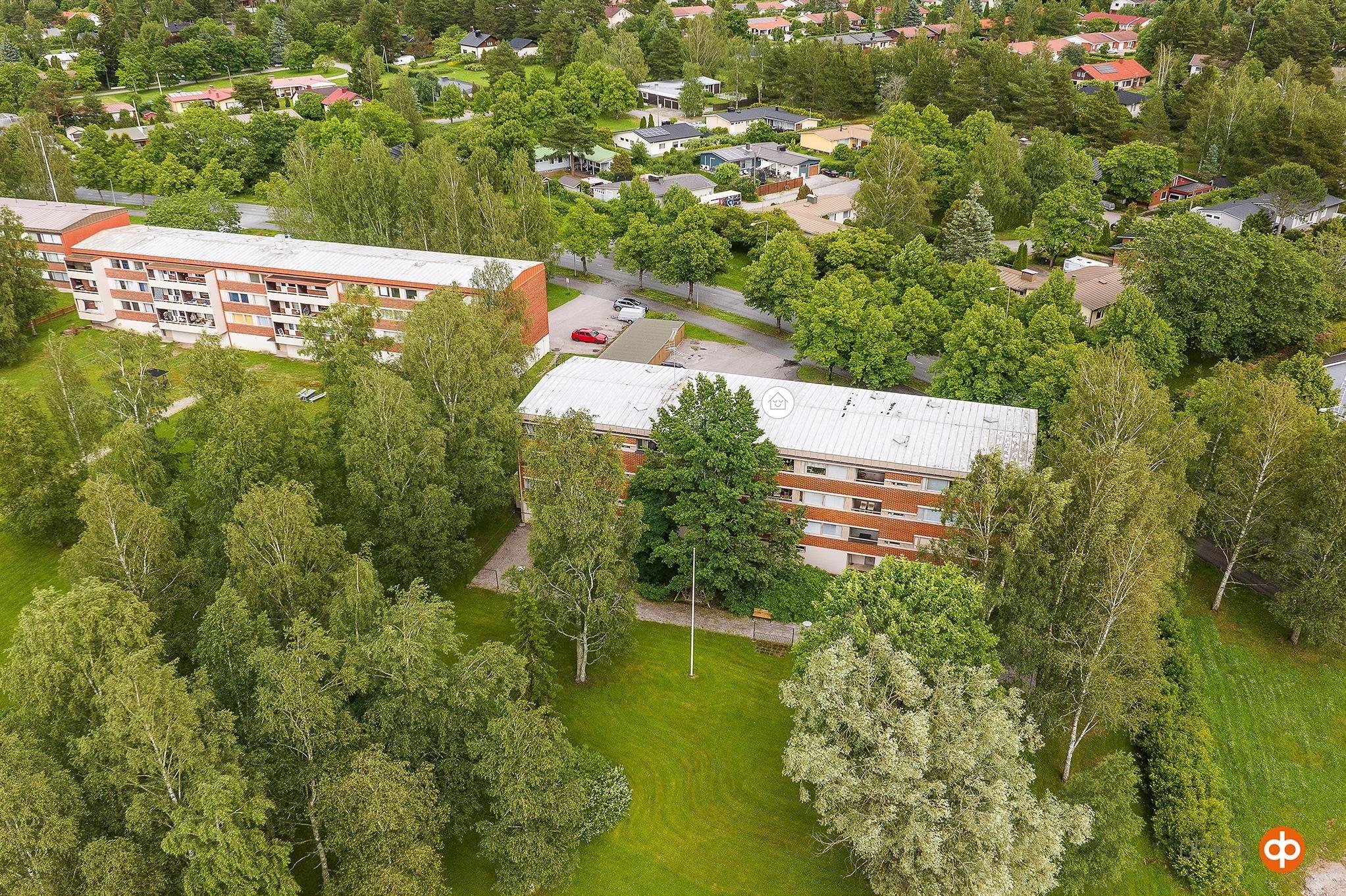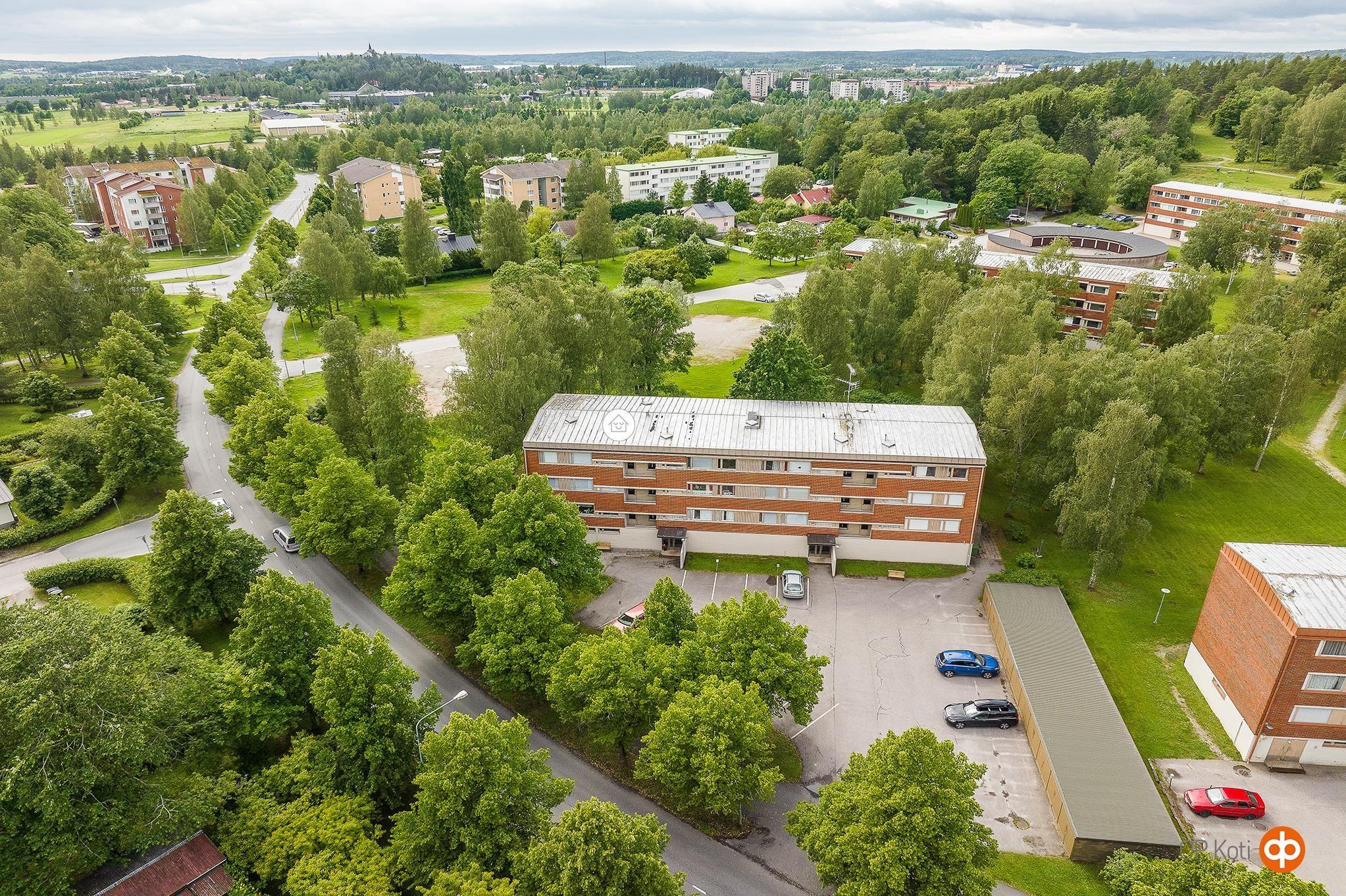 Huoneiston ikkunoista ja parvekkeelta puistomainen näkymä länsisuuntaan. Asunnolla käytössään lämmin varasto ja kylmäkellari. Autolle sähkötolppapaikka.