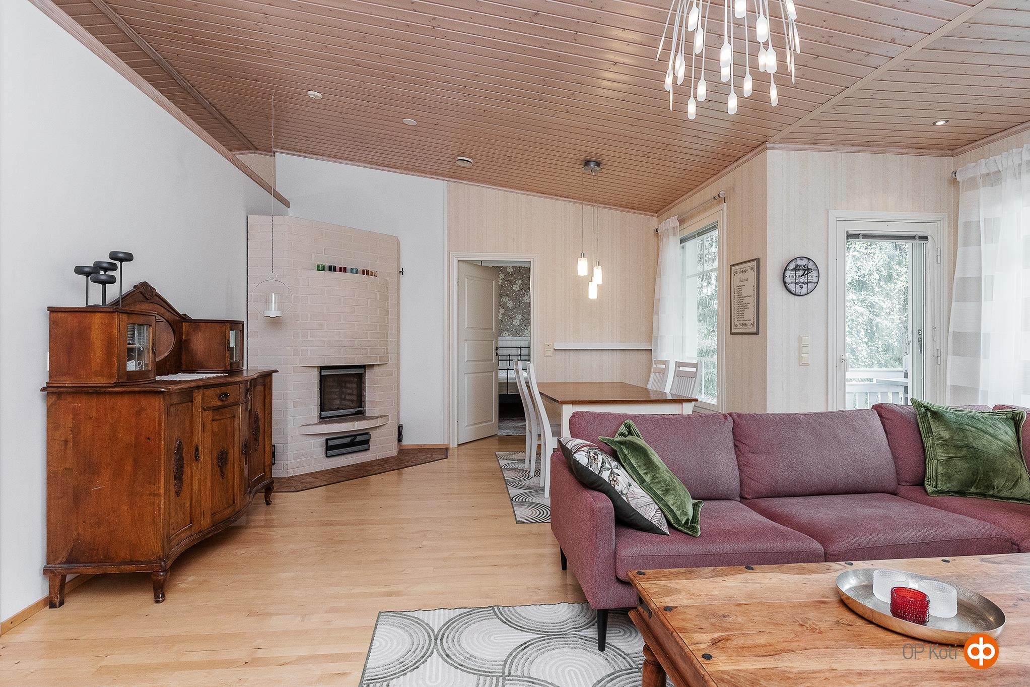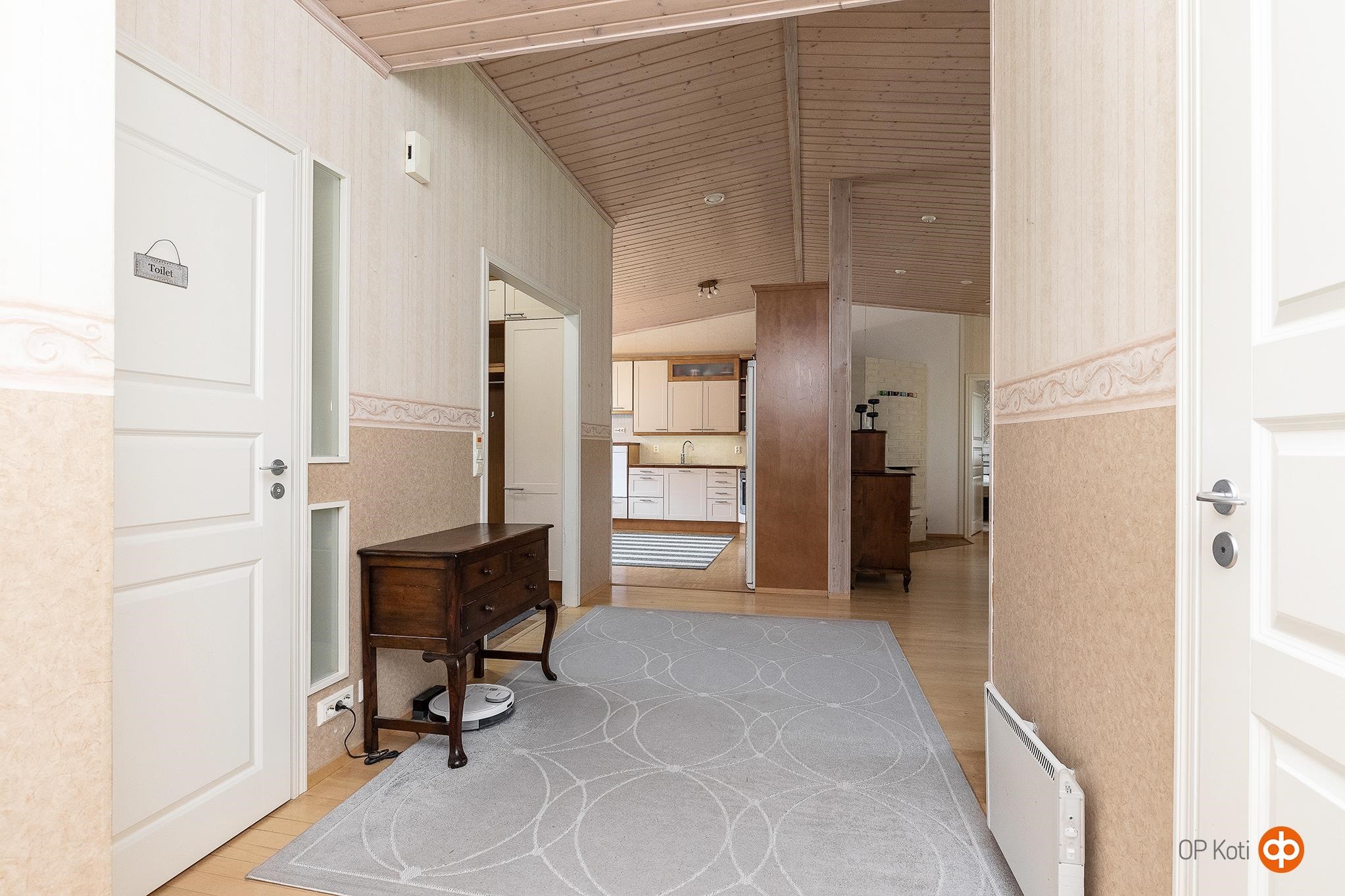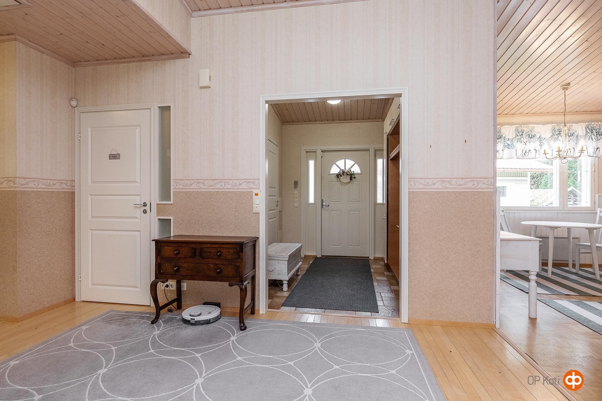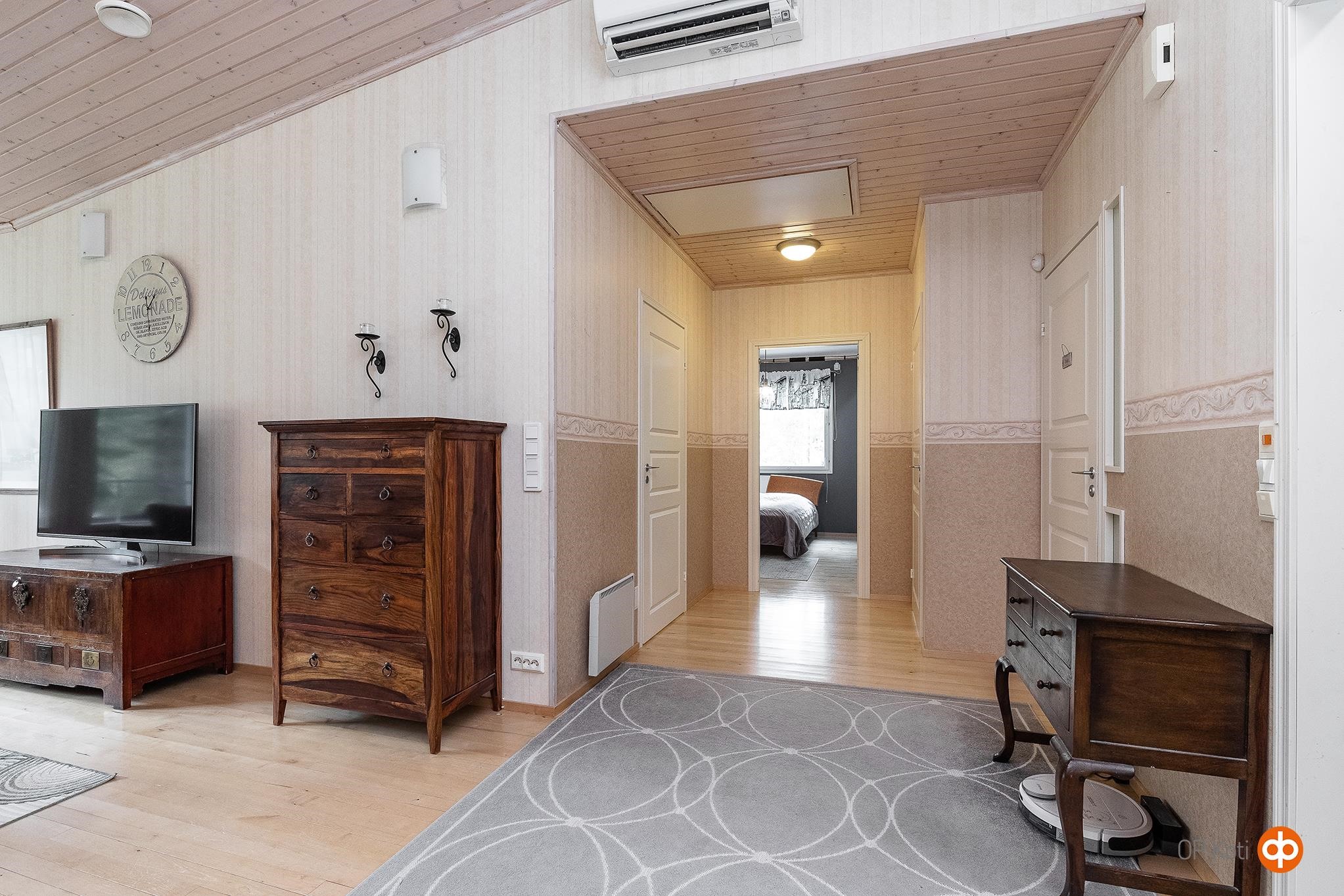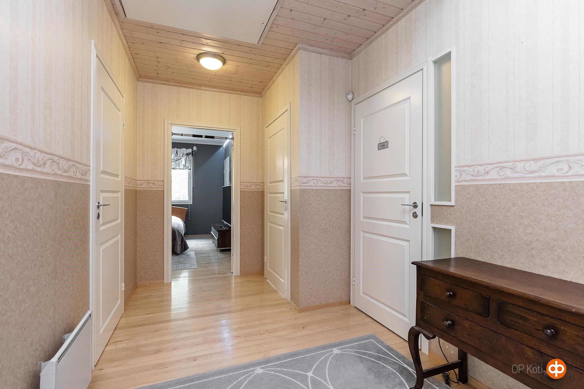 - Keittiö: parkettilattia, puolipaneeli. Olohuone: Lautalattia, tapettia. 3 makuuhuonetta: Lautalattia. 1 makuuhuone: Vinyylilattia. Sauna: Lattia laattaa ja seinät paneloitu. Kylpyhuone: Kokonaan laatoitettu. Wc: Molemmat kokonaan laatoitettu.