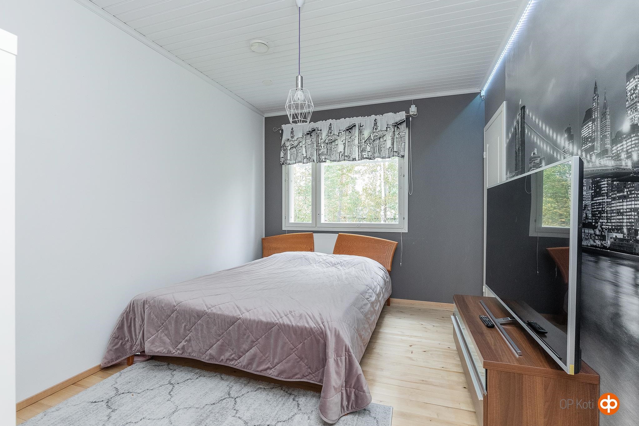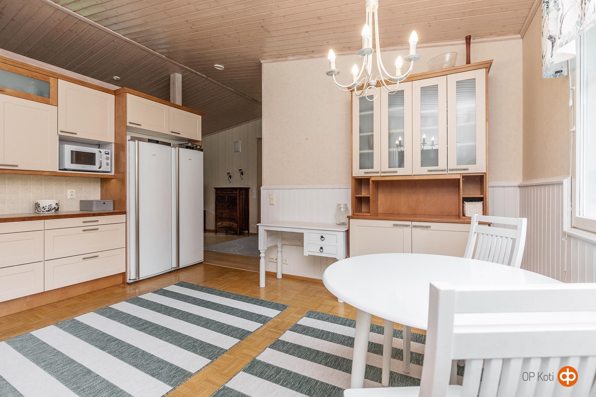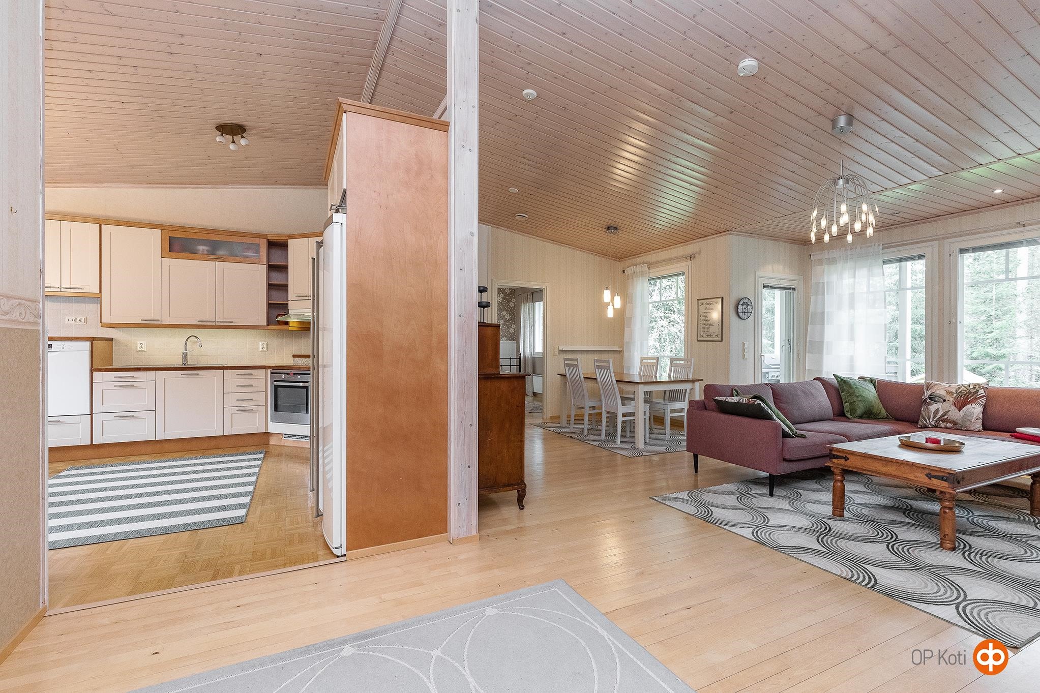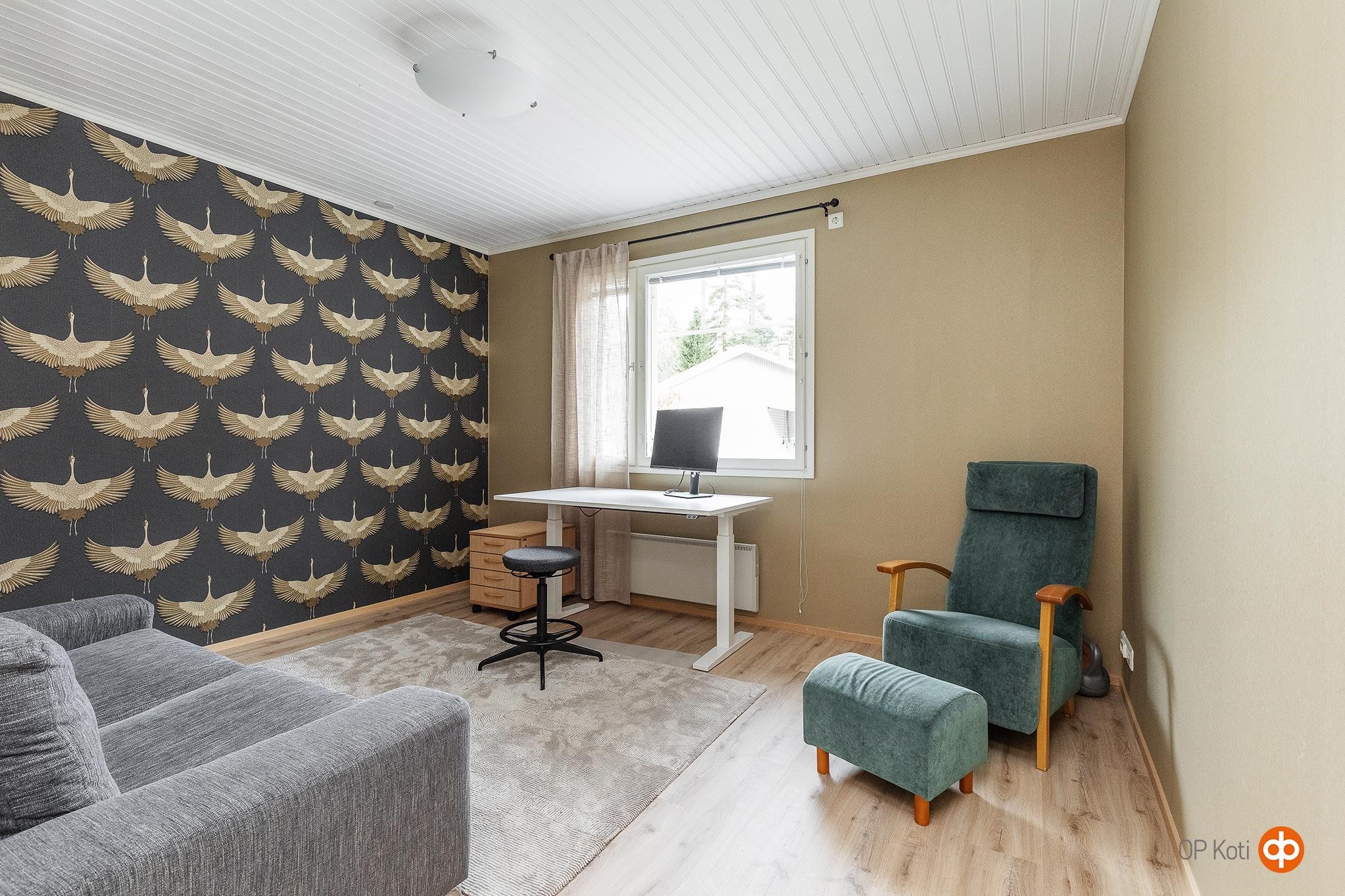 - Keittiö: parkettilattia, puolipaneeli. Olohuone: Lautalattia, tapettia. 3 makuuhuonetta: Lautalattia. 1 makuuhuone: Vinyylilattia. Sauna: Lattia laattaa ja seinät paneloitu. Kylpyhuone: Kokonaan laatoitettu. Wc: Molemmat kokonaan laatoitettu.