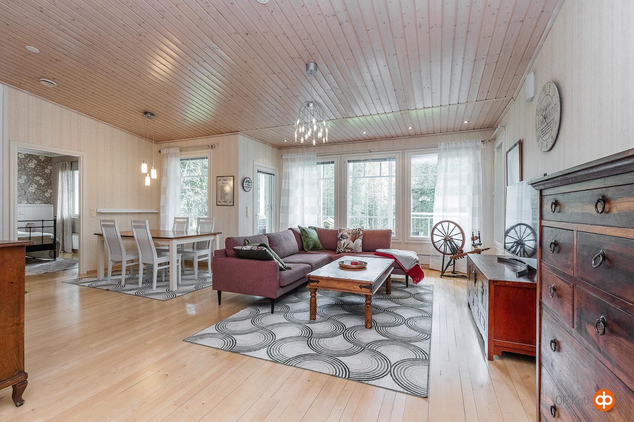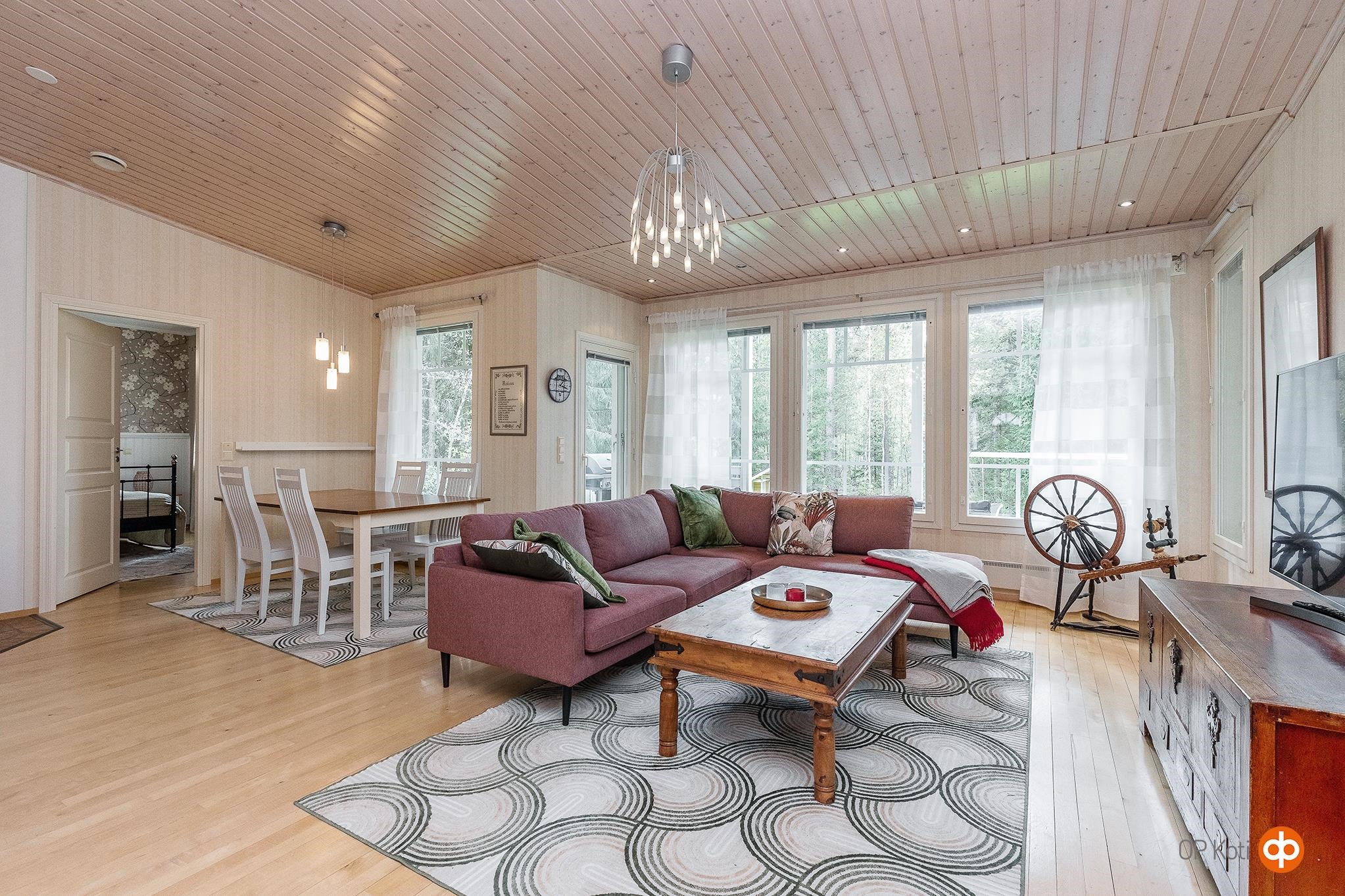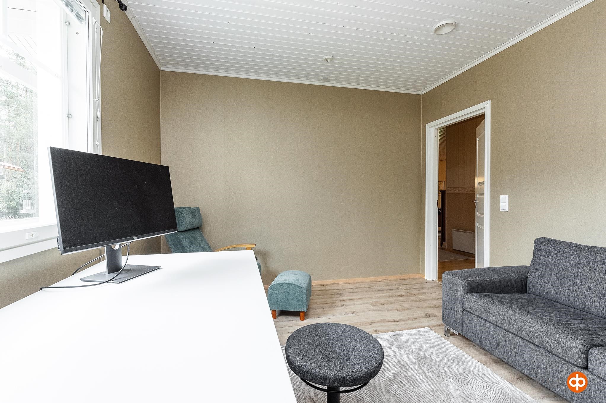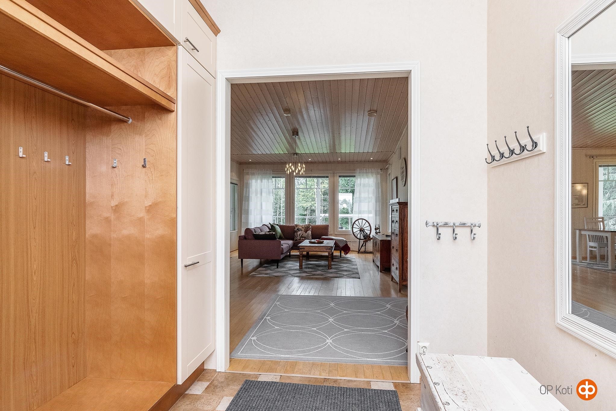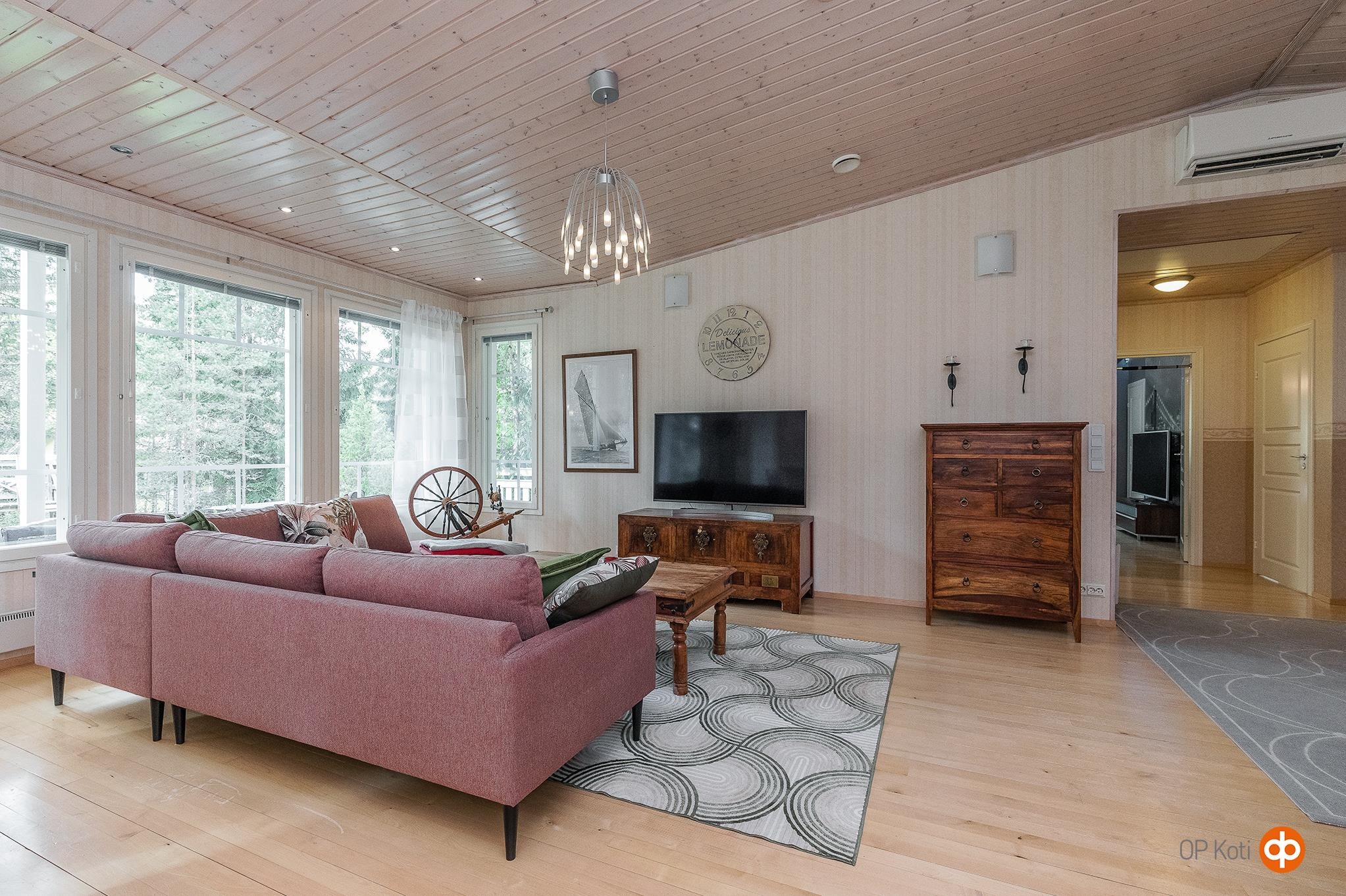 - Keittiö: parkettilattia, puolipaneeli. Olohuone: Lautalattia, tapettia. 3 makuuhuonetta: Lautalattia. 1 makuuhuone: Vinyylilattia. Sauna: Lattia laattaa ja seinät paneloitu. Kylpyhuone: Kokonaan laatoitettu. Wc: Molemmat kokonaan laatoitettu.