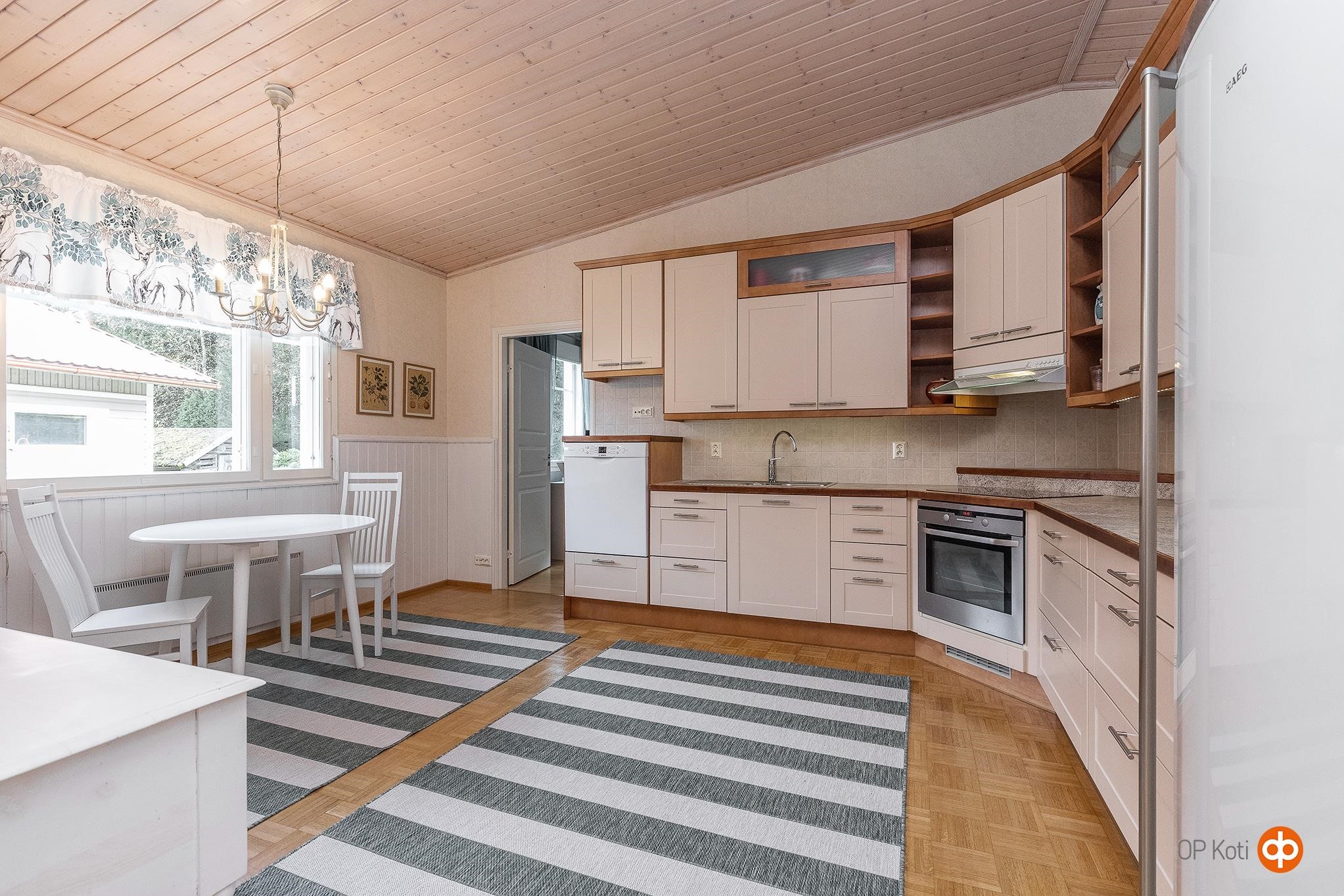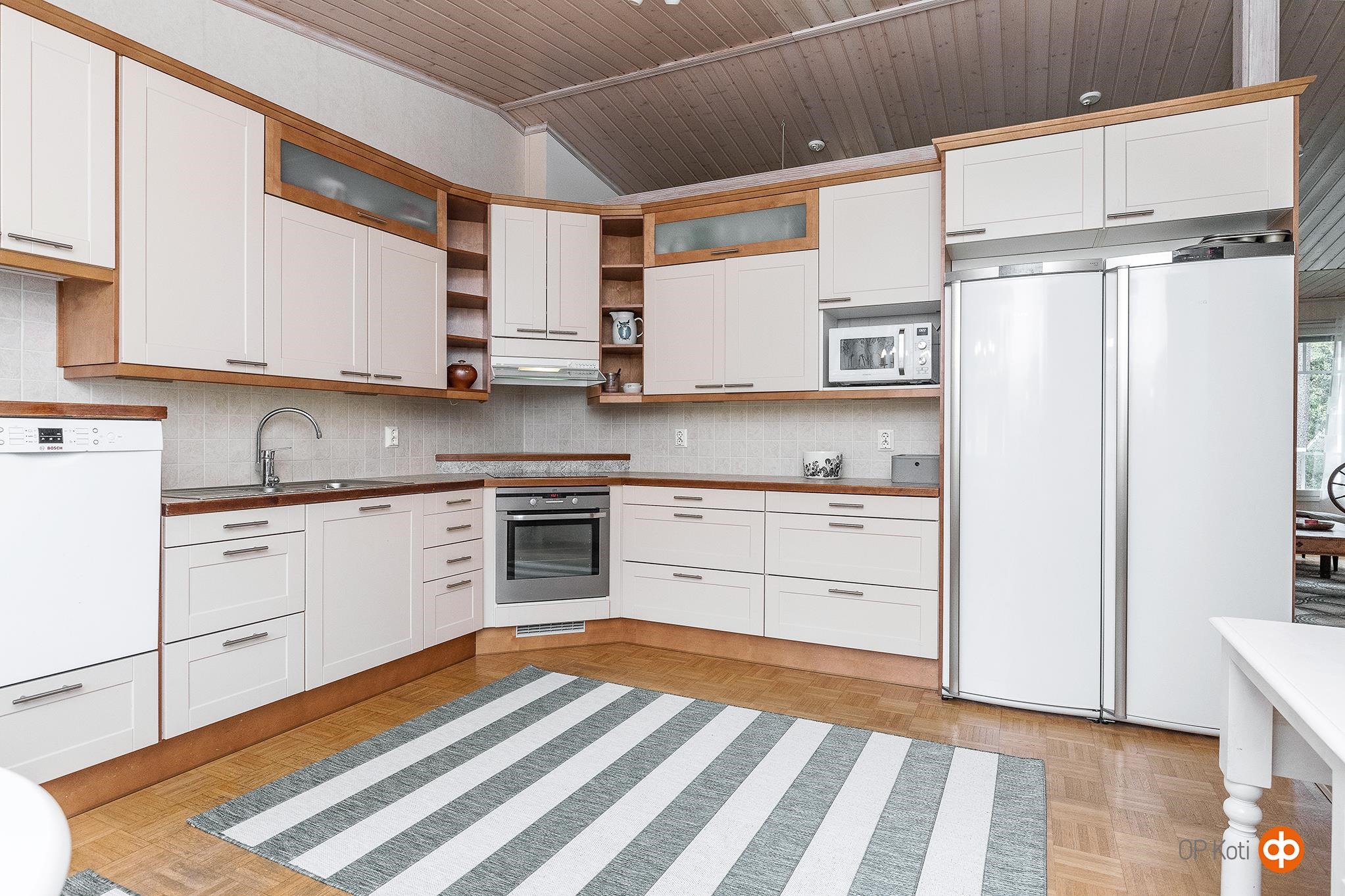 - Varusteina: korkea jääkaappi ja korkea pakastin, liesitaso (induktio), erillisuuni, liesituuletin sekä astianpesukone.