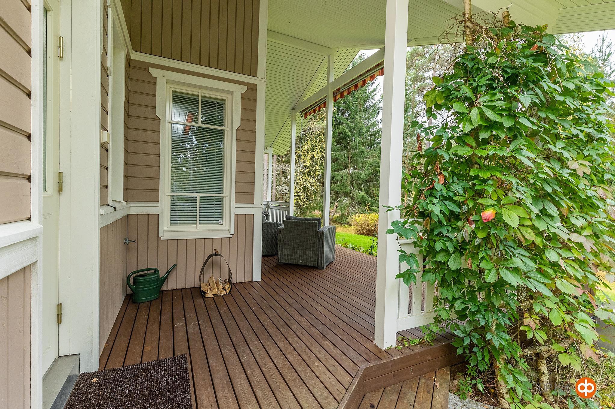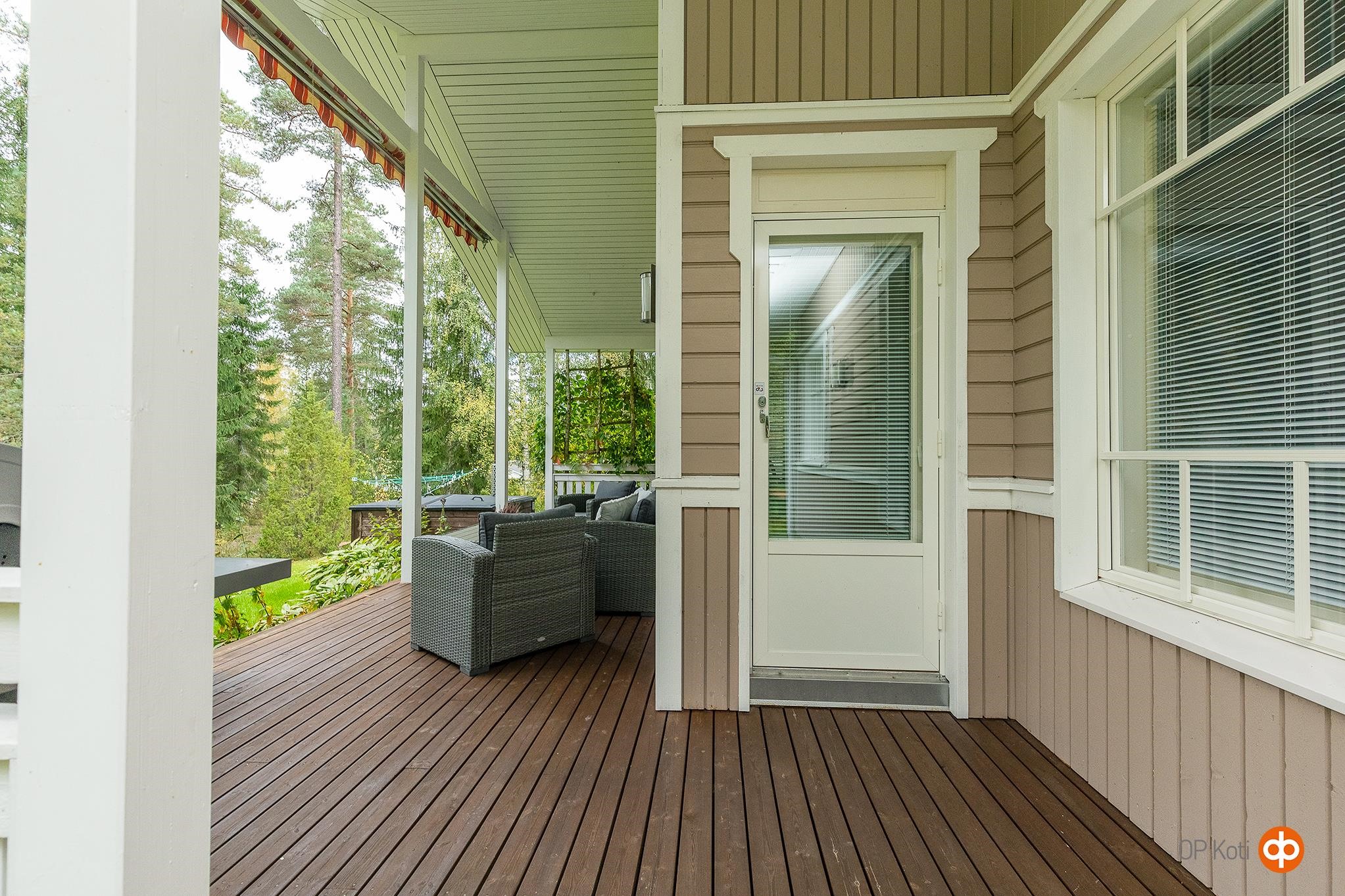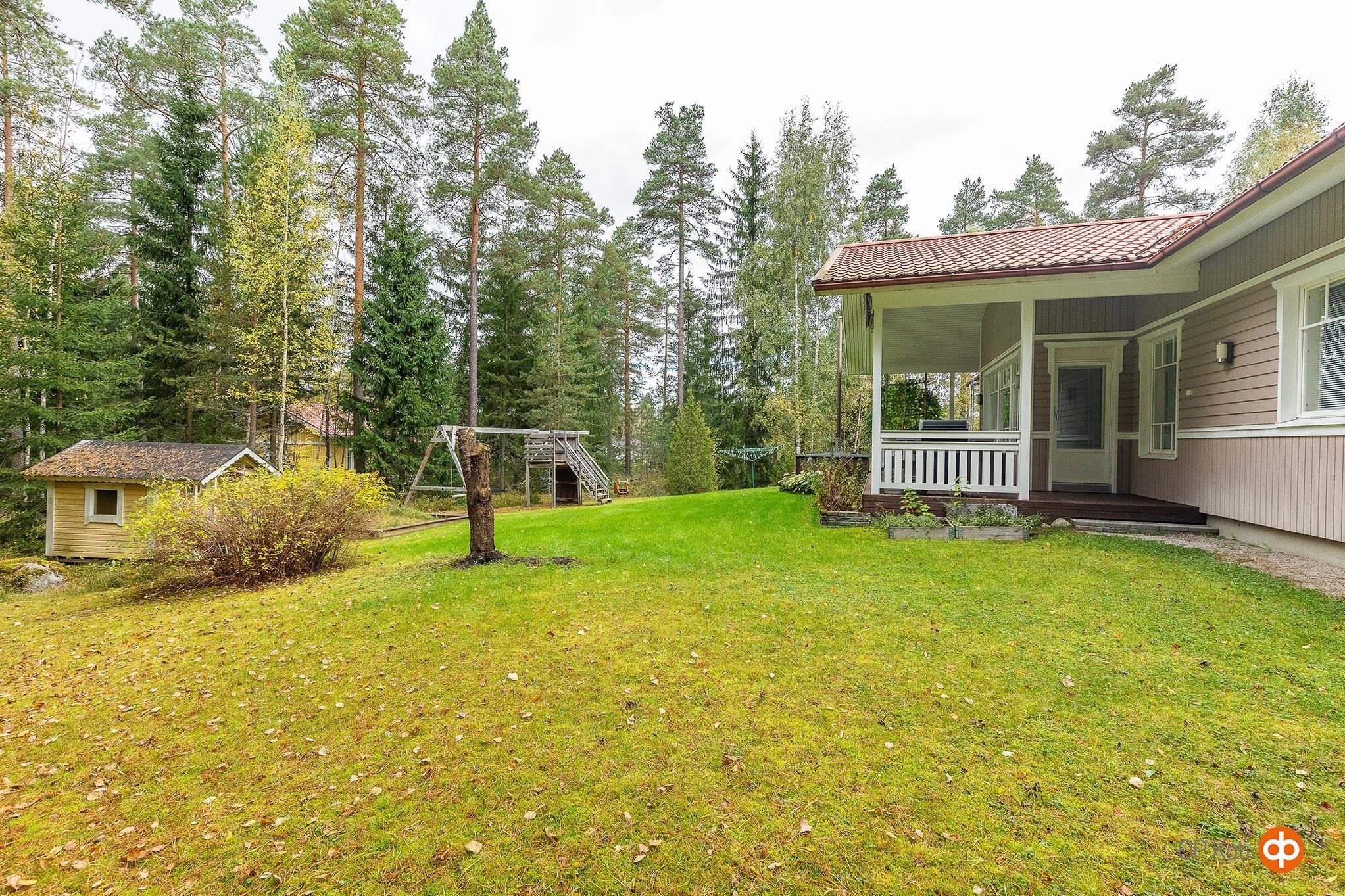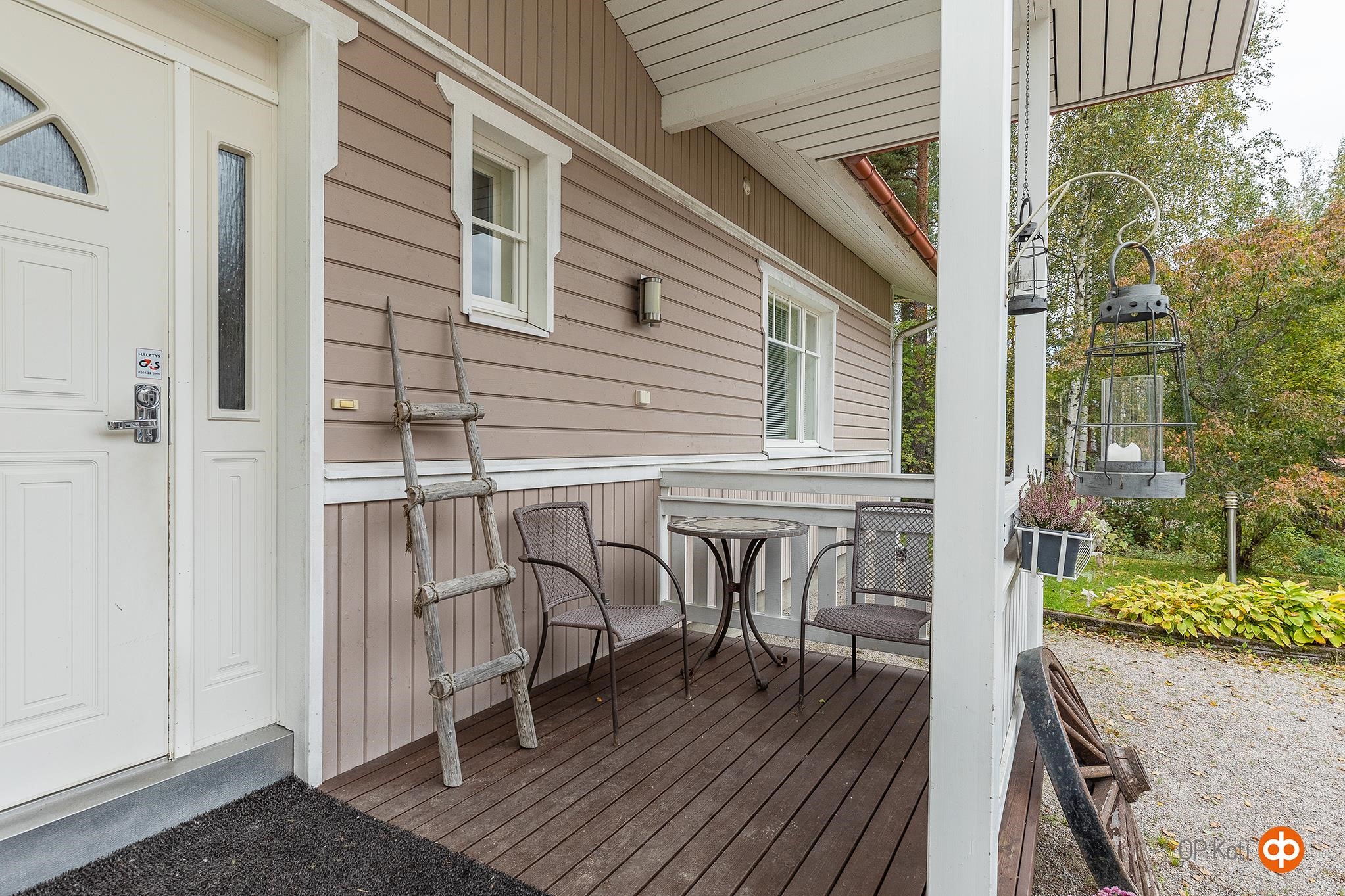 Suojaisa takapiha ja tilava katettu terassi kutsuvat rentoutumaan, grillaamaan ja nauttimaan ulkoilmasta. Saunan jälkeen voit pulahtaa paljuun ja jatkaa rentoutumista. Ulkoilun ystäville Hähkänän pururata alkaa aivan talon vierestä.