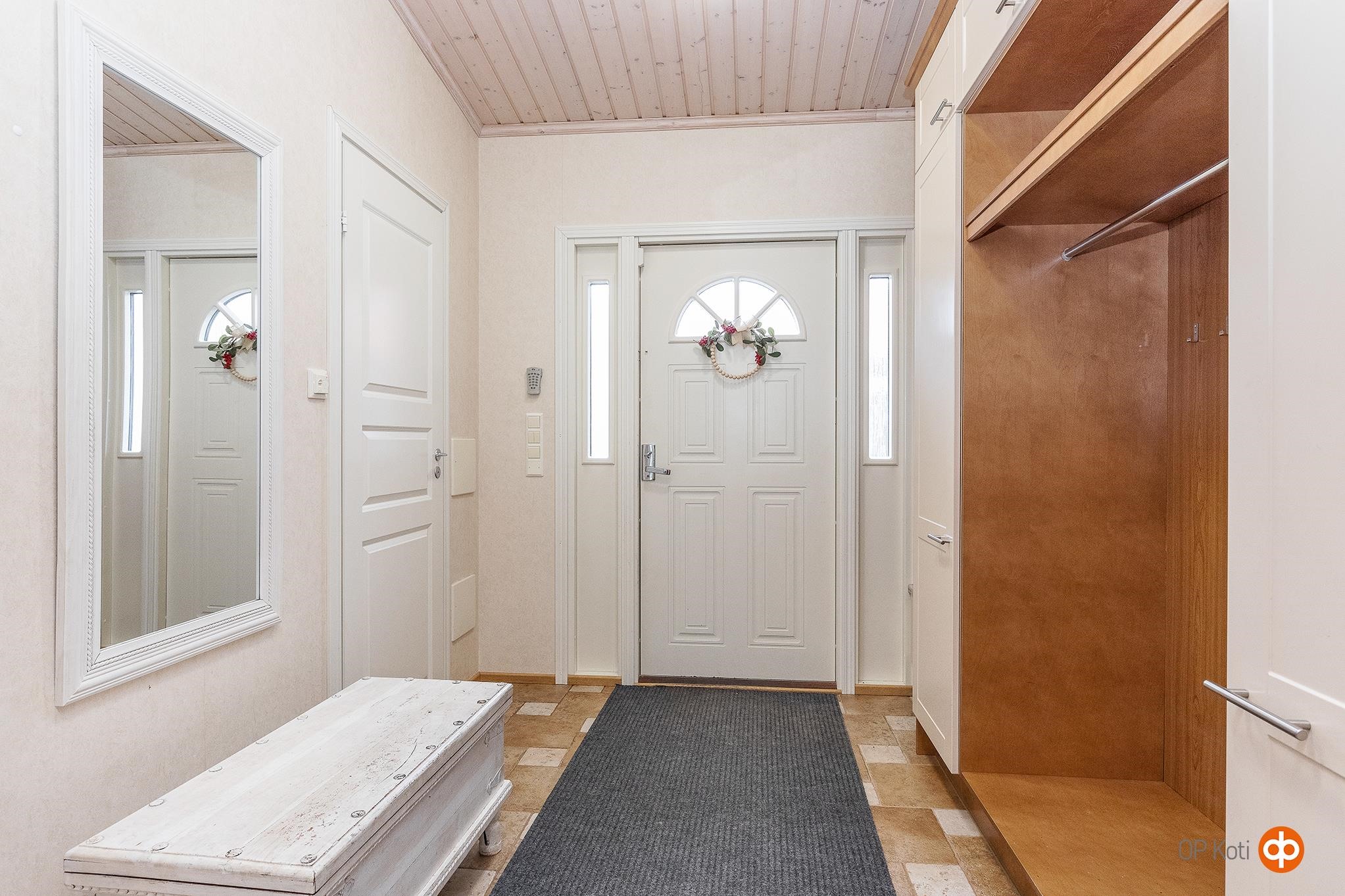 Vuonna 2002 valmistuneen talon huoneistoala on 161 m², ja lisäksi löytyy autotalli sekä varastotilaa. Varusteluun kuuluu mm. varaava takka, ilmalämpöpumppu ja keskuspölynimuri. Varaavalla takalla ja ilmalämpöpumpulla voi jokainen itse kätevästi vaikuttaa myös vuotuisiin lämmityskustannuksiin.