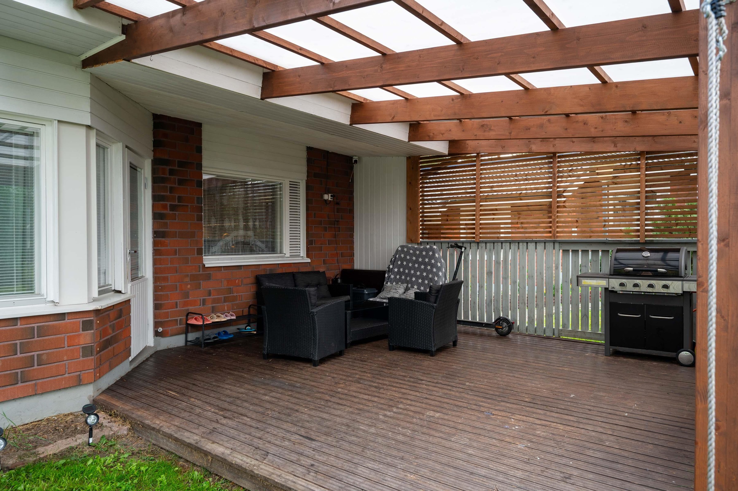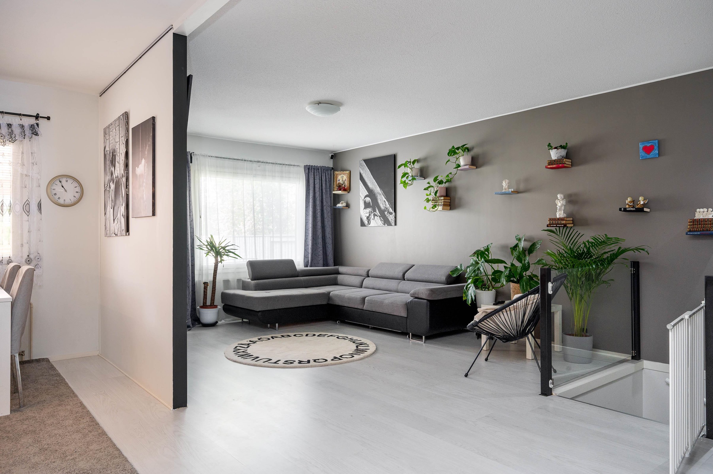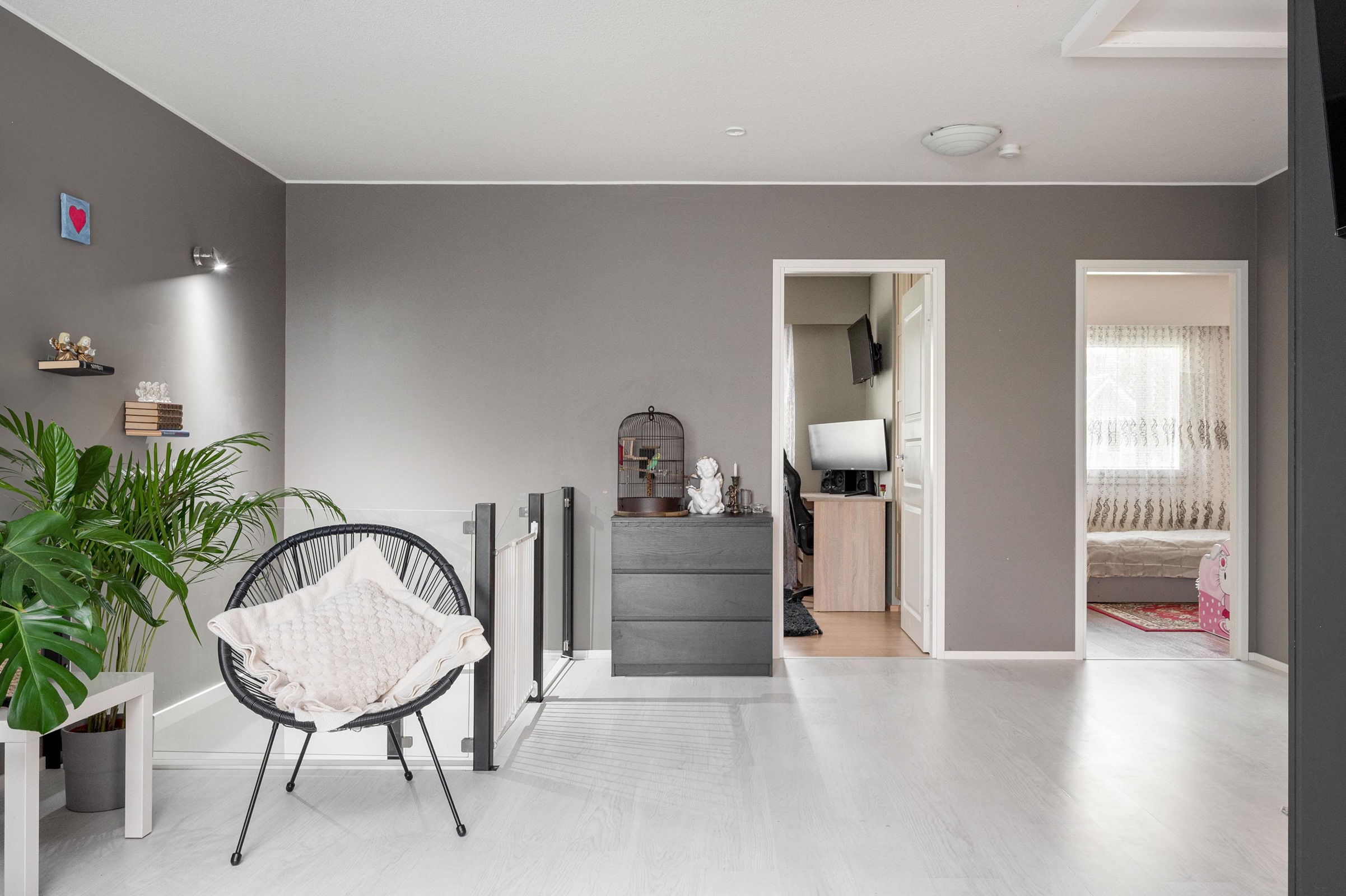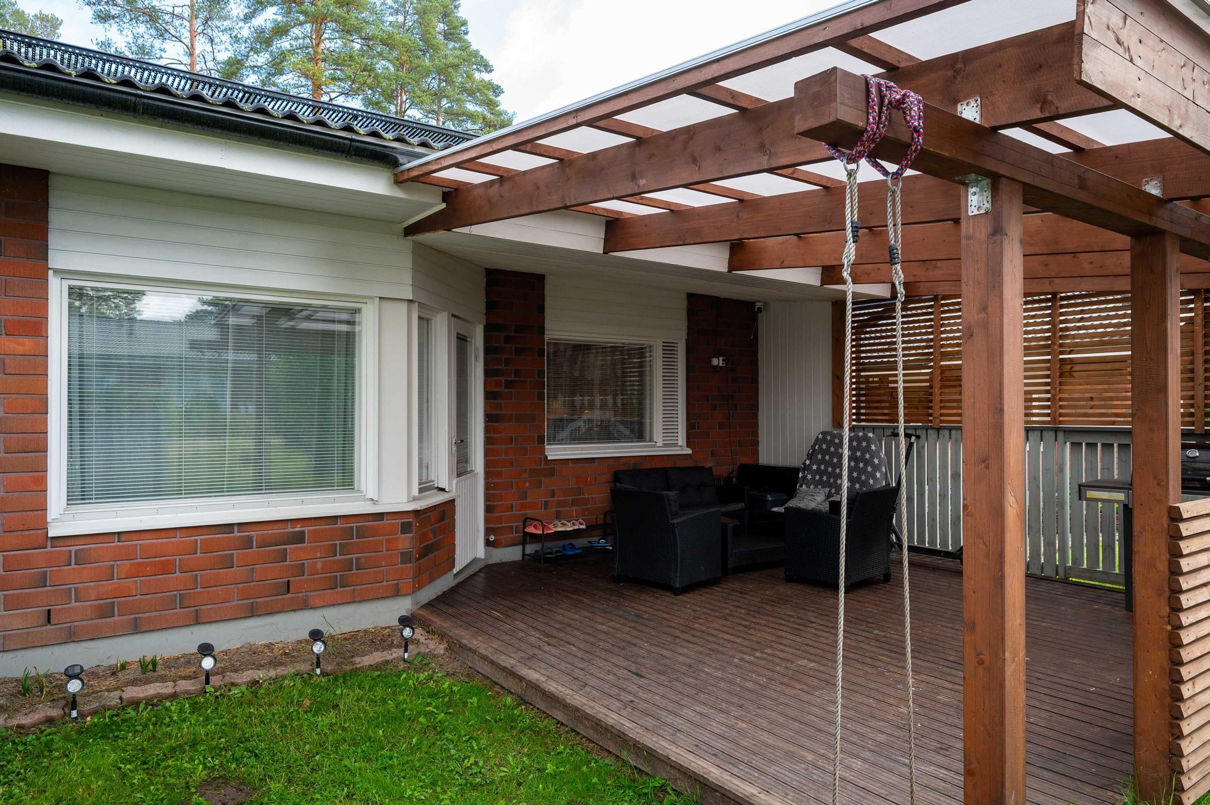 Asunnon tilaratkaisut ovat vertaansa vailla. Alakerran avara olohuone ja keittiö muodostavat yhtenäisen ja valoisan tilan, jonka laminaattilattiat ja maalatut seinät luovat modernin ilmeen. Keittiö on remontoitu tummilla sävyillä ja varusteltu kaikilla tarvittavilla mukavuuksilla. Kolme viihtyisää makuuhuonetta tarjoavat tilaa perheenjäsenille tai vieraille. Yläkerrassa sijaitseva erillinen wc sekä alakerran kylpyhuone ja sauna tuovat arkeen luksusta. Vesikiertoinen lattialämmitys alakerrassa takaa miellyttävän lämmön ympäri vuoden. Katettu terassi sopii mukavaan kesänviettoon.