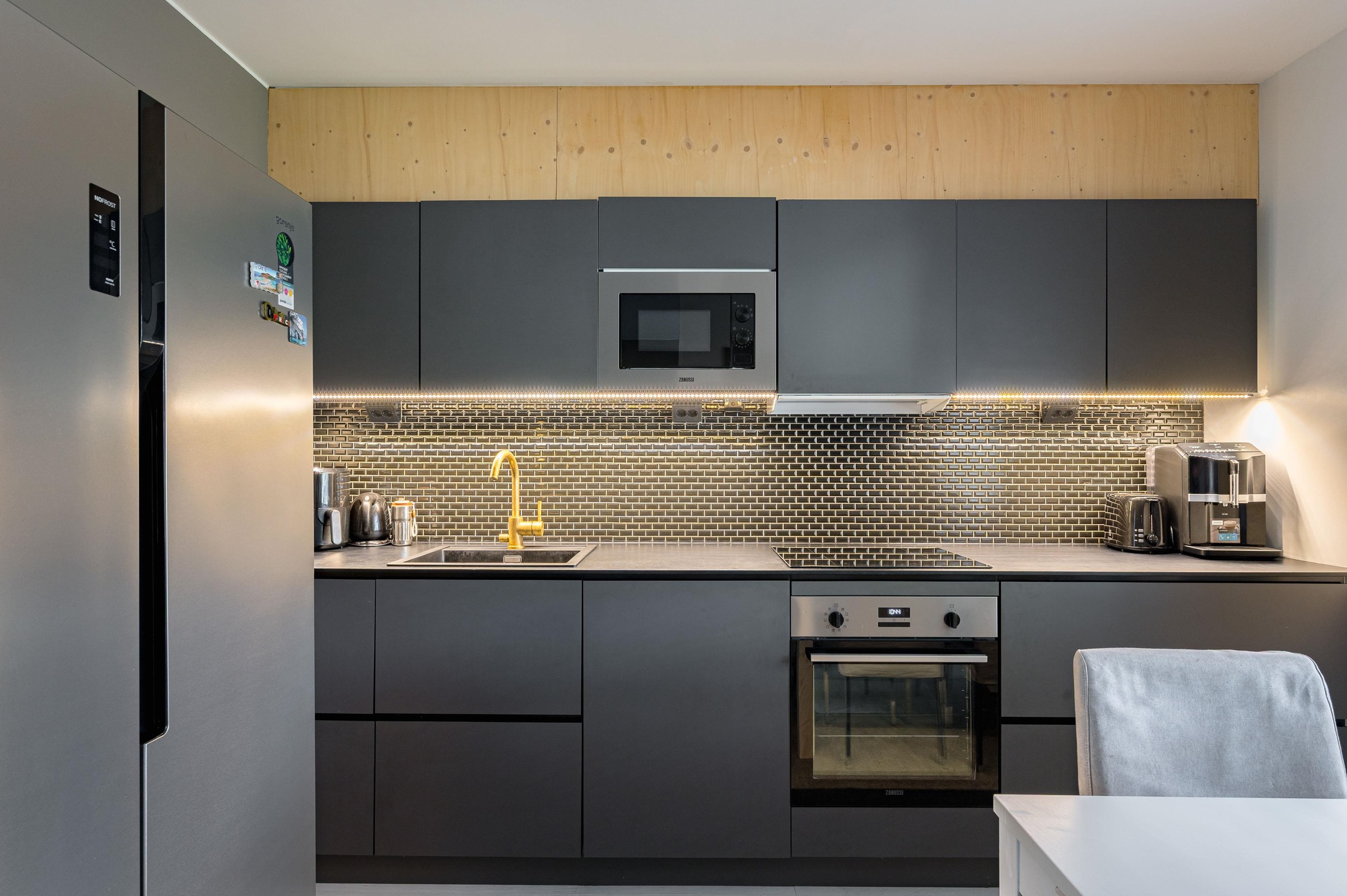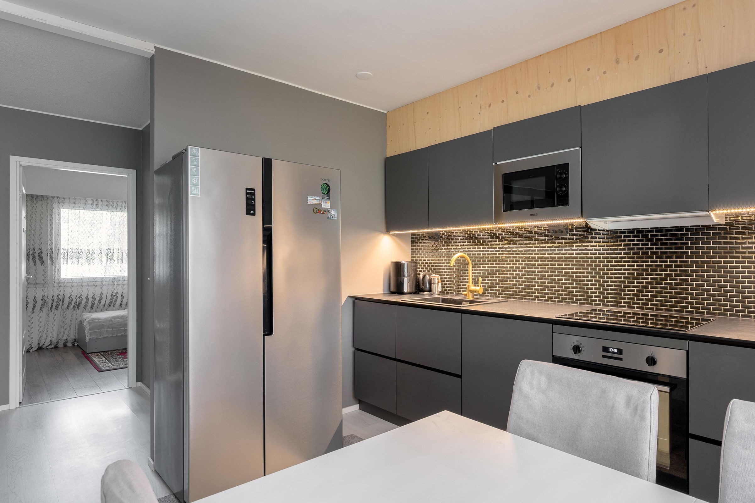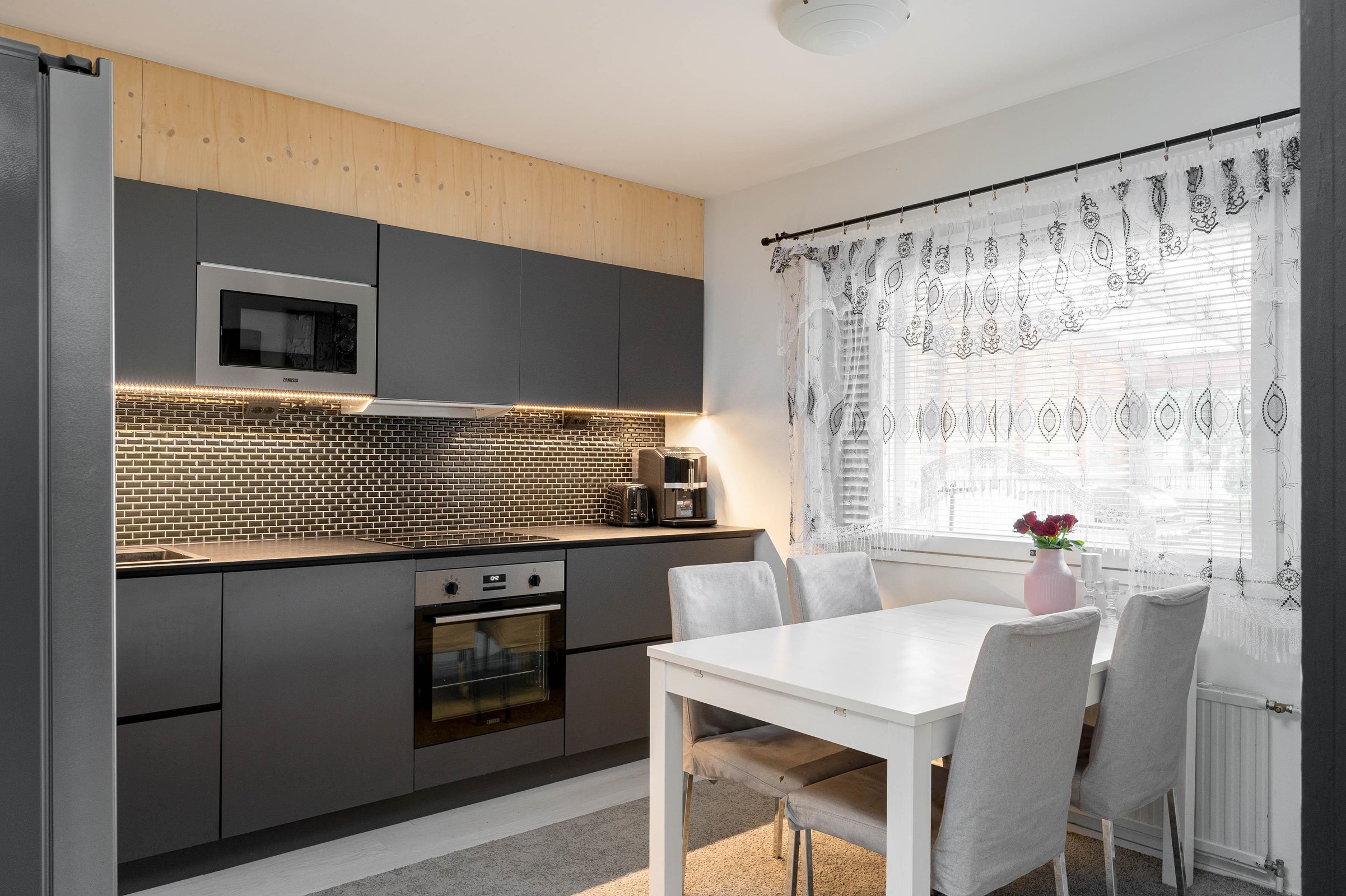 - Jääkaappi, pakastekaappi, erillisuuni, liesitaso Induktio, liesituuletin, astianpesukone Integroitu, kaapistot, kiinteät valaisimet