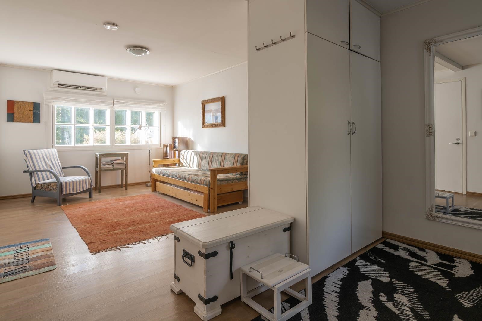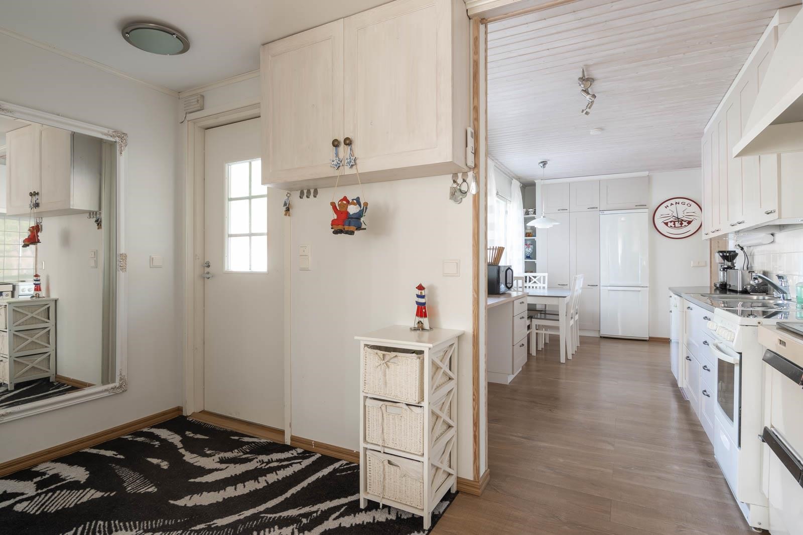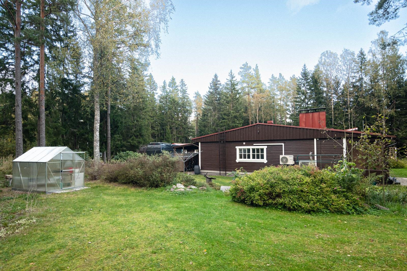 Hangon Täktomissa on myynnissä ainutlaatuinen omakotitalo, joka tarjoaa avaran ja tilavan kokonaisuuden monenlaiseen käyttöön. Talo sijaitsee suurella metsään rajoittuvalla tontilla, mikä tuo rauhaa ja yksityisyyttä. Kodissa on viisi huonetta, keittiö, kirjastoksi piirretty huone, kaksi makuuhuonetta sekä valoisa ateljee, joka on rakennettu laajennuksena vuonna 2008 ja voidaan muokata lisähuoneiksi. Yksitasoisessa talossa on myös sauna, kylpyhuone, erillinen wc ja runsaasti varastotilaa. Saunan terassilta pilkottaa meri. Pihalla on verstas, kesähuone ja kasvihuone, joka ilahduttaa puutarhan ystävää. Lämmityksestä huolehtivat ilmavesilämpöpumppu jossa reaaliaikainen lämpötilan ja pörssisähkön hintaseuranta, ilmalämpöpumput sekä takka. Talo, joka on rakennettu vuonna 1974, on kokenut monia päivityksiä, kuten keittiön ja pesutilojen remontit. Lyhyt matka Ryssholmenin rannalle tekee tästä kodista houkuttelevan vaihtoehdon niille, jotka kaipaavat meren läheisyyttä. Tämä viehättävä koti on muuttovalmis ja tarjoaa mahdollisuuden asua Suomen eteläisimmässä kaupungissa.
