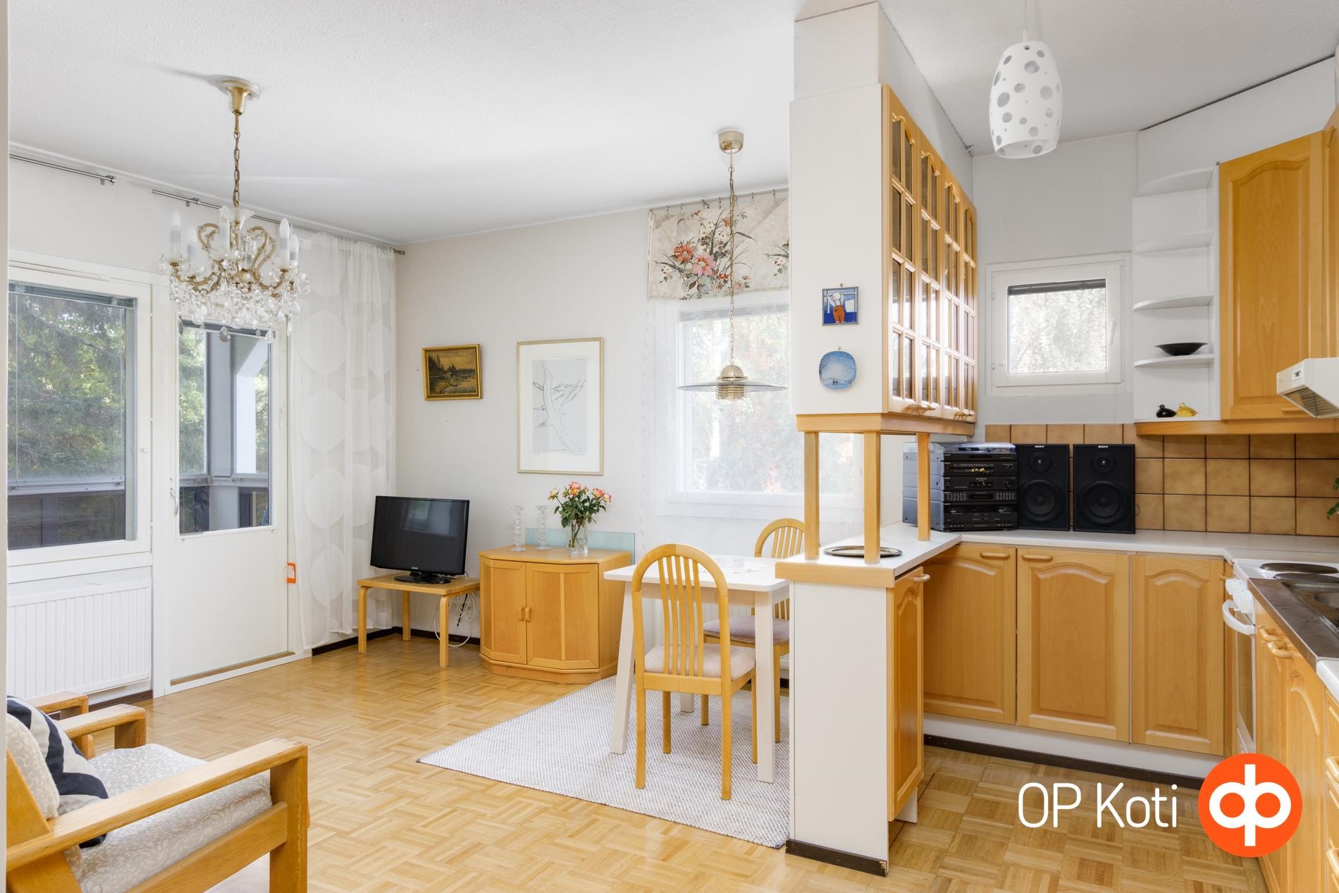 Kulmahuoneisto tarjoaa selkeän pohjaratkaisun, hyvänkokoisen kylpyhuoneen ja oman saunan: täydellinen arjen mukavuus. Yleisilme on siisti ja selkeä, ja pienellä pintaremontilla saat kodista juuri omannäköisen.