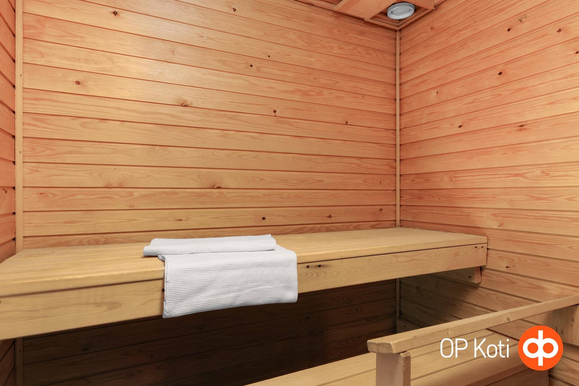 - Sauna, sähkökiuas, kylpyhuone, suihku, peilikaappi, pesukoneliitäntä, kiinteät valaisimet.