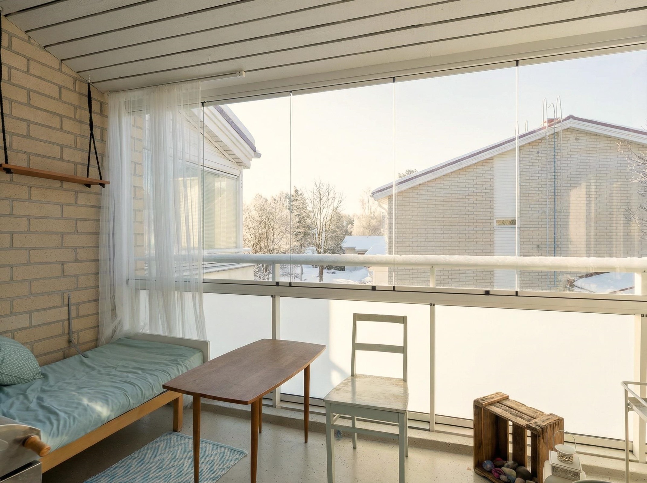 - Olohuone, keittiö ja parveke etelään, makuuhuoneet pohjoiseen.